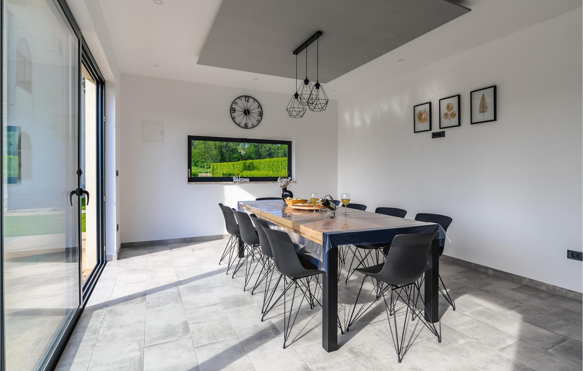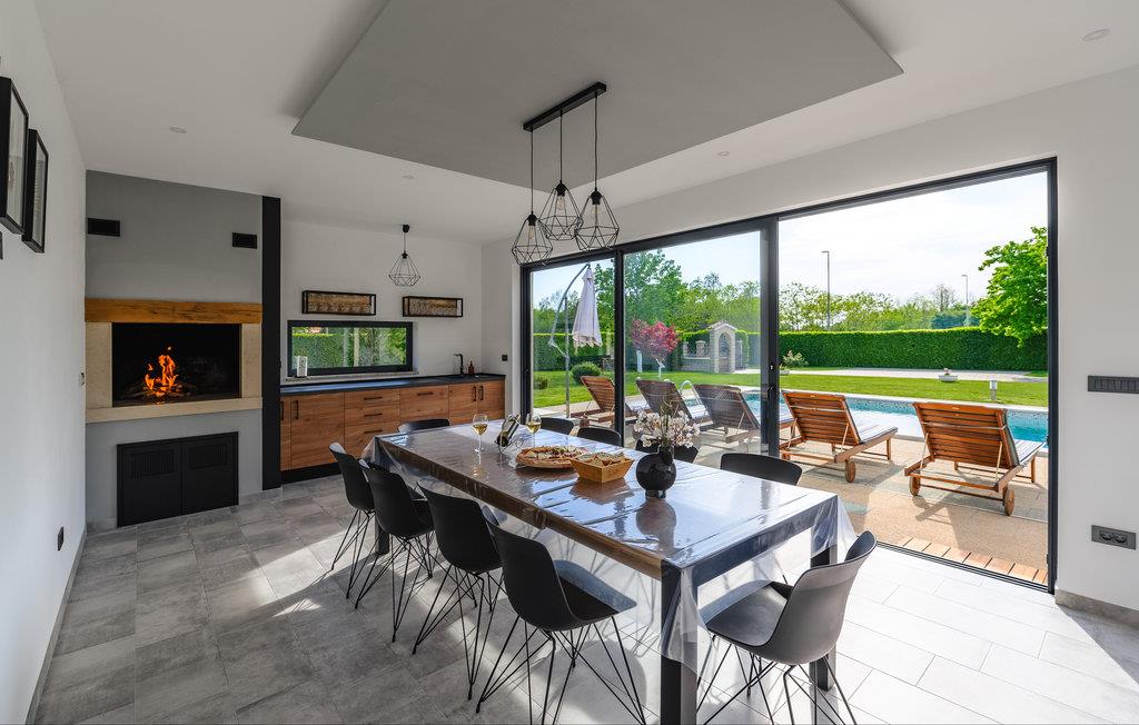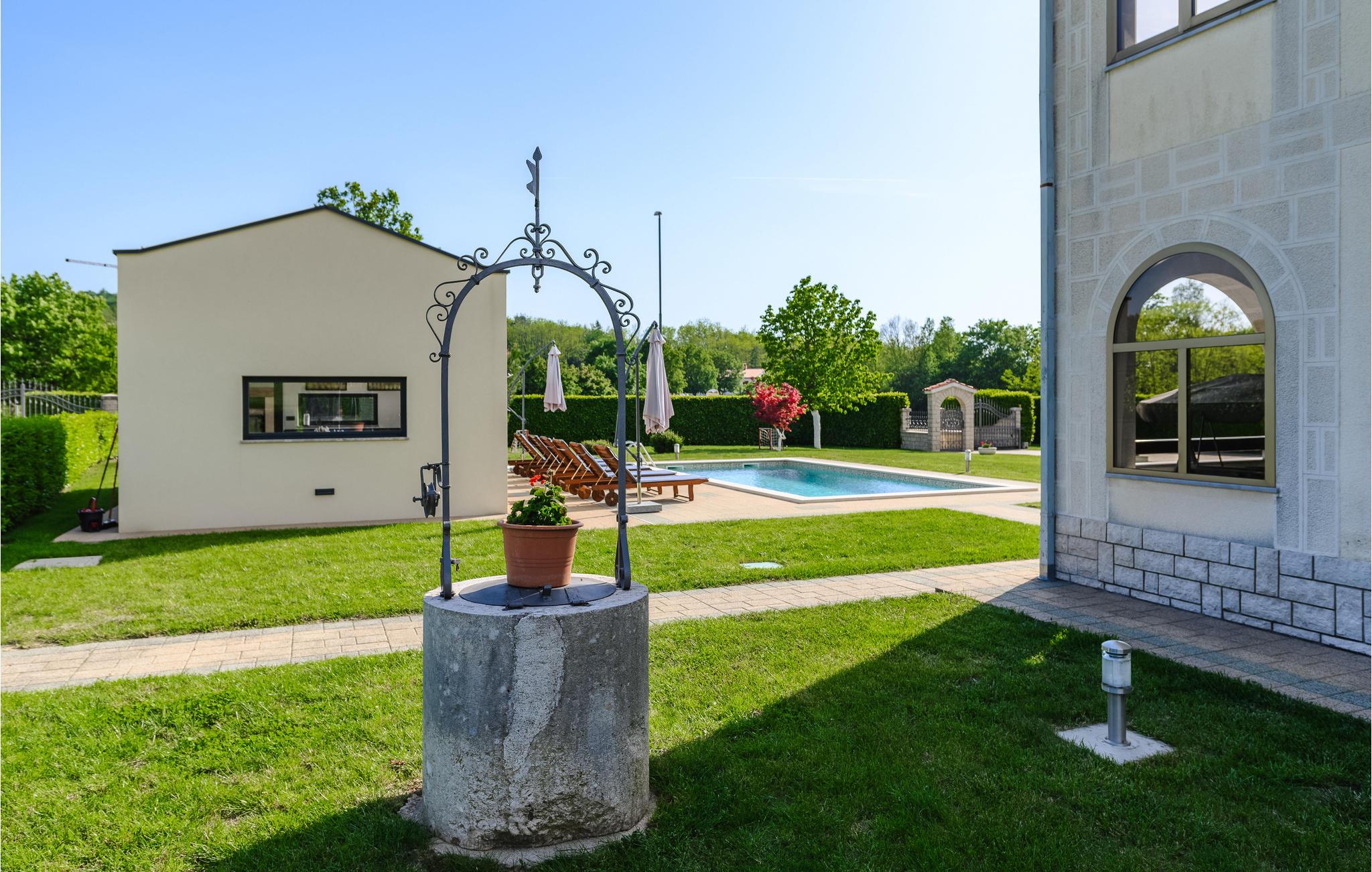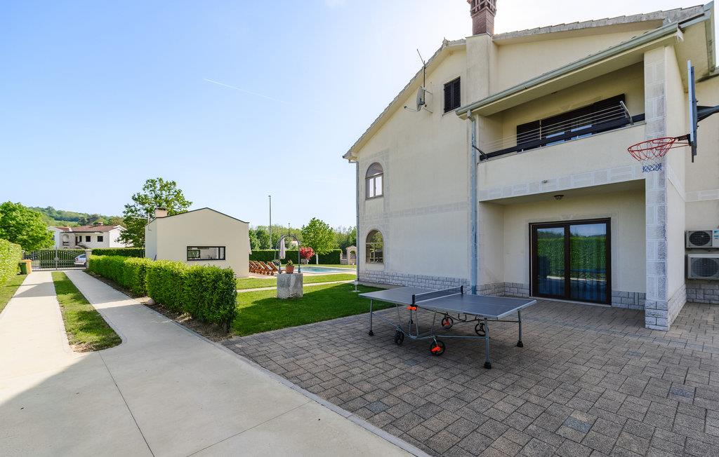 Ein großes eingezäuntes Grundstück mit einem schönen Rasen bietet die Möglichkeit, eine Vielzahl von Einrichtungen zu genießen. Der Pool bietet echte Erfrischung an heißen Sommertagen. Die überdachte Terrasse und die Möglichkeit, den Grill zu nutzen, sind ideal, um angenehme Momente miteinander zu verbringen. Es gibt auch Einrichtungen für die Kleinsten. Erkunden Sie die Umgebung. Die wunderschönen malerischen Landschaften Istriens erfreuen viele Besucher und Naturliebhaber.