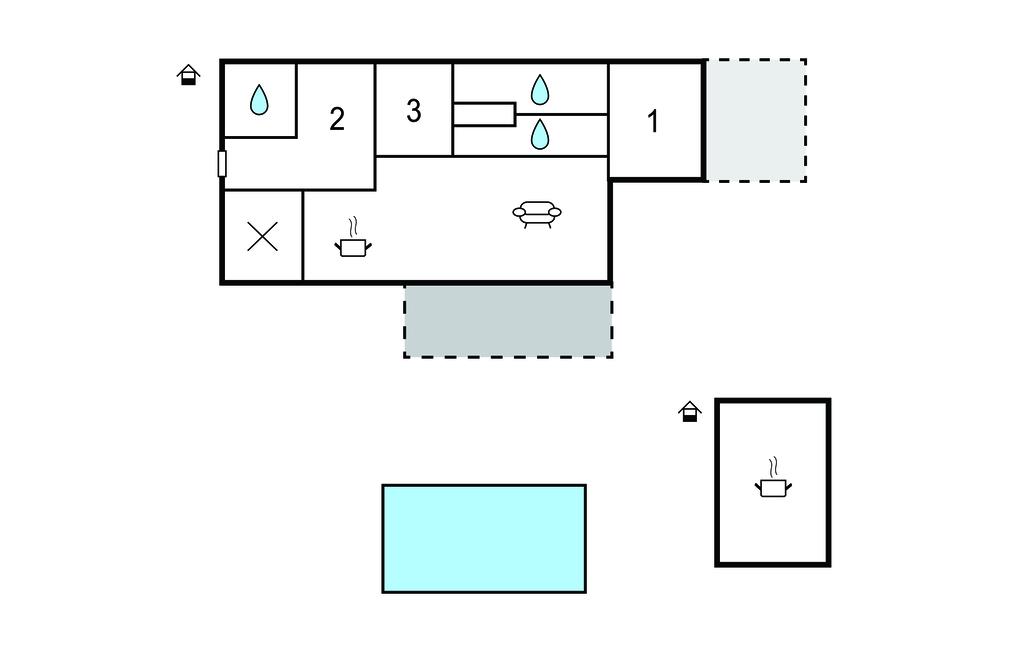 Dieses geräumige Ferienhaus bietet ideale Voraussetzungen für entspannte Tage mit der Familie oder Freunden. Alle Räume befinden sich im Erdgeschoss und umfassen ein helles Wohnzimmer mit voll ausgestatteter Küche und Essbereich sowie komfortable Schlafzimmer und Badezimmer.