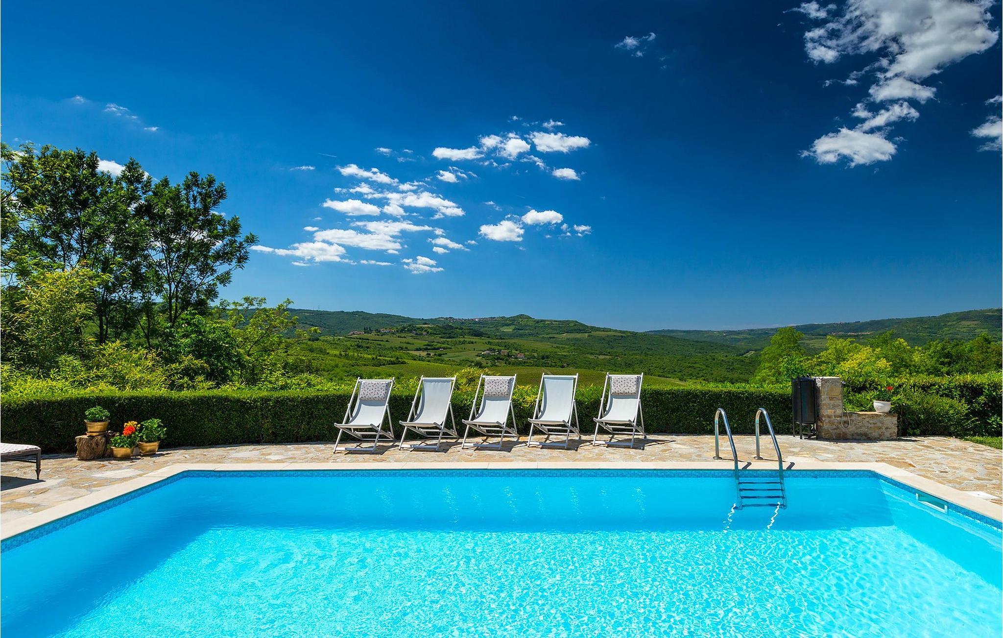 Koch- und Reinigungsservice sind verfügbar gegen Gebühr.Motovun ist ein mittelalterlicher Ort mit einem Golfplatz, natürlichen Quellen und Spa, Reitmöglichkeiten und einem internationalen Filmfestival. Großartige Restaurants, Tavernen, Weinkeller und Cafés befinden sich in der Umgebung des Ferienhauses. Die Adriaküste mit ihren Stränden und Urlauberorten Porec, Rovinj und Novigrad ist 20 min entfernt. 45 min entfernt sind Pula und der Nationalpark der Brijuni-Inseln. Sie können Porec sogar über die Mountainbikestrecke erreichen, die direkt unterhalb des Anwesens verläuft. Von Porec aus können Sie mit der Fähre nach Venedig fahren. Nur 30 Autominuten entfernt befindet sich Triest mit fantastischen Einkaufsmöglichkeiten auf der anderen Seite der Grenze. Das Haus der perfekte Ort in Motovun für große Gruppen. Die geschmackvolle Gestaltung, der Garten und der atemberaubende Ausblick über das Mirna-Tal machen das Anwesen so einzigartig. Zweifellos einer der besten Standorte im Bereich Motovun. Alle Dienstleistungen sind zu Fuß erreichbar.