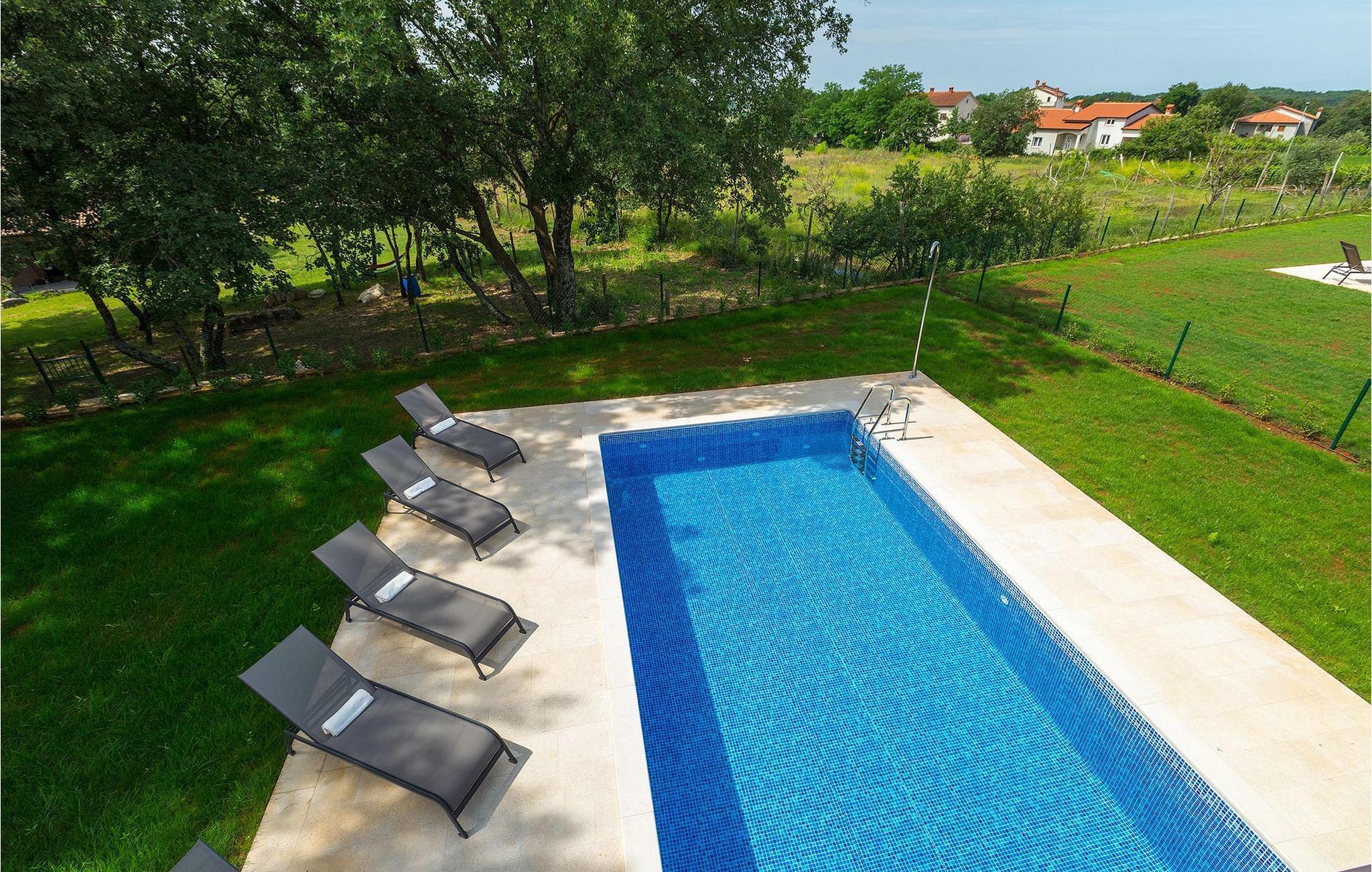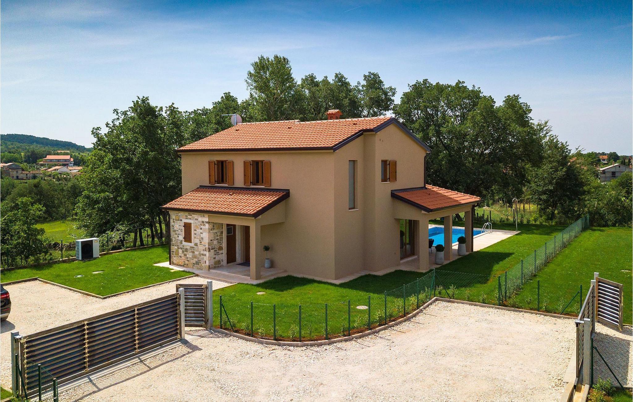 Das Erdgeschoss der Villa besteht aus einem luftigen Wohnbereich mit direktem Zugang zum Garten und Poolbereich, sowie einer völlig ausgestatteten Küche mit Essbereich. Eine Toilette und ein Schlafzimmer mit einem Einzelbett befinden sich ebenfalls im Erdgeschoss. Die restlichen drei Schlafzimmer mit jeweils einem Doppelbett befinden sich auf der oberen Etage. Eines dieser Schlafzimmer verfügt über ein eigenes Badezimmer und Zugang zu einem der zwei Balkone, wo Sie am Morgens ihren Kaffee unter der warmen Sonne Istriens genießen können.Nur eine kurze Fahrt von der Villa entfernt, oberhalb des Flusstals der Mirna, befindet sich die wahrscheinlich bekannteste und attraktivste istrische mittelalterliche Stadt Movotun, dessen Panorama ein bekanntes Symbol des istrischen Inlands ist. Traditionelle lokale Festlichkeiten sowie das renomierte internationale Filmfestival werden hier gehostet, und beleben diesen kleinen, ruhigen Ort. Die Zahl der Städte und Dörfer, die man unbedingt besuchen sollte, ist zu lang aufzulisten; hier sind wir im Herzen von Zentralistrien, einer der schönsten Orte der Welt. Es ist auch berühmt für lokale Teran- und Malvazija-Trauben, Olivenöl, hausgemachten Käse, Prosciutto, gegrilltes Fleisch und natürlich Trüffel, die man in Restaurants in den vielen Dörfern und Städten der Region kosten kann. Es gibt zahlreiche Wander- und Radwege, einer der schönsten von ihnen ist die historische Parenzana - alte Eisenbahnstrecke, wo man sogar die einzigartige Fahrt mit dem Touristenzug entlang der historischen Strecke erleben kann. Reiten, ein paar Runden Golf oder nur einfach Genießen in den Thermalwässern des naheliegenden Kurortes erweitern diese lange Liste der Aktivitäten. Die wichtigsten Küstenorte von Umag, Novigrad und Porec sind wegen der hervorragenden Straßenverbindung leicht erreichbar und bieten sehr umfangreiche Freizeiteinrichtungen, gutes Nachtleben, Bars und Restaurants.