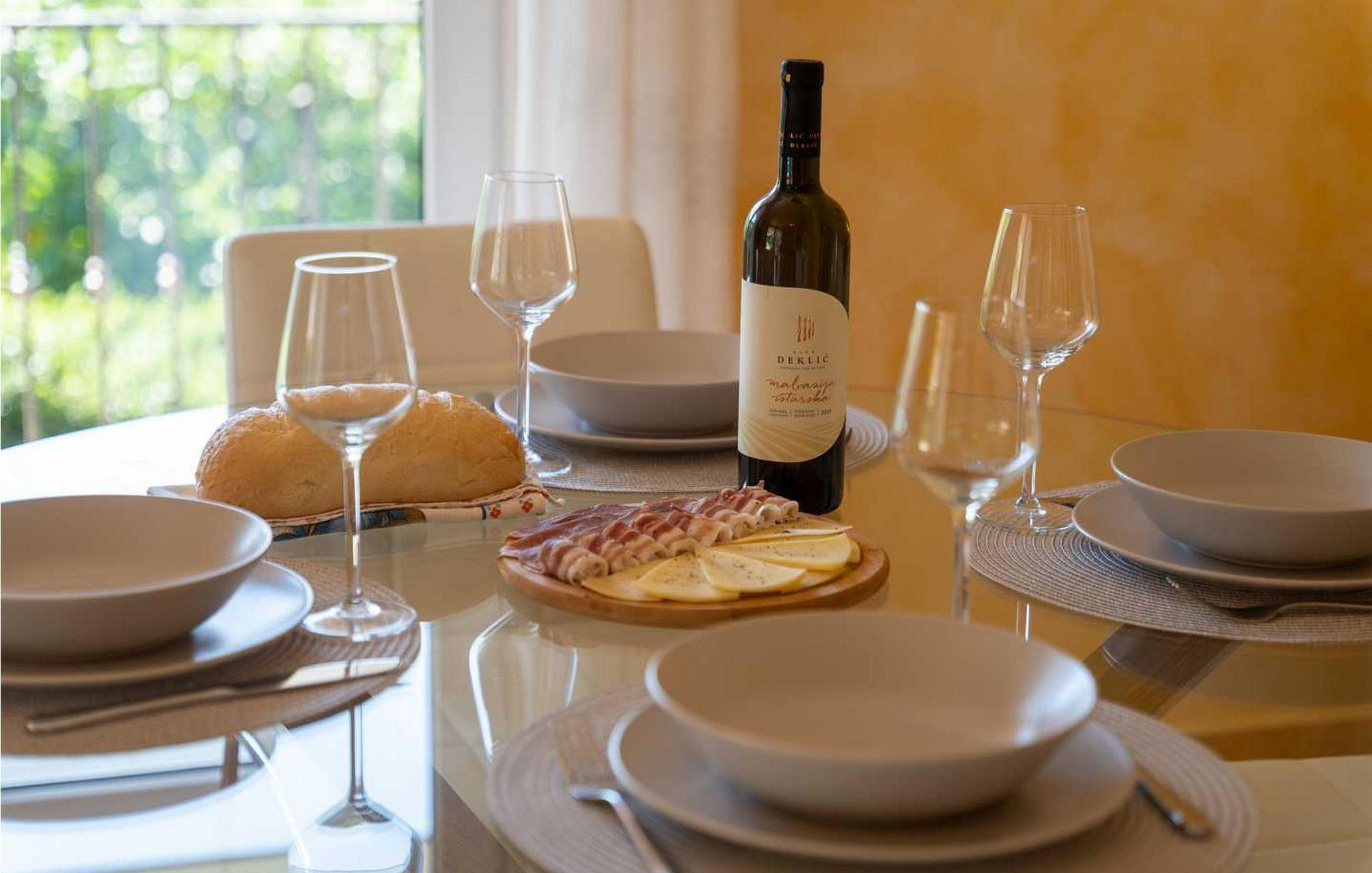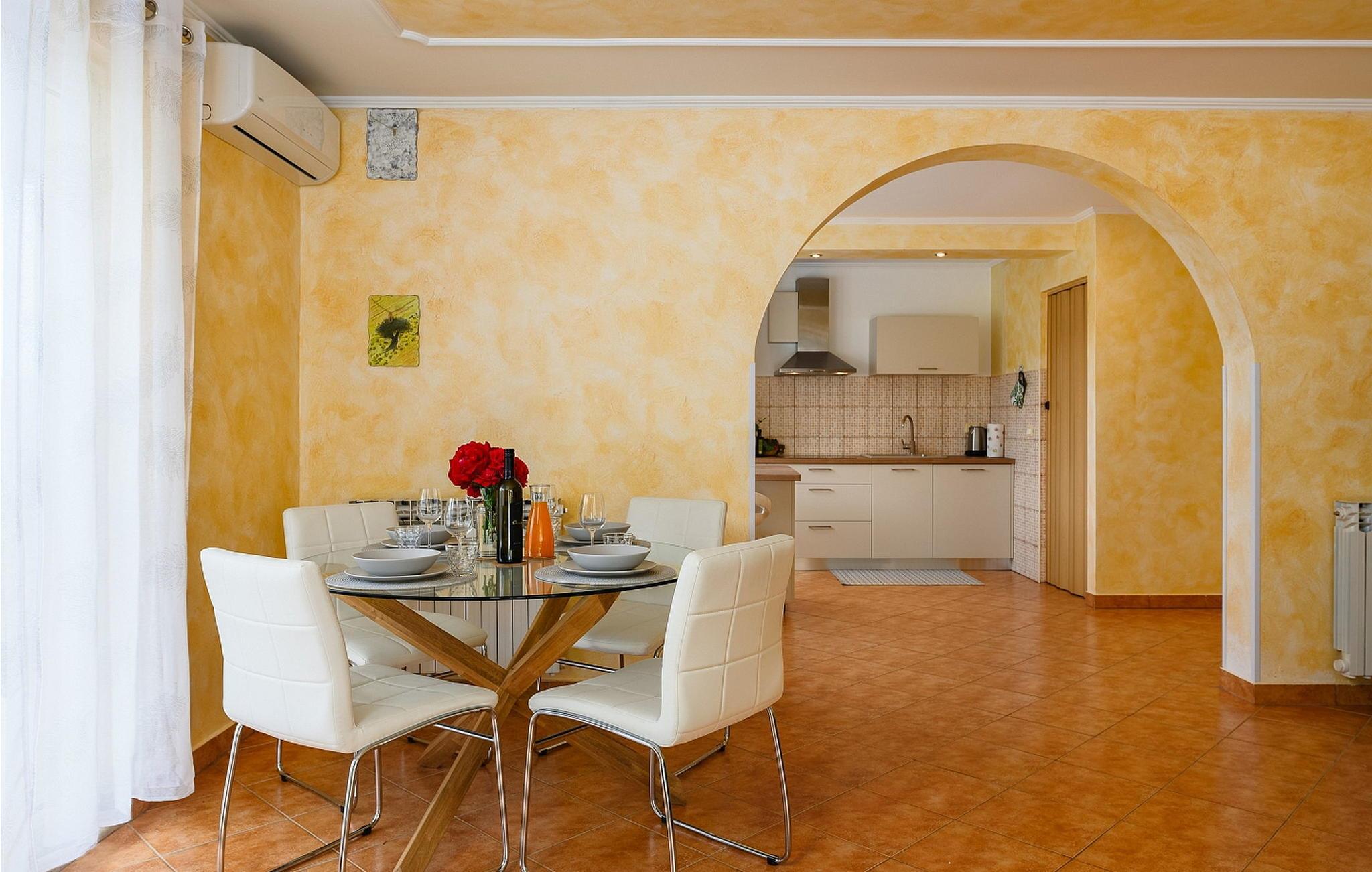 Casa Veranda ist ein charmantes, freistehendes Haus am Rande des ruhigen Dorfes Lazi, einer der grünsten Gegenden in Zentralistrien. Umgeben von üppigen Obstgärten und Weinbergen bietet diese Villa einen atemberaubenden Panoramablick auf die malerische mittelalterliche Stadt Motovun. Das Grundstück ist komplett eingezäunt und verfügt über einen schönen Außenbereich mit einem Swimmingpool, einem gepflegten Rasen und einer überdachten Terrasse mit einem Essbereich im Freien und einem Grill. Außerdem stehen zwei Parkplätze zur Verfügung. Im Inneren umfasst Casa Veranda ein Wohnzimmer mit einer gut ausgestatteten Küche und einem Essbereich, ein Schlafsofa sowie ein Duschbad und eine separate Toilette. Motovun im Herzen Istriens ist bekannt für sein Filmfestival, seine Thermalquelle und seine gut erhaltenen historischen Gebäude. Die zentrale Lage der Villa macht sie ideal, um die Sehenswürdigkeiten Istriens zu erkunden. Besuchen Sie die Küstenstädte Pula, Rovinj und Porec oder genießen Sie einen Ausflug in den Nationalpark Brijuni, der für seine wunderschönen Strände, Golfplätze und seinen Zoo bekannt ist. Erleben Sie die istrische Küche in lokalen Tavernen oder begeben Sie sich auf ein Trüffelsuche-Abenteuer im Wald von Motovun.