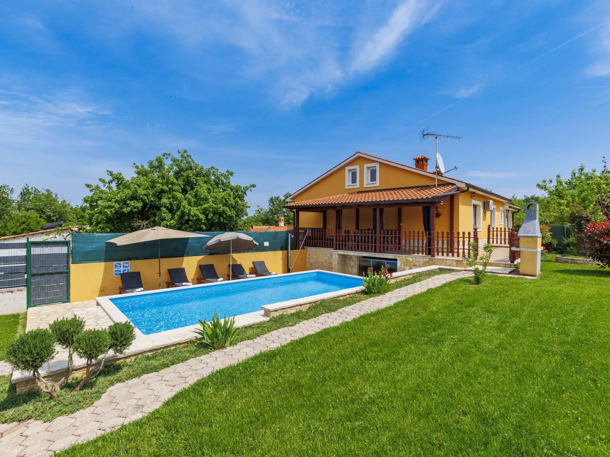 2-family house "Soriso", 2 storeys. In the hamlet Rapki 7 km from the centre of Motovun, 2 km from the centre of Karojba, 19 km from the centre of Porec, 19 km from the sea. Private: property 450 m2 (fenced) with lawn, swimming pool angular (8 x 4 m, 32 m2, depth 150 cm, seasonal availability: 15.May. - 15.Oct.) with internal staircase. Outdoor shower, garden furniture, barbecue, children's playground (swing). In the house: internet access, trampoline, washing machine. Parking (for 2 cars) at the house on the premises. Shop 2 km, restaurant 2 km, bus stop 18 km, railway station 18 km, pebble beach 19 km. The owner does not accept any youth groups. Please note: the owner lives in the same residence. Video surveillance of the driveway and parking.
