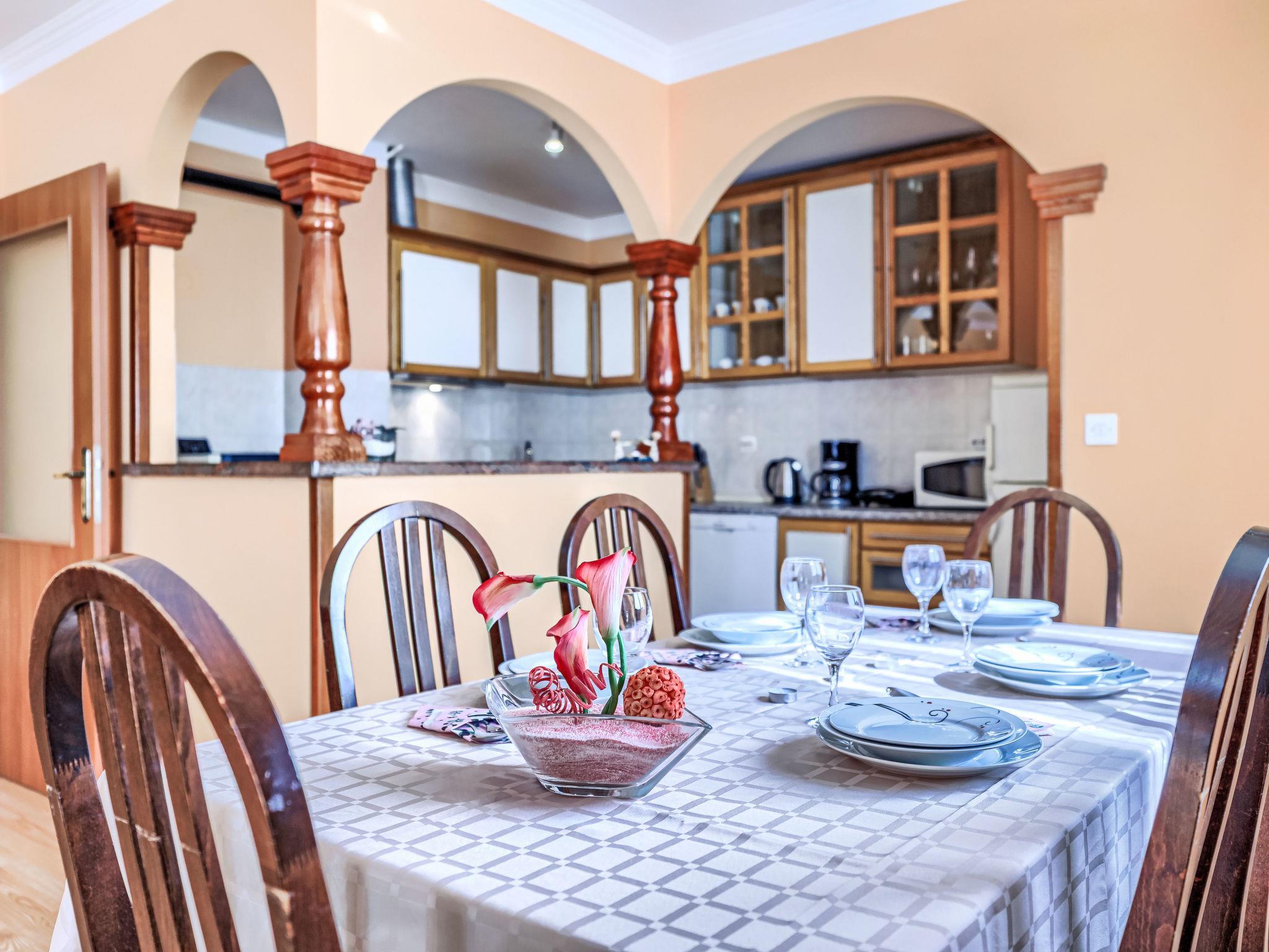 4-room apartment 105 m2, on the upper ground floor. Living/dining room with flat screen and air conditioning. Exit to the terrace, to the swimming pool. 1 room with 1 french bed (180 cm, length 200 cm). Exit to the balcony. 1 room with 1 french bed (160 cm, length 200 cm). 1 room with 1 bed (120 cm, length 200 cm) with shower/WC. Open kitchen (1 hot plate, oven, dishwasher, 3 gas rings, toaster, kettle, microwave, freezer). Shower/bidet/WC. Heating. Balcony 5 m2, terrace 20 m2, roofed. Terrace furniture, balcony furniture, deck chairs. Facilities: safe, baby cot for up to 2 year olds, hair dryer. Internet (WiFi, free). Parking at the house. Maximum 1 pet/ dog allowed.