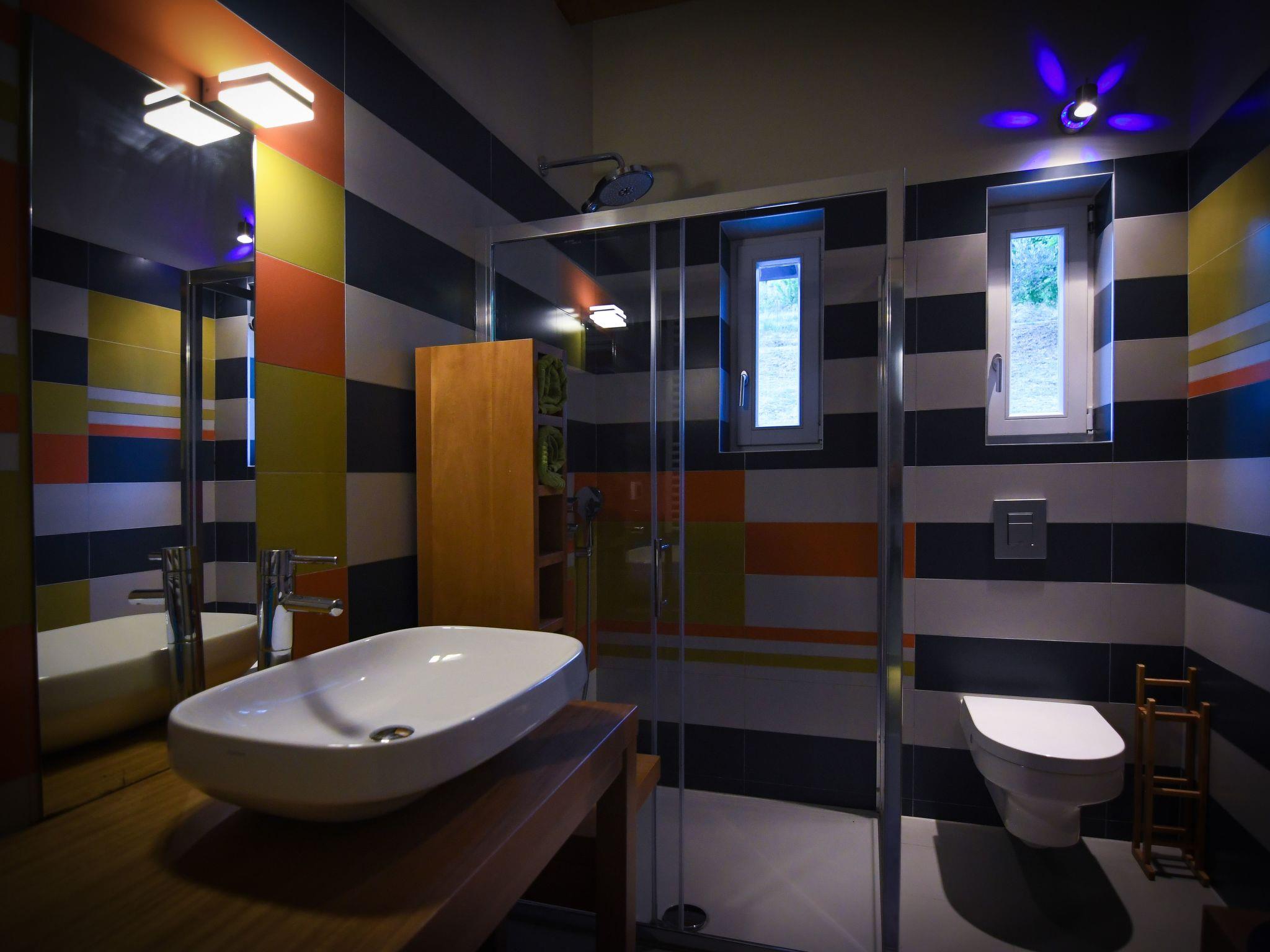 The living room opens onto the big, roofed terrace with an additional outdoor kitchen, with a sink, fridge, brick-built grill and table with chairs. From here you can plunge directly into the 8.5 x 3m pool heated with electrical heaters. On the other side of the pool there is another, gazebo-like, roofed terrace, with seating. A special highlight of this house is the home cinema, which can also be set up outside (it's moveable). In the evenings you can watch a couple of films on the screen or simply gaze at the Istrian starry sky. Above the pool there is also a space for playing badminton or football. As the house is completely surrounded by the outdoor area, there is also a little terrace behind the house, where you can read a book in the shade or take a midday nap. The outdoor area is fenced, so also safe for children and pets. Up to three cars can be parked in front of the house.