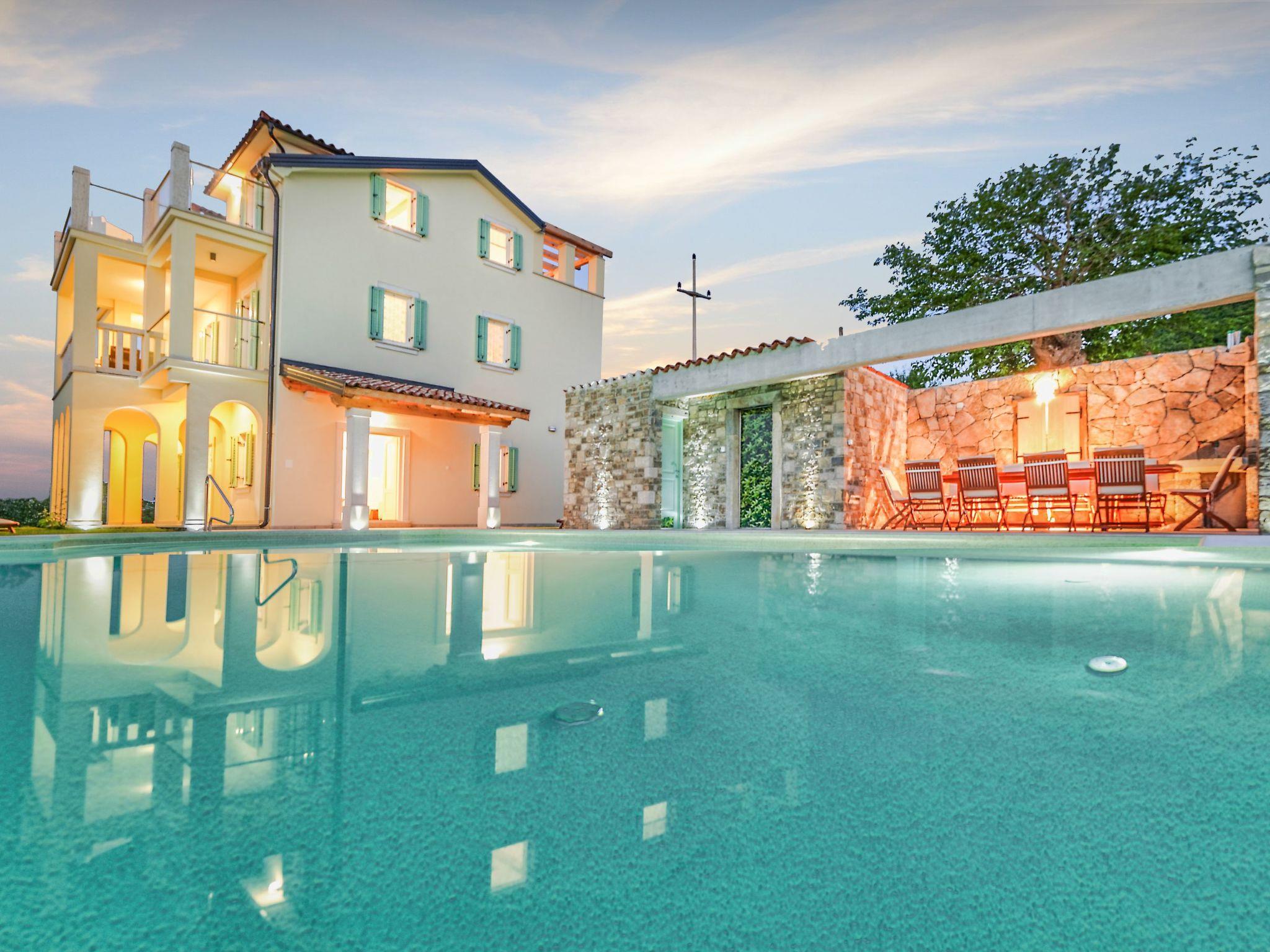 Villa Demetra for 8 people with a total living area of 259 m2 is spread over three floors. On the ground floor of the house there is a fully equipped kitchen with dining room, living room with exit to the pool area and garden, and toilet with washing machine. On the first floor there are two bedrooms each with double bed, en-suite bathrooms, and access to the covered balcony with garden furniture and beautiful views. On the 2nd floor this villa offers 2 bedrooms, one of them with double bed and bathroom, and a twin bedroom with bathroom. Both with access to the balcony with garden furniture and beautiful views of charming Motovun and beautiful Istrian inland. The whole villa is fully air-conditioned and has wireless internet.