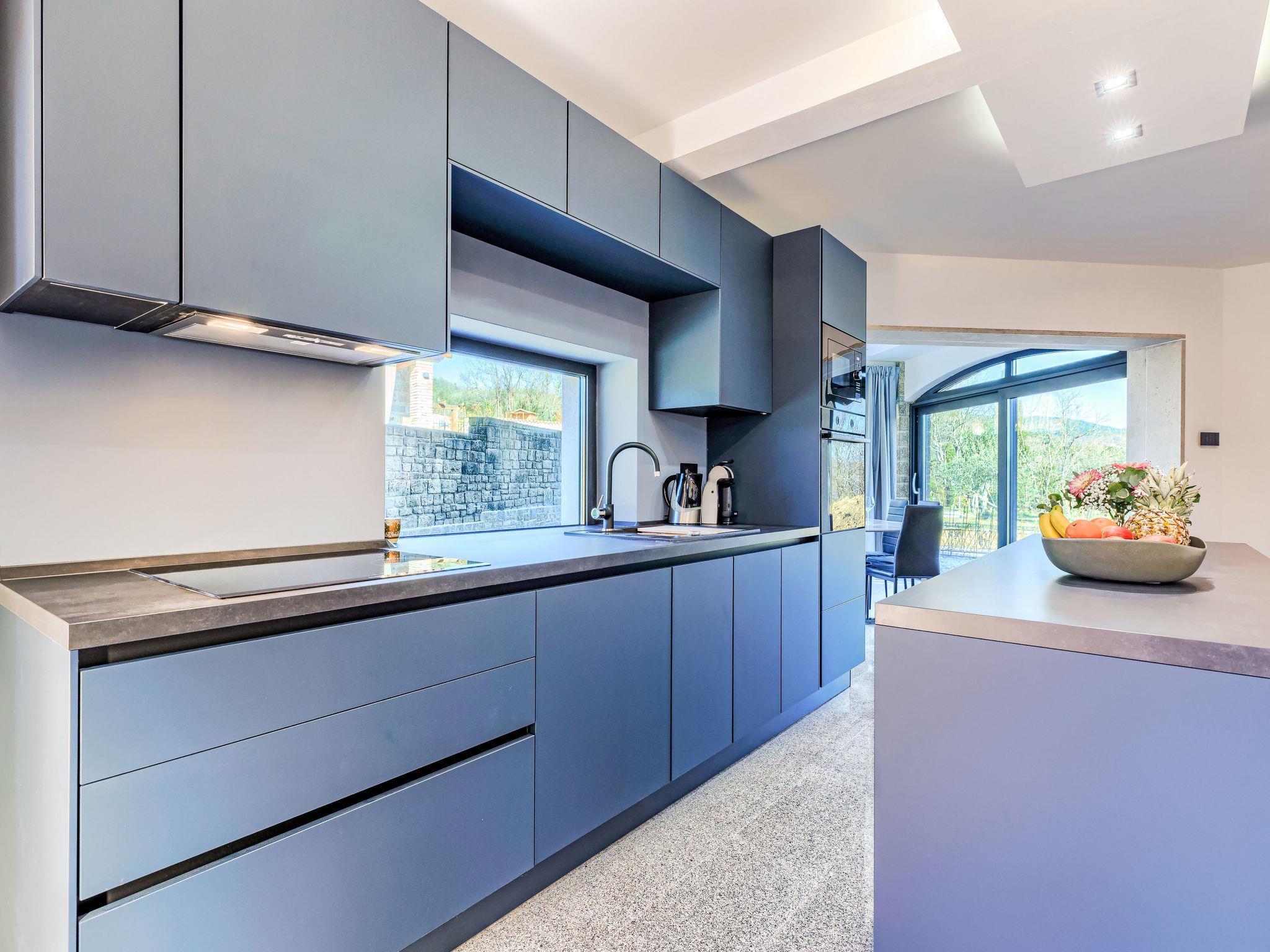 Beautiful, luxurious villa "Solaria", 2 storeys in 2024. In the hamlet Krti 8 km from the centre of Motovun, 15 km from the centre of Buzet, in a quiet position, 30 km from the sea. Private: property 450 m2 (fenced), swimming pool angular (3 x 6 m, depth 140 cm, seasonal availability: 15.Apr. - 01.Nov.) with internal staircase. Outdoor shower, terrace, garden furniture, barbecue. In the house: internet access, washing machine, tumble dryer. Parking (for 2 cars) at the house on the premises. Shop 7 km, supermarket 10 km, restaurant 7 km, bus stop 15 km, 5 km. Walking paths from the house 50 m. Nearby attractions: Winery 8 km. Please note: airfield 45 km from the property.