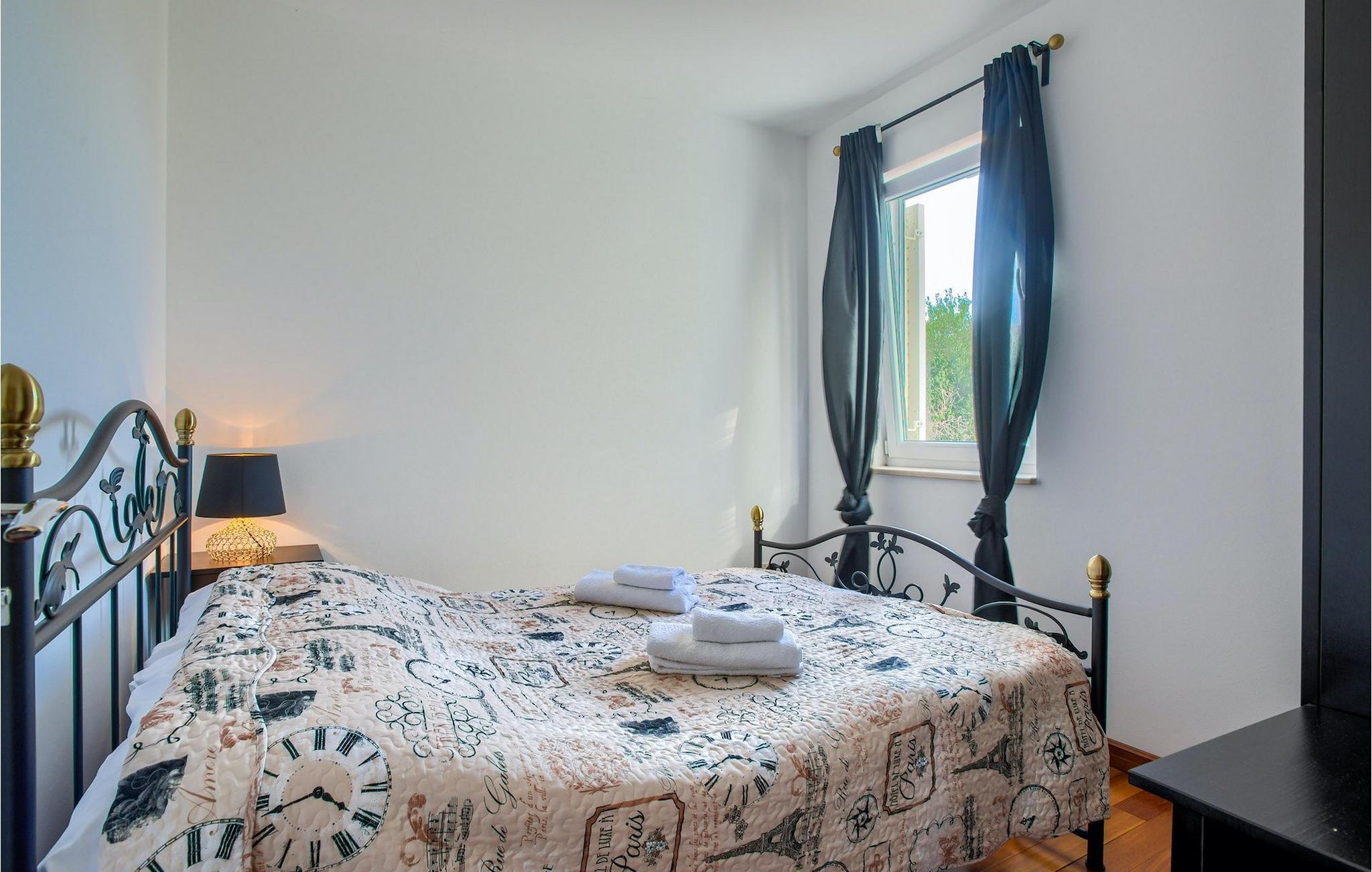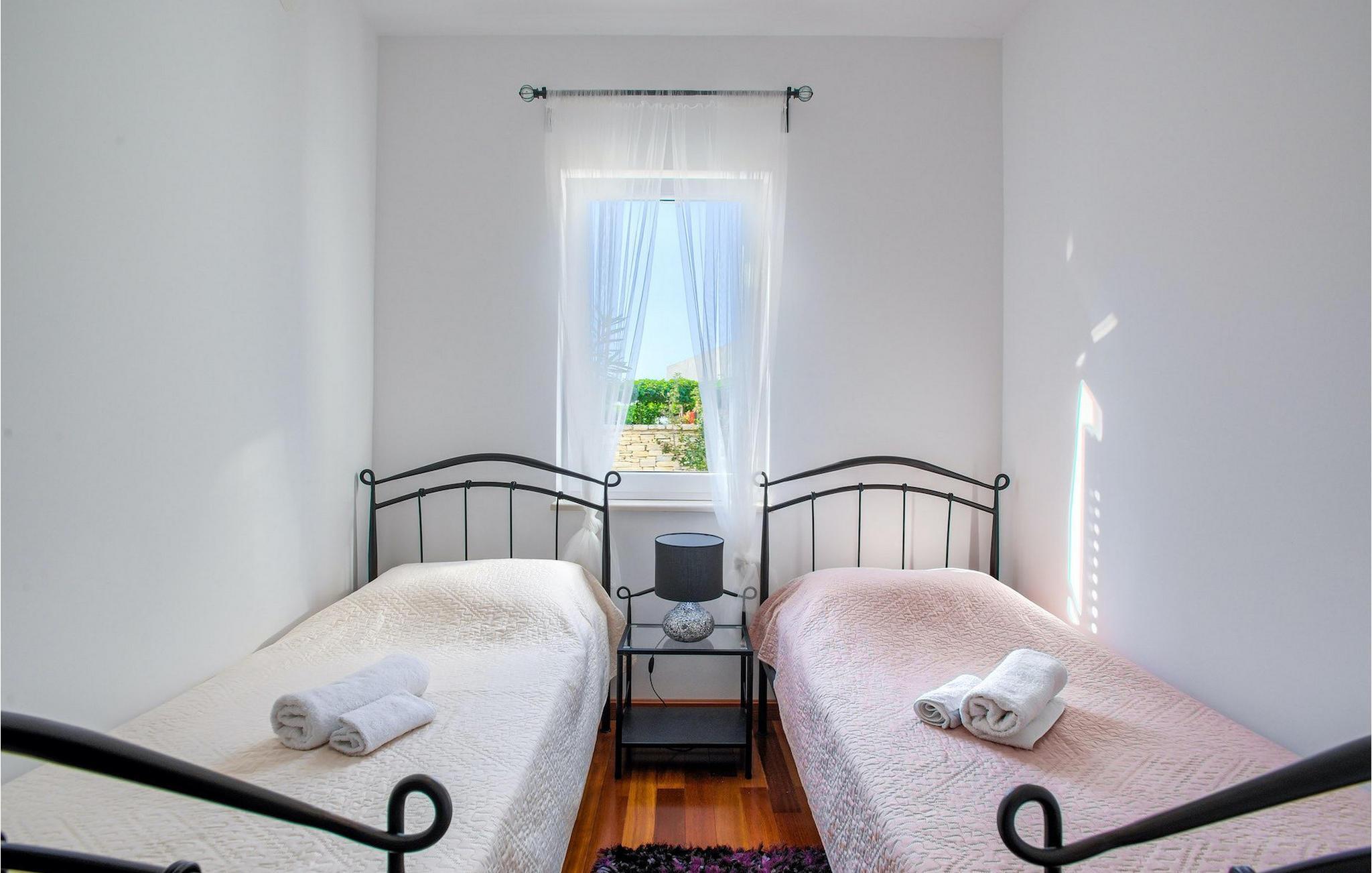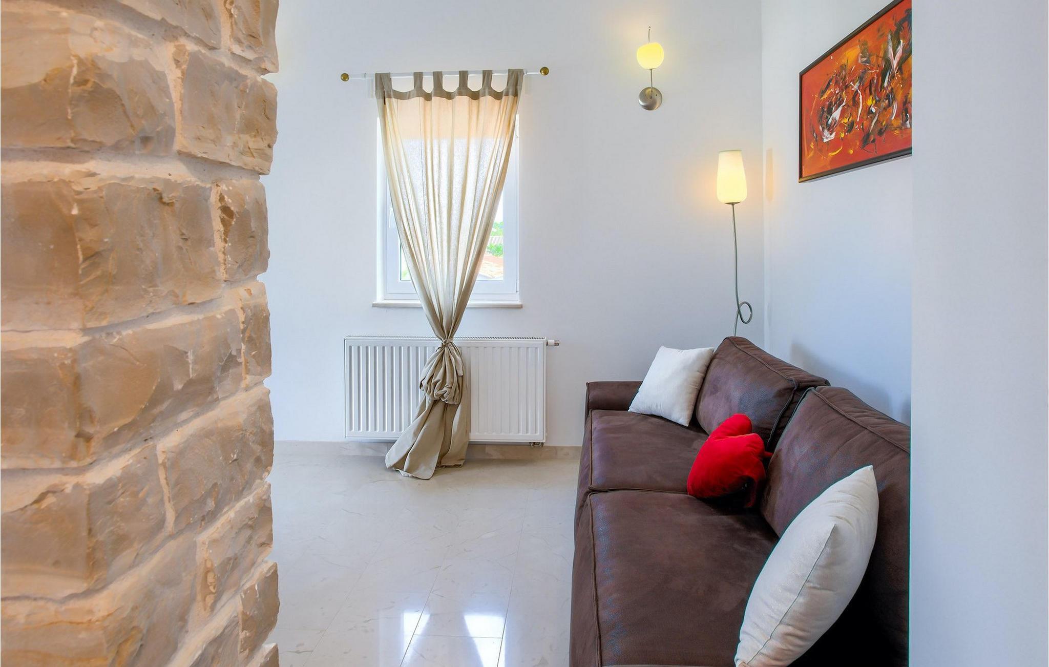 Atemberaubende Villa Kos Murter befindet sich auf der Insel Murter in Dalmatien und kann bis zu 18 Personen beherbergen. Die Villa besteht aus 6 Wohnungen, die zusammen vermietet werden. Die Wohnungen sind über 2 Etagen verteilt, wobei das Erdgeschoß nicht vermietet wird. Im ersten Stock sind 3 Wohnungen, jeweils mit 2 Schlafzimmern. Im zweiten Stock befinden sich 3 weitere Wohnungen, wovon eine Wohnung nur ein Schlafzimmer hat. Alle Wohnungen sind klimatisiert und mit einem Fernseher ausgestattet, haben eine eigene gut ausgestattete Küche und ein eigenes Badezimmer. Von jeder Wohnung können Sie die herrliche Aussicht auf die Umgebung und die kristallklare Adria genießen. Der Außenbereich ist auch beeindruckend. Zur Verfügung steht Ihnen ein mediterraner, schattiger Garten. Der einladende Pool ist ideal für warme, sonnige Tage. Falls Sie jedoch das Meer bevorzugen, befindet sich der nächste Strand nur 300m von der Villa. Ein zusätzlicher Hauch von Luxus sind der Jacuzzi und die traditionelle "konoba", wo die ganze Gruppe Zeit zusammen verbringen und im Freien essen kann.Die Insel Murter ist die größte und dem Land am nächste Insel auf dem Gebiet von Šibenik, von dem Land durch den engen Murter – Kanal getrennt, über den im Ort Tisno eine 12 m lange Zugbrücke gebaut wurde. Die Insel wird zum ersten Mal unter dem Namen Colentum erwähnt. Colentum war eine Stadt, die heute größtenteils unter der See liegt. Die Archäologen haben luxuriöse Gebäude, wahrscheinlich Villen mit herrlichem Meerblick, entdeckt. Man vermutet, dass Colentum am Anfang des 2. Jahrhunderts von Piraten niedergerissen wurde, und dass es im Erdbeben Schaden erlitten hat.