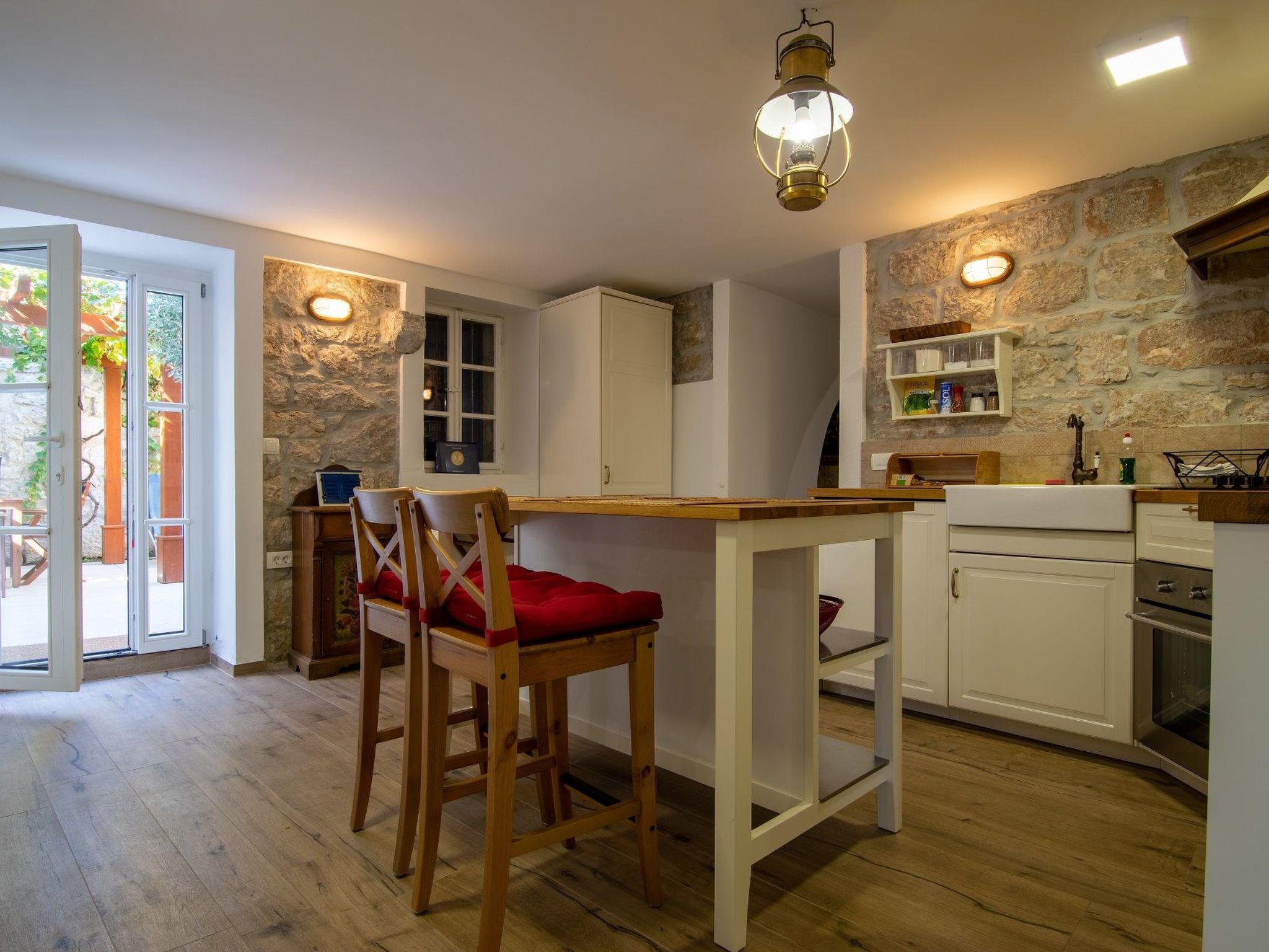 Spacious holiday flat for up to six people in a recently renovated (2017) old villa in the historic part of the village of Betina This cosily furnished holiday flat is located just 20 m from the sea, in the pedestrian zone. It is located in an over 160-year-old natural stone house, which is a listed building and was lovingly restored by hand in 2017. With its authentic and unusual appearance, reminiscent of the charm of the past, the house is also a frequent eye-catcher for passers-by and guests. It is built in a Mediterranean style, with thick walls to protect it from the heat.