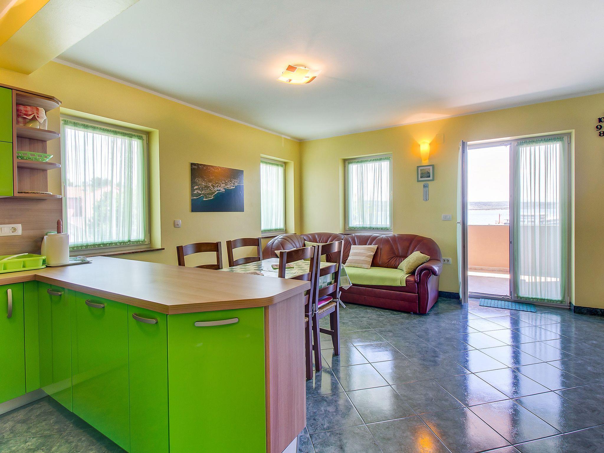 Ferienwohnung bietet Platz für 6 Gäste. Die Betten sind in Schlafzimmern, die es 2 gibt, und in Wohnzimmer, innerhalb einer Gesamtfläche von 53m2, angeordnet. Die Gäste haben einen eigenen Balkon zur Verfügung, auf der sie in warmen Sommernächten genießen können. Das Apartment bietet Meerblick. IM PREIS INBEGRIFFEN: Kurtaxe, Endreinigung, Klimatisierung, Zentralheizung, Parkplatz, Internet, Zusatzbett, Föhn. VERBINDLICHE ZUSÄTZLICHE KOSTEN: Aufzahlung für Kurzaufenthalte (prozentualer Zuschlag pro Nächtigungsanzahl: 30% - 1, 20% - 2, 10% - 3). UNVERBINDLICHE ZUSÄTZLICHE KOSTEN: Wäschewaschen (7,00 € Waschen). Die Verfügbarkeit zusätzlicher Dienstleistungen in Ihrem reservierten Termin und die Preise derselben (falls nicht aufgeführt) müssen im Voraus überprüft werden. Zusätzliche Dienstleistungen die in der Zahlungsaufforderung nicht aufgeführt sind werden direkt beim Vermieter bezahlt, angenommen der Gast nutzt auch diese. Ermäßigung auf den Grundpreis: Gratistag 14=13 (bei einem Aufenthalt von 14 Tagen oder mehr erhalten Sie einen Gratistag für den Aufenthalt bis 31.12.25).