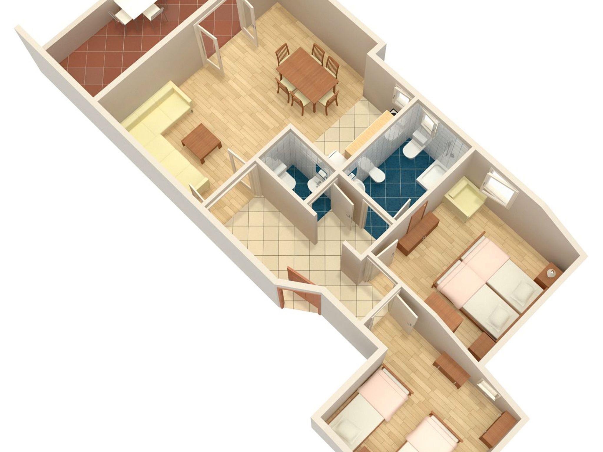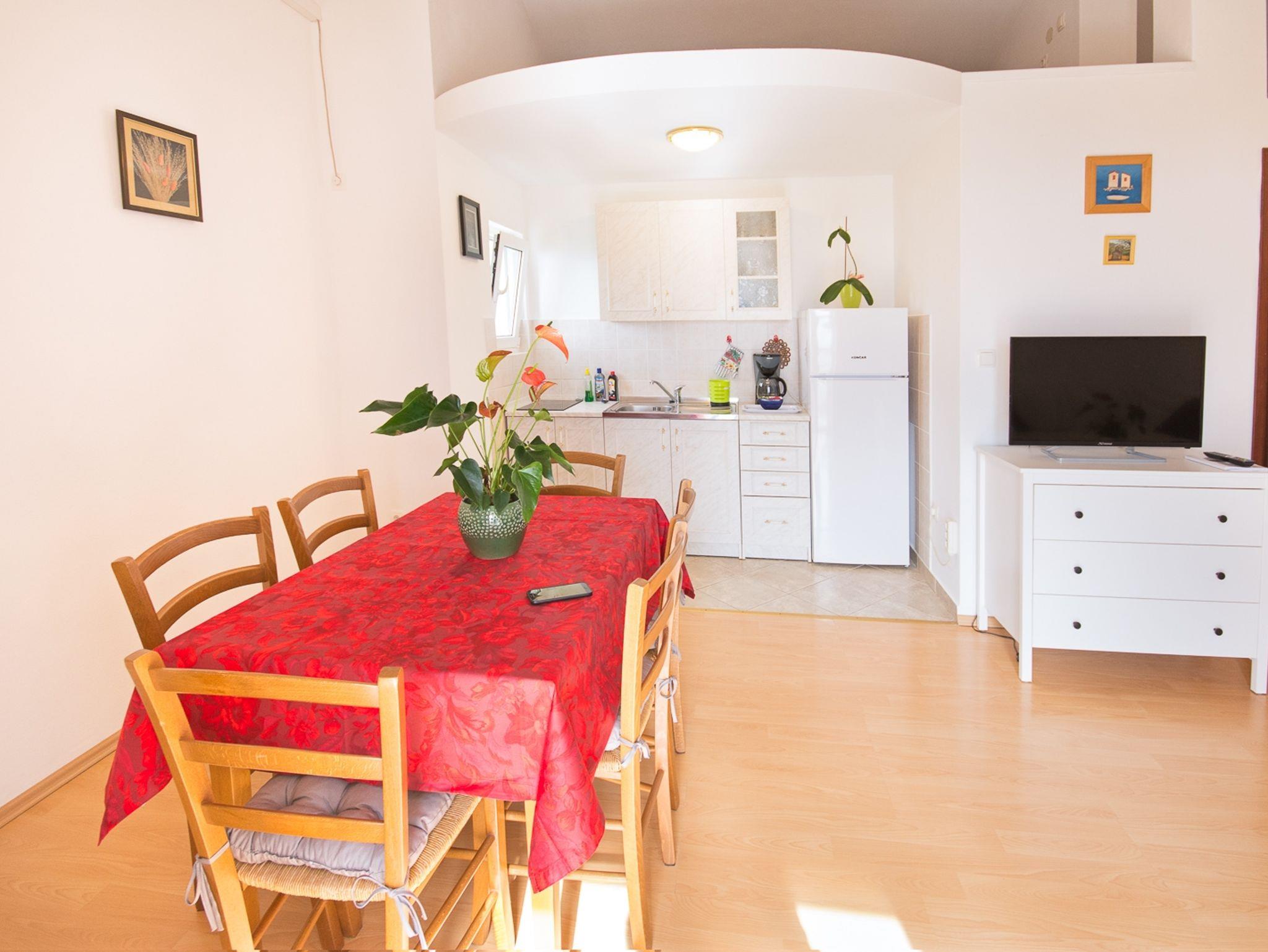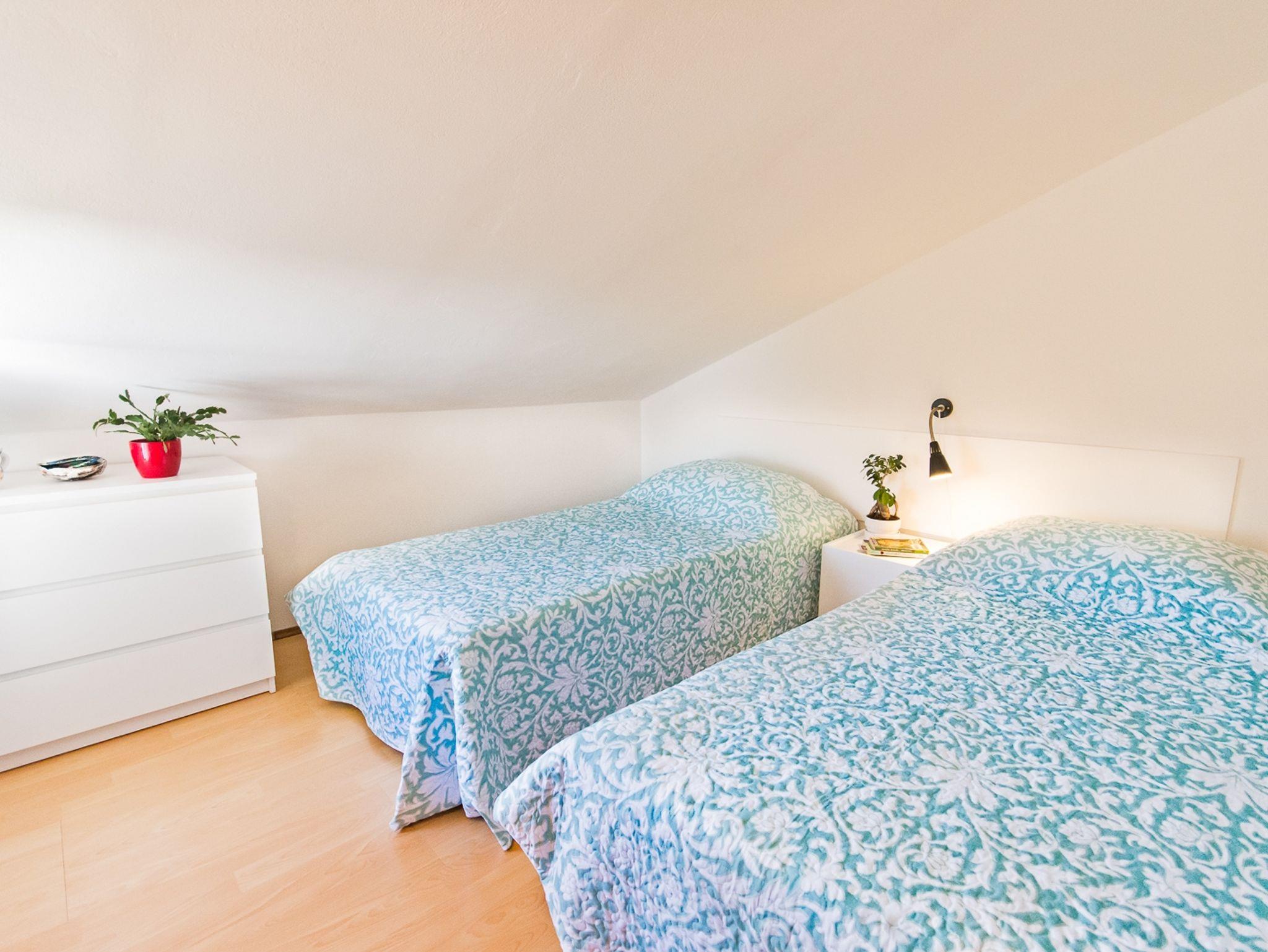 Ferienwohnung bietet Platz für 4 Gäste. Die Betten sind in Schlafzimmern, die es 2 gibt, innerhalb einer Gesamtfläche von 59m2, angeordnet. Die Gäste haben eine eigene Terrasse zur Verfügung, auf der sie in warmen Sommernächten genießen können. Das Apartment bietet Meerblick. Es ist erlaubt, Speisen auf dem Gemeinschafts-Grill vorzubereiten. IM PREIS INBEGRIFFEN: Kurtaxe, Endreinigung, Klimatisierung, Parkplatz, Internet, Kinderbett, Bügeleisen, Föhn. VERBINDLICHE ZUSÄTZLICHE KOSTEN: Aufzahlung für Kurzaufenthalte (prozentualer Zuschlag pro Nächtigungsanzahl: 30% - 1, 20% - 2, 10% - 3). UNVERBINDLICHE ZUSÄTZLICHE KOSTEN: Wäschewaschen (5,00 € Waschen), Zusatzbett (5,00 € pro Nacht). Die Verfügbarkeit zusätzlicher Dienstleistungen in Ihrem reservierten Termin und die Preise derselben (falls nicht aufgeführt) müssen im Voraus überprüft werden. Zusätzliche Dienstleistungen die in der Zahlungsaufforderung nicht aufgeführt sind werden direkt beim Vermieter bezahlt, angenommen der Gast nutzt auch diese. Ermäßigung auf den Grundpreis: Gratistag 14=13 (bei einem Aufenthalt von 14 Tagen oder mehr erhalten Sie einen Gratistag für den Aufenthalt bis 31.12.26).