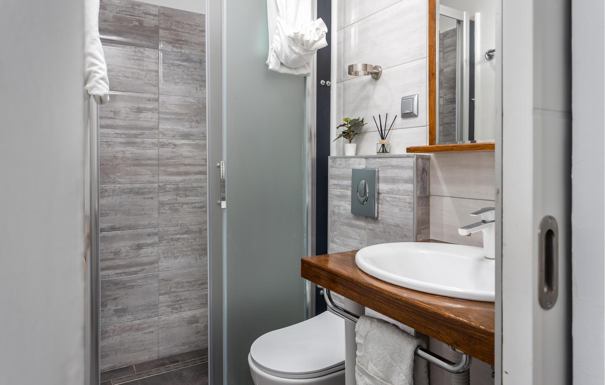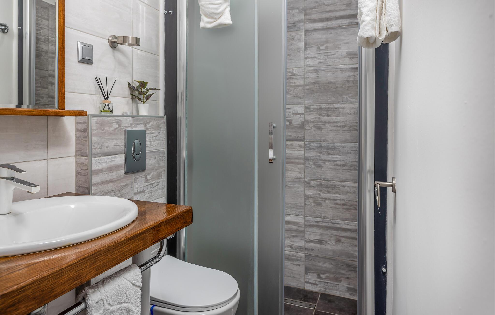 - WC mit warmem und kaltem Wasser, Dusche