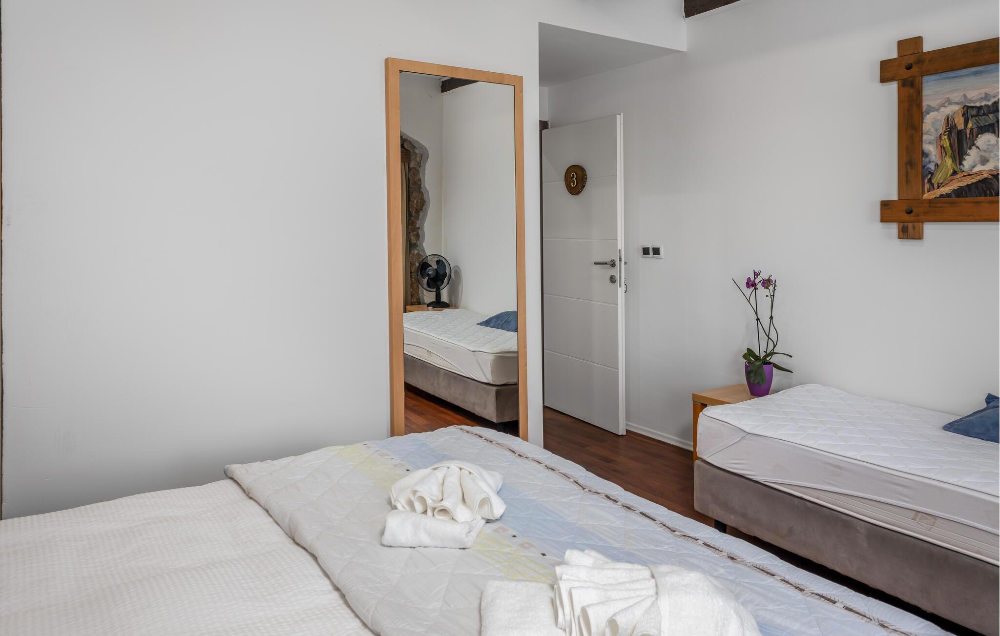 Packen Sie Ihre Koffer und freuen Sie sich auf einen traumhaften Urlaub in Bater, nahe Novi Vinodolski. Ihr wunderschönes Ferienhaus, das insbesondere in den Innenbereichen durch seinen rustikalen Charme besticht, bietet Ihnen die Möglichkeit, sich in dieser friedlichen Umgebung voll und ganz zu erholen. Im Inneren des Hauses schaffen die rustikalen Steinwände und freiliegenden Holzbalken eine authentische, gemütliche Umgebung. Machen Sie es sich hier auf den komfortablen Möbeln bequem und genießen Sie die freie Urlaubszeit. Ihre Mahlzeiten können Sie in der Innen-Küche oder in der wunderschönen Außenküche zubereiten. Servieren Sie Ihre kulinarischen Kreationen in der urigen Essnische oder draußen auf der Terrasse.
