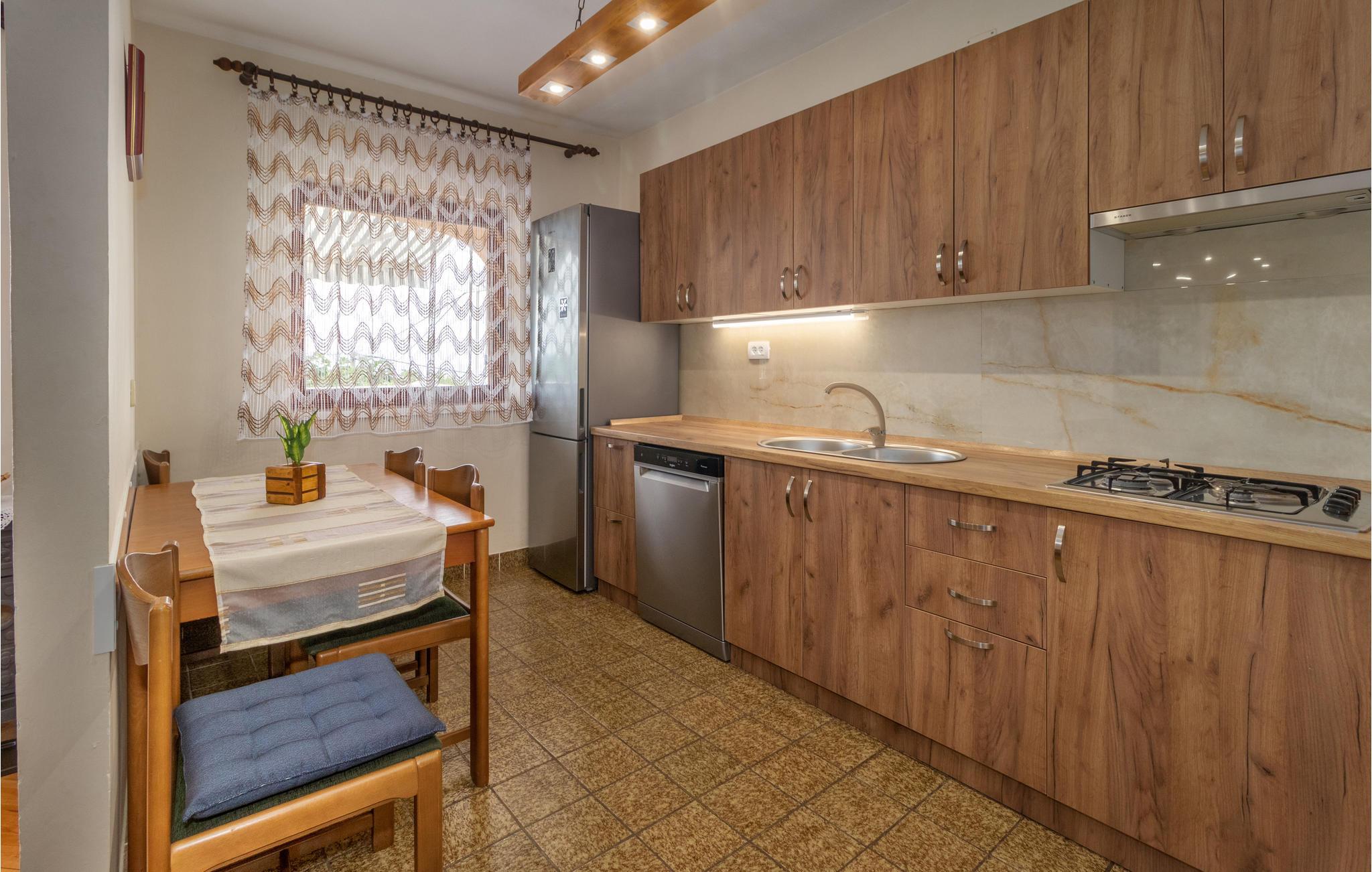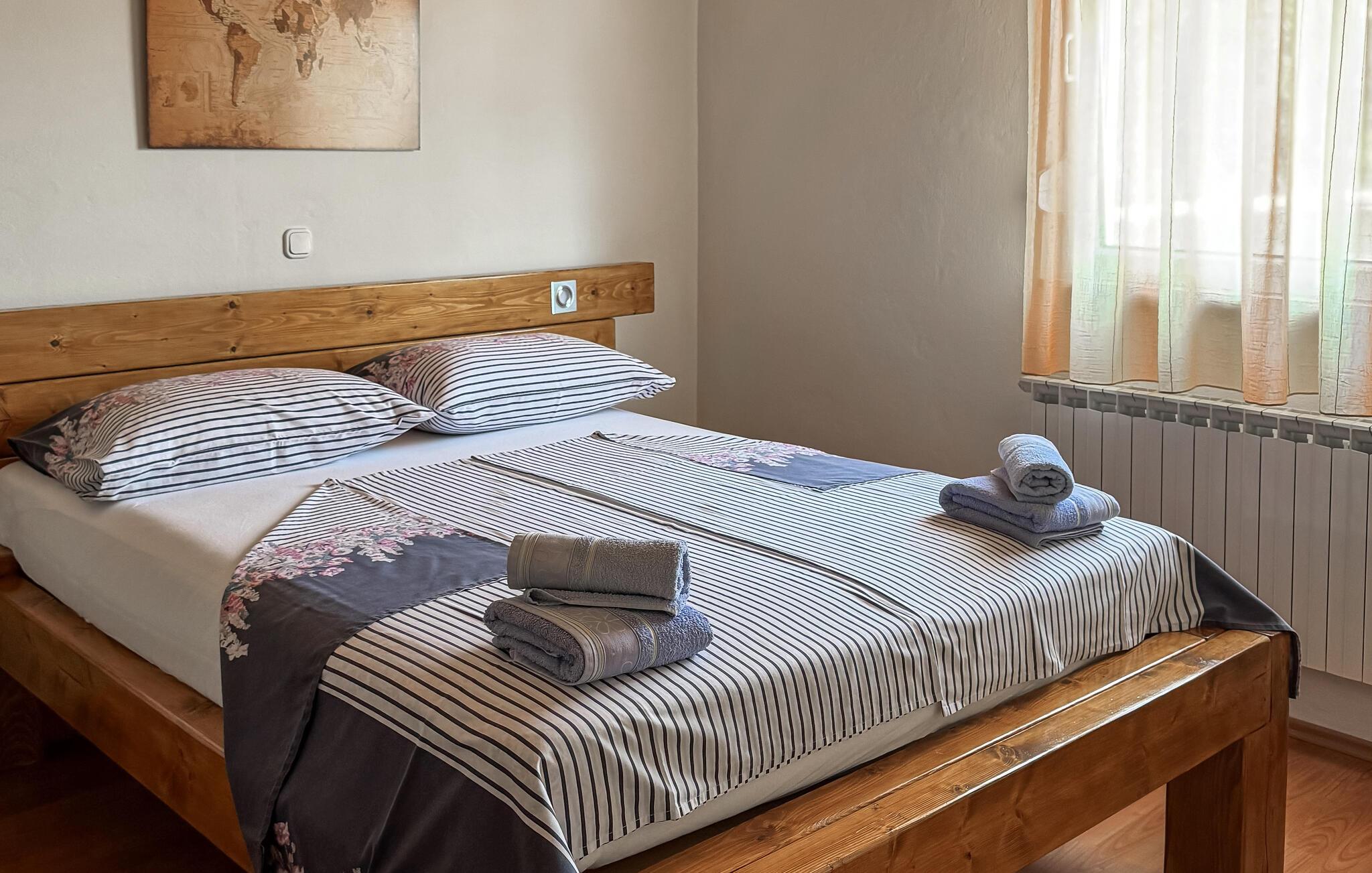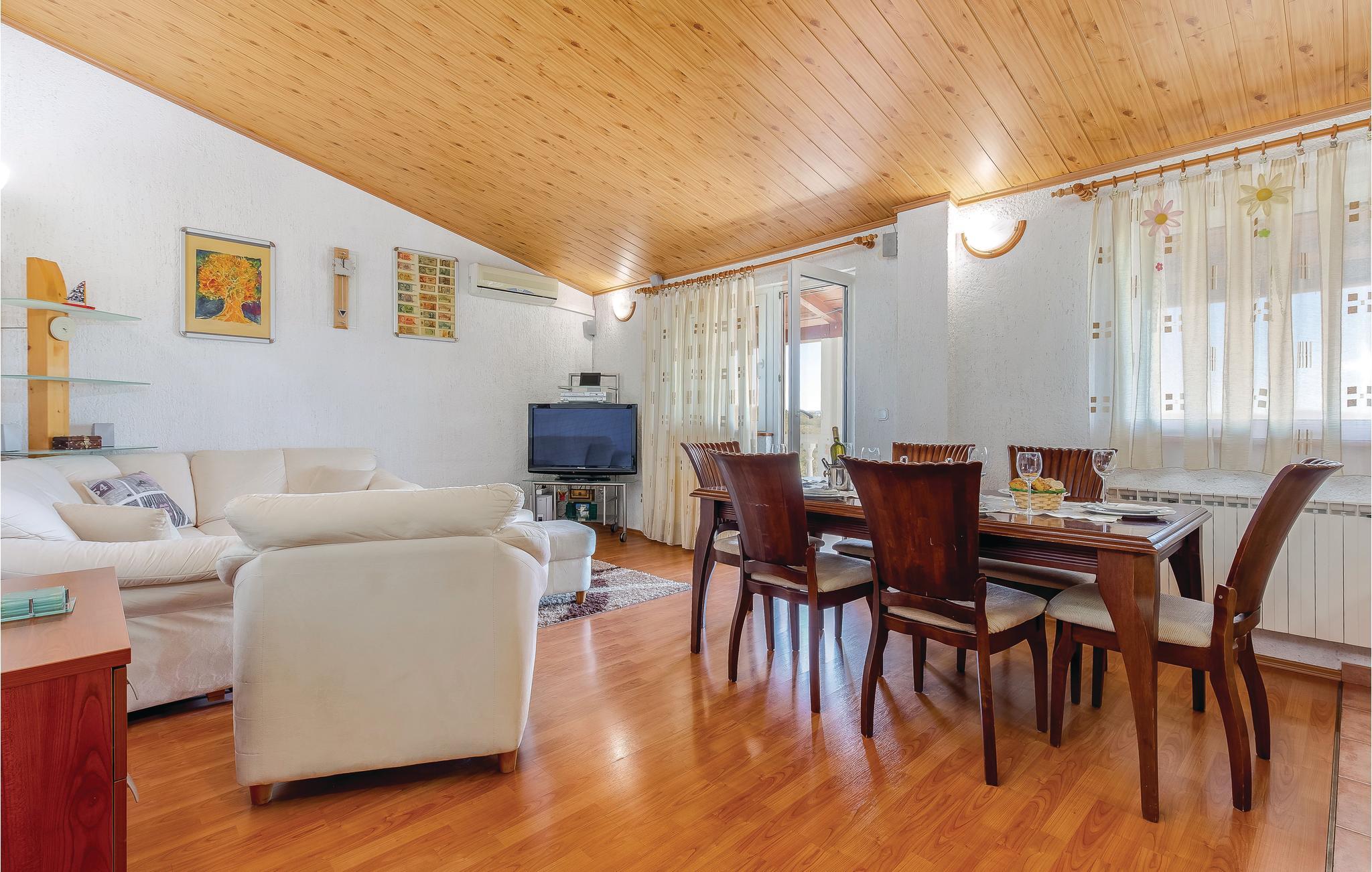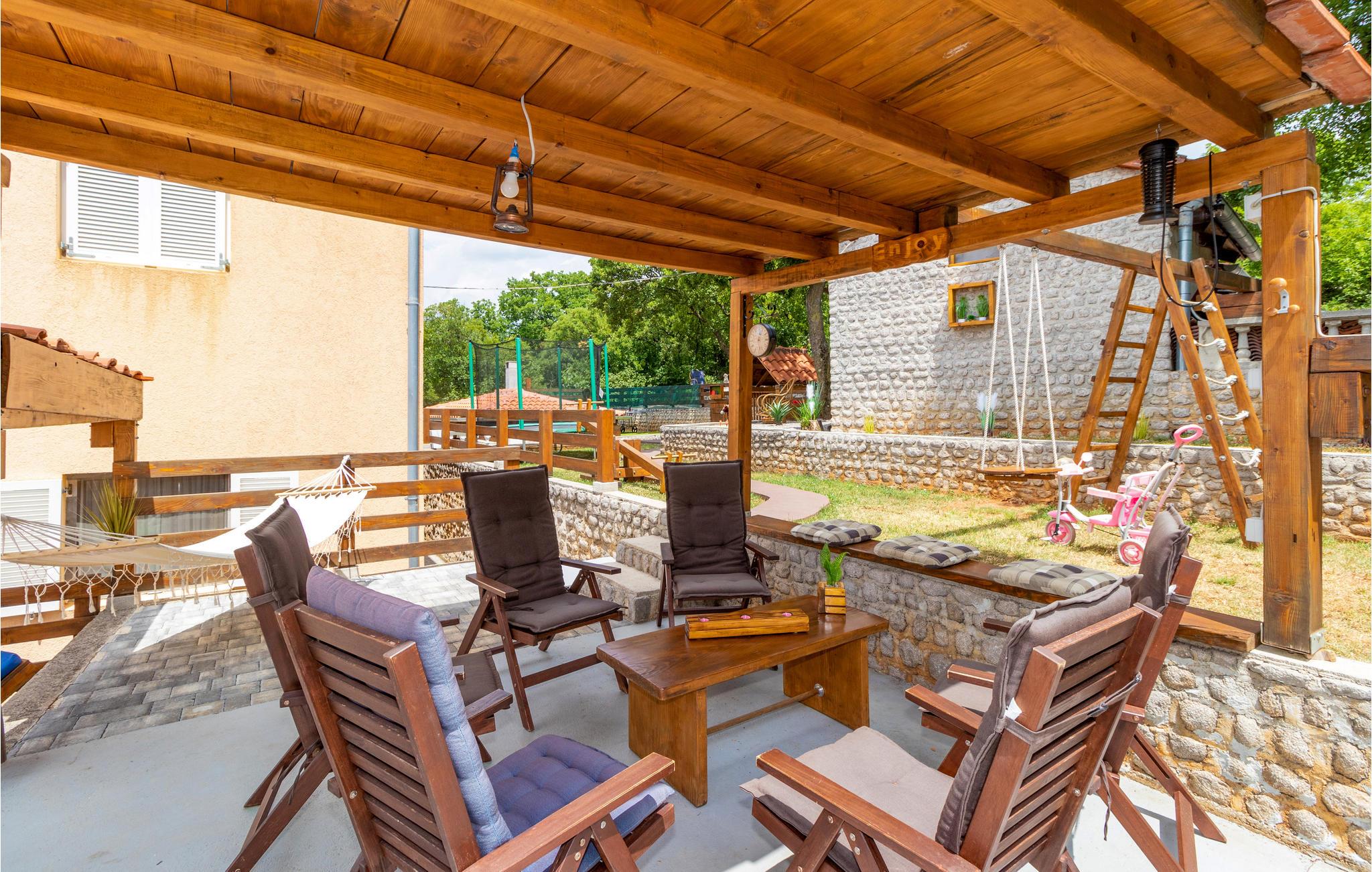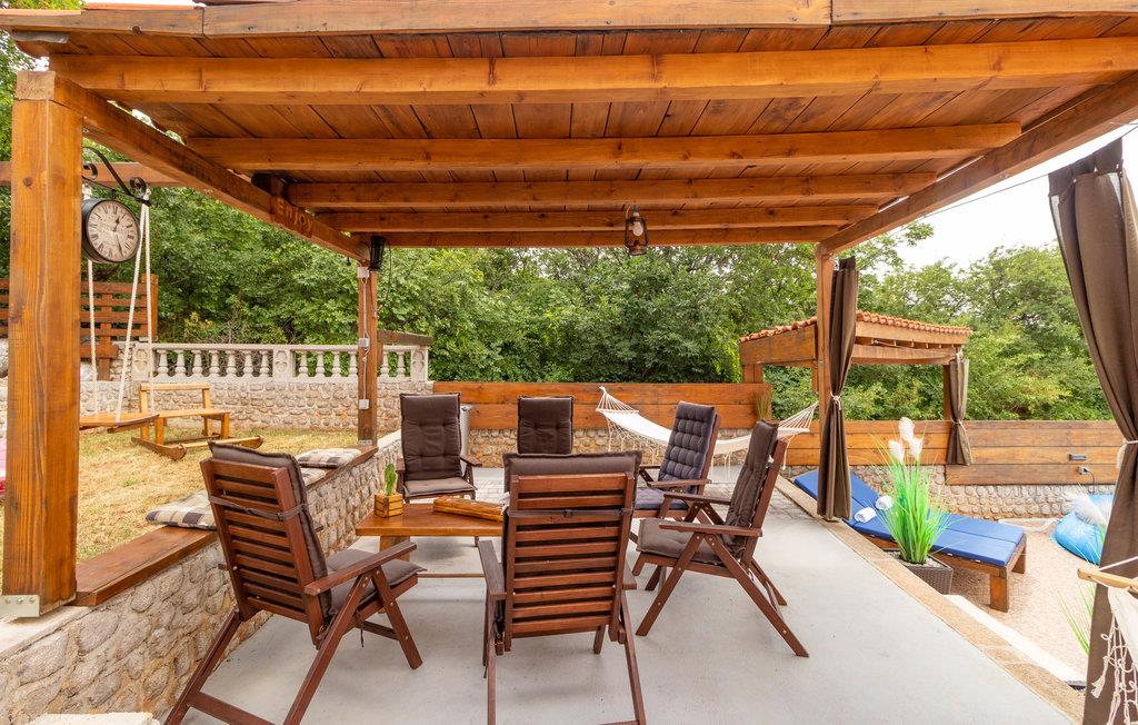 Im ruhigen Dorf Donji Zagon in der Nähe von Novi Vindoloski liegt dieses Ferienhaus auf drei Niveaus, die durch Außentreppen verbunden sind und je über einen eigenen Eingang verfügen. Die Einrichtung ist einfach und traditionell.