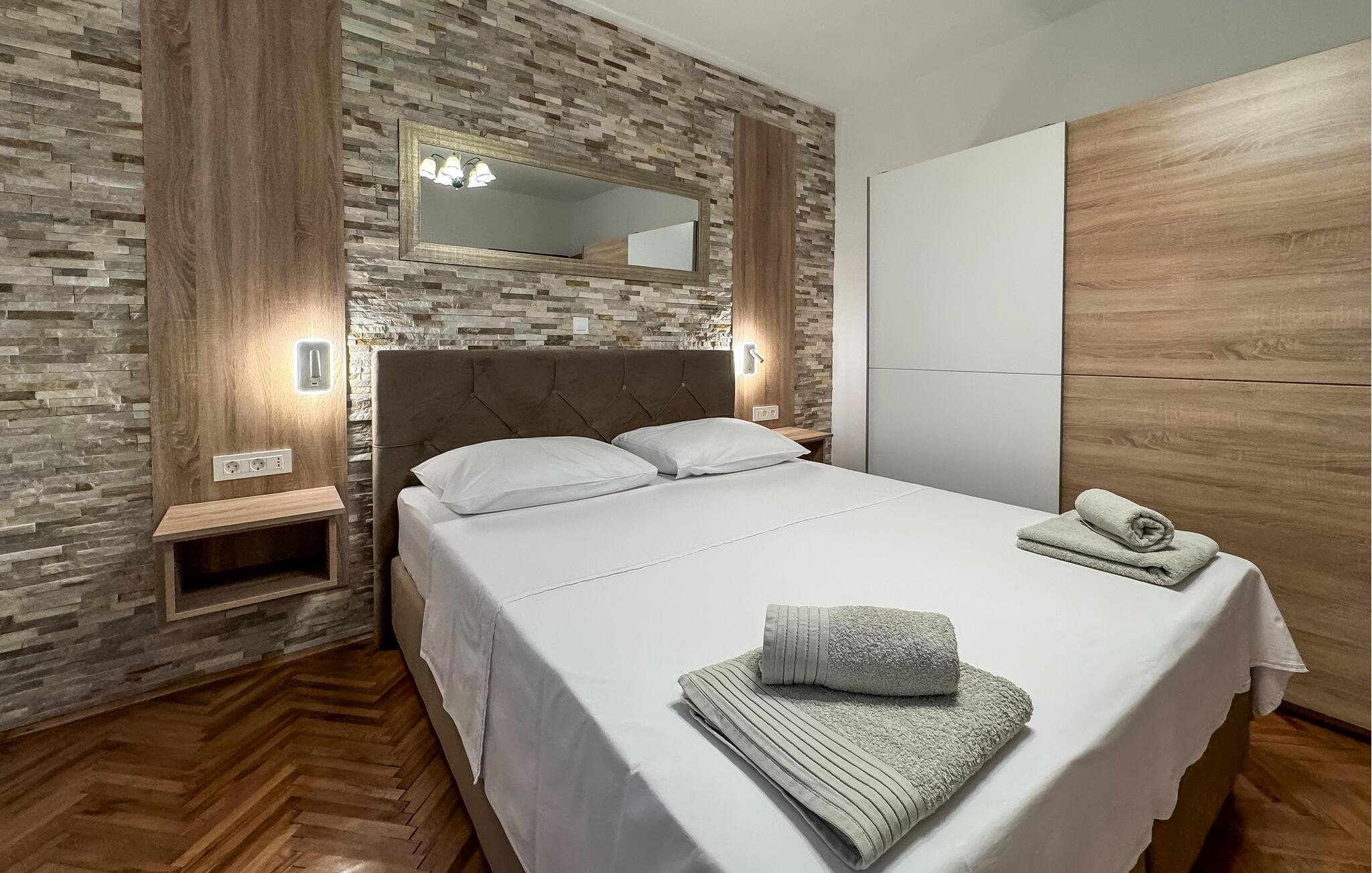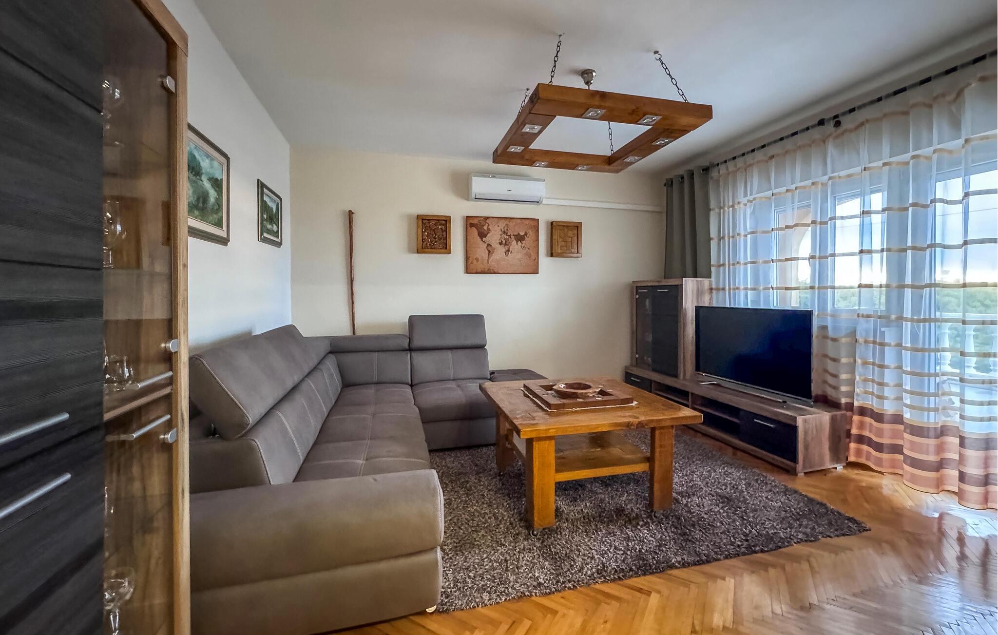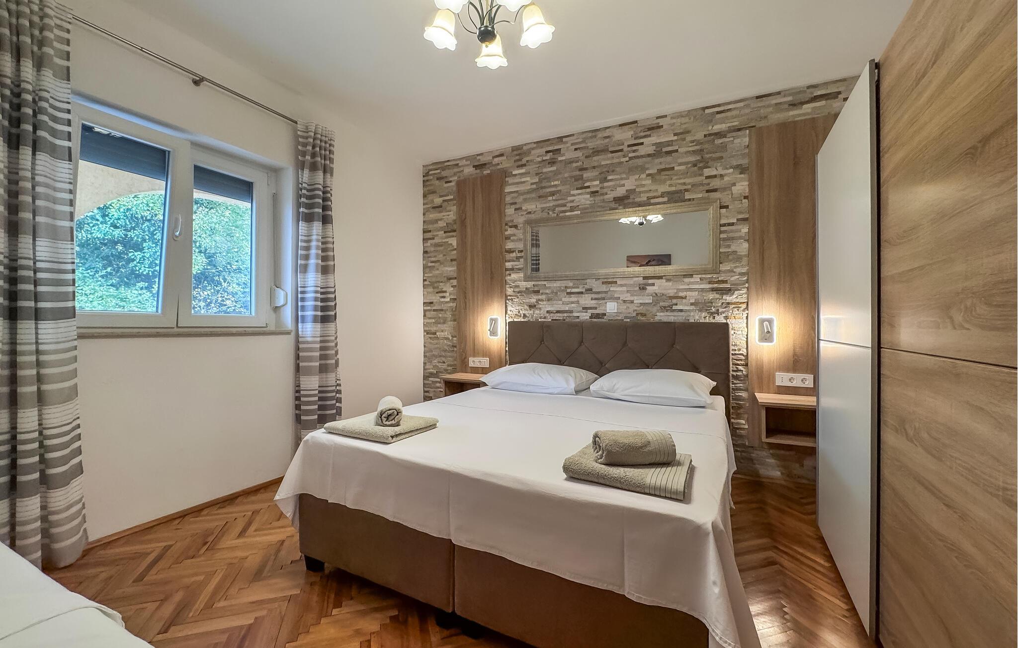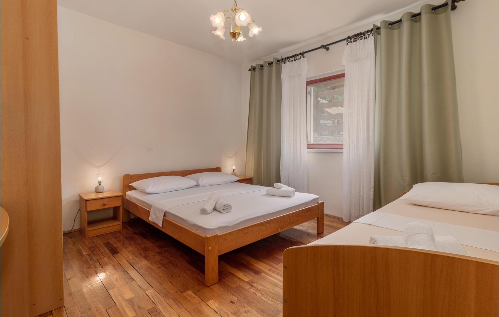 Im ruhigen Dorf Donji Zagon in der Nähe von Novi Vindoloski liegt dieses Ferienhaus auf drei Niveaus, die durch Außentreppen verbunden sind und je über einen eigenen Eingang verfügen. Die Einrichtung ist einfach und traditionell.