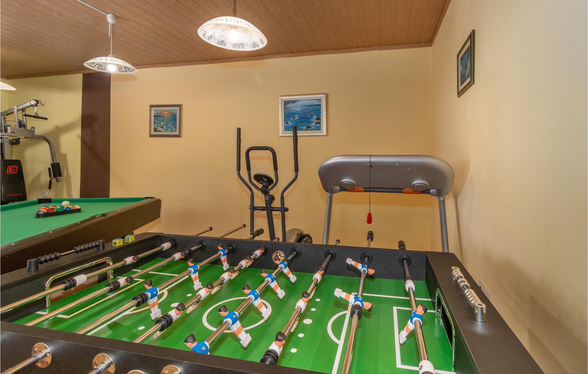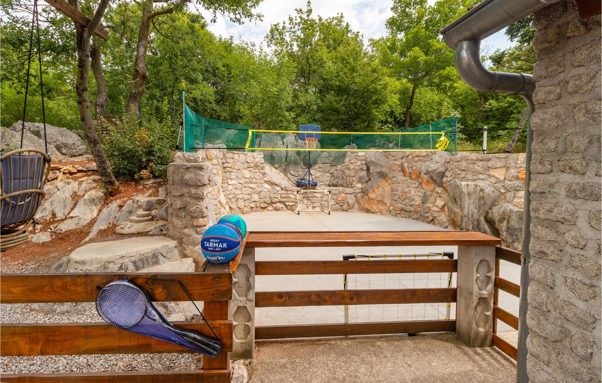 Das Besondere an diesem Haus sind viele Einrichtungen für diejenigen, die auch im Urlaub fit bleiben möchten: Basketballkorb, Volleyballnetz, Badmintonnetze, Badmintonschläger und Fußballtor.
