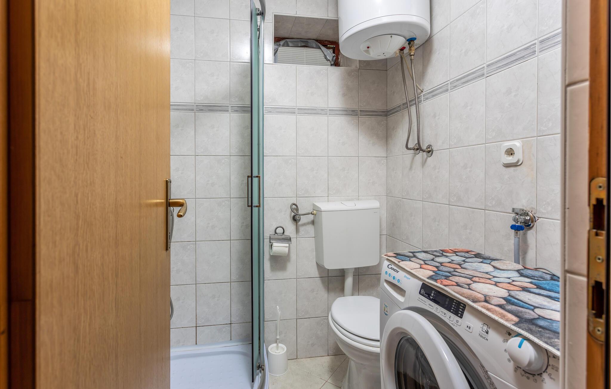- WC mit warmem und kaltem Wasser, Dusche