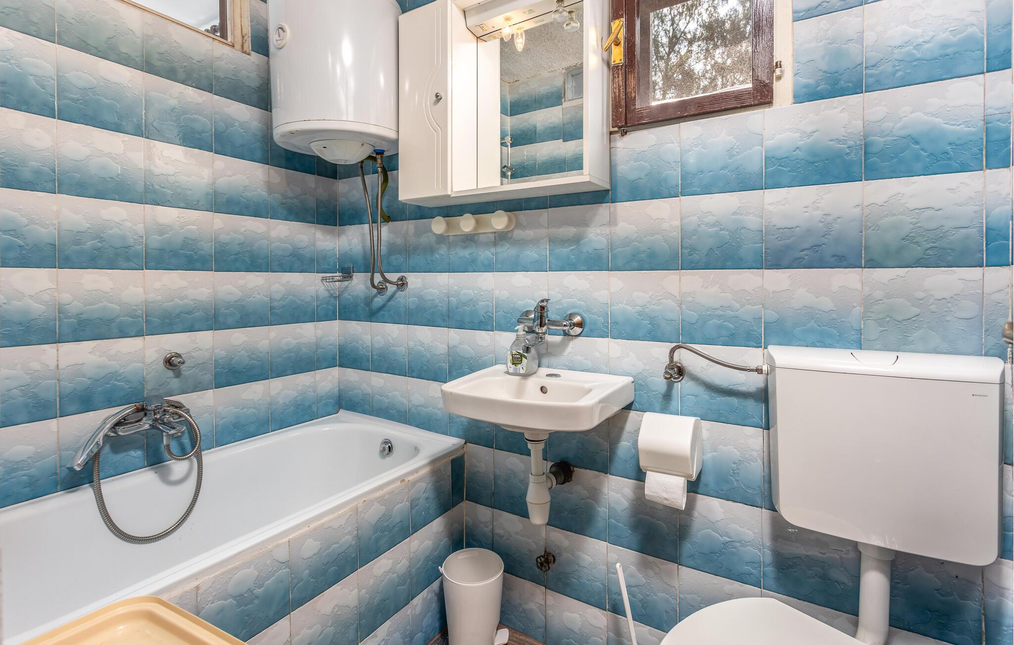 - WC mit warmem und kaltem Wasser, Badewanne