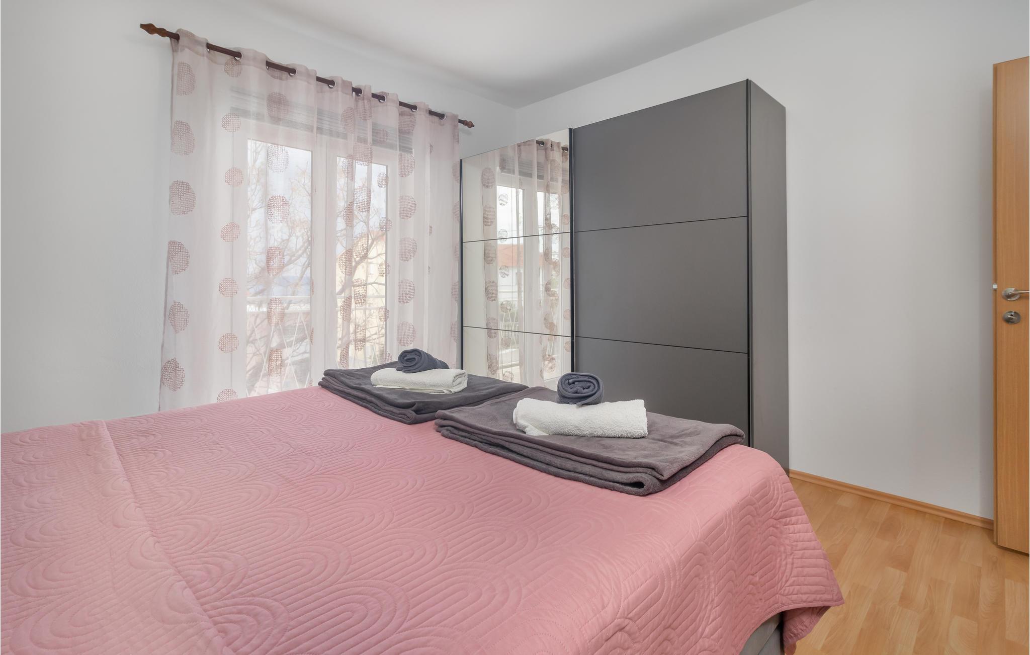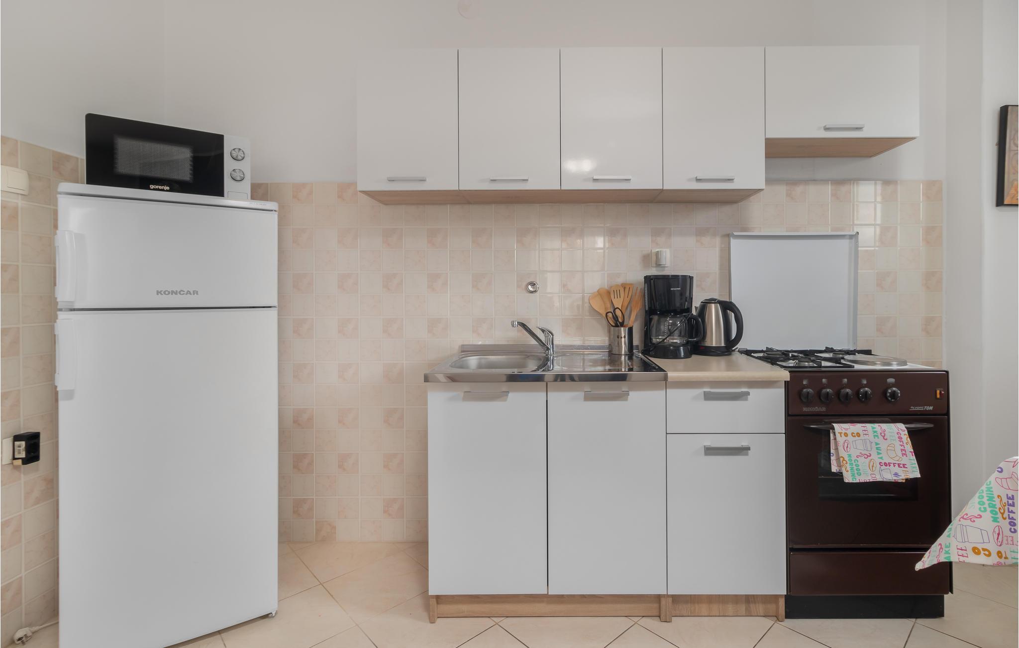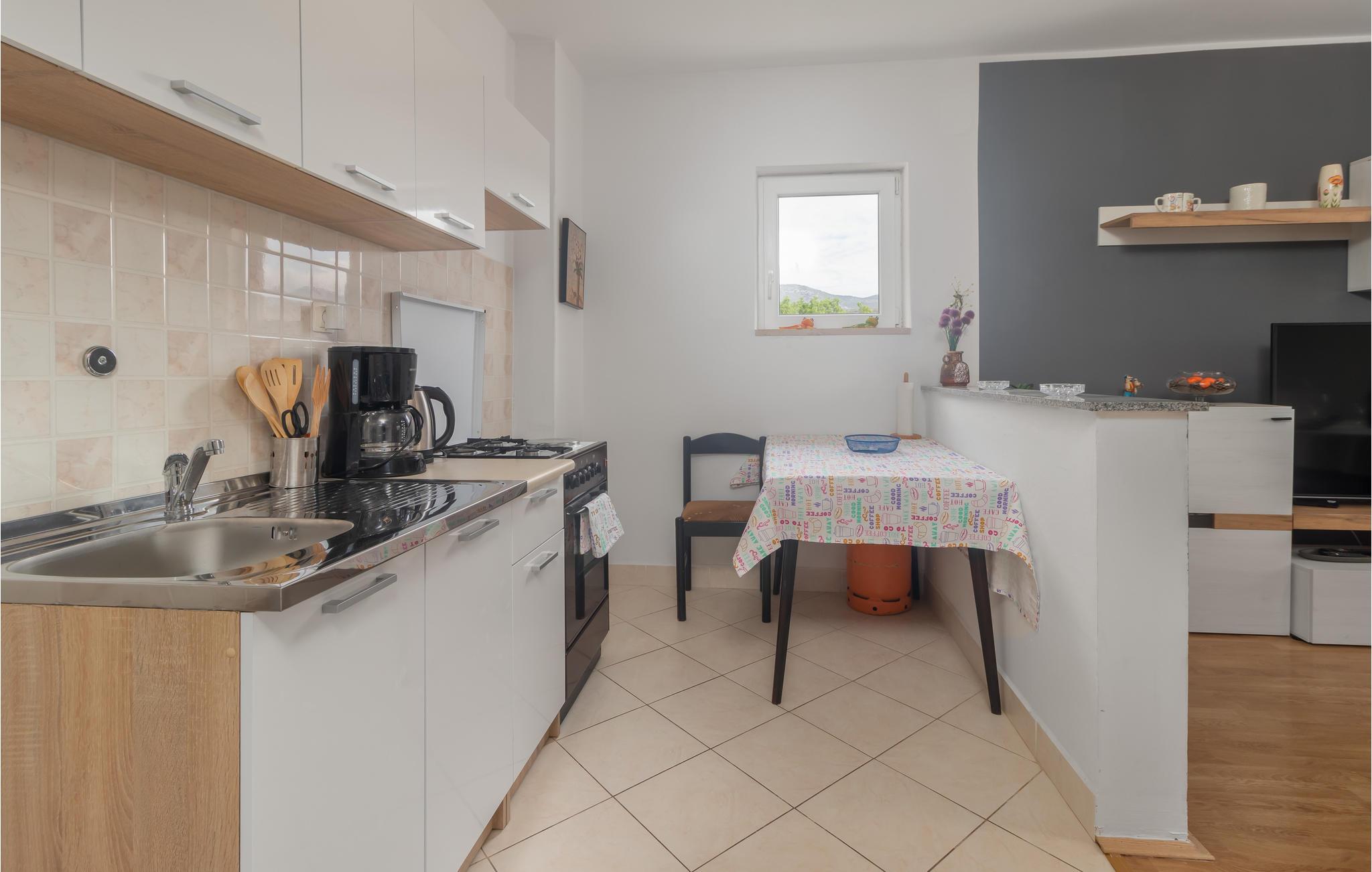 Diese einfach eingerichtete Ferienwohnung liegt im ersten Stock eines Familienhauses im beliebten Ferienort Novi Vinodolski und besteht aus Wohnküche, Bad, zwei Schlafzimmern und einem langen Balkon, von dem sich eine schöne Aussicht nicht nur auf den Garten und die Umgebung bietet, sondern auch auf das Meer.