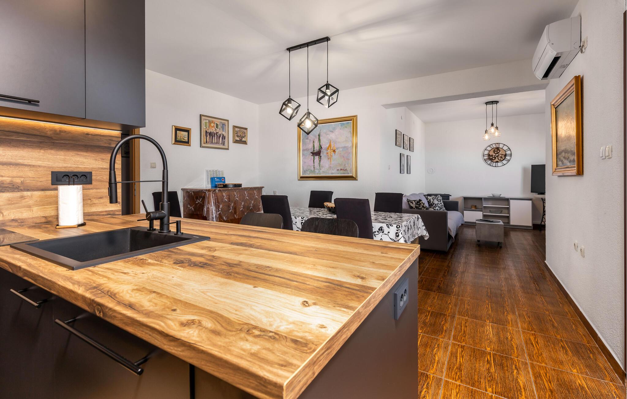 Im beliebten Ferienort Novi Vinodolski und in einem Mehrfamilienhaus befinden sich diese schön und funktionell eingerichteten Ferienwohnungen. Dank der Hügellage direkt oberhalb des Stadtzentrums bietet sich von den Balkonen eine wunderbare Aussicht auf das Meer und die Insel Krk. In wenigen Gehminuten erreichen Sie das Stadtzentrum und die Fußgängerzone, wo Geschäfte zum Bummeln einladen. Nach herrlichen Badetagen an den Stränden können Sie die Abende in den lokalen Cafés, Restaurants und Konobas ausklingen lassen. Durch die günstige Lage haben Sie die Möglichkeit, andere Ferienorte wie die Städte Crikvenica und Rijeka oder die Insel Krk zu besuchen.