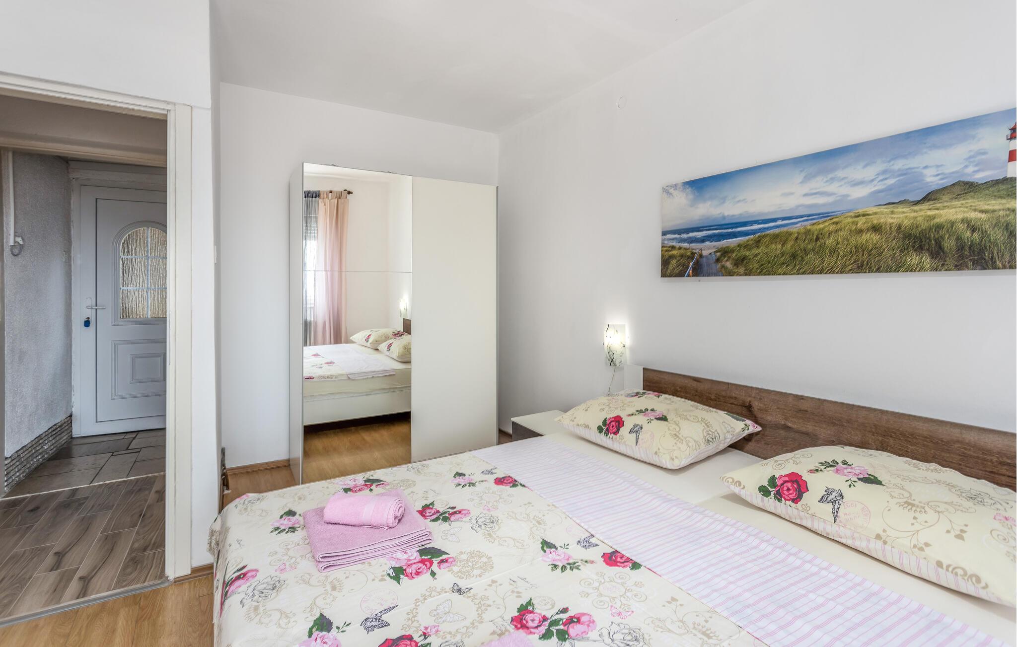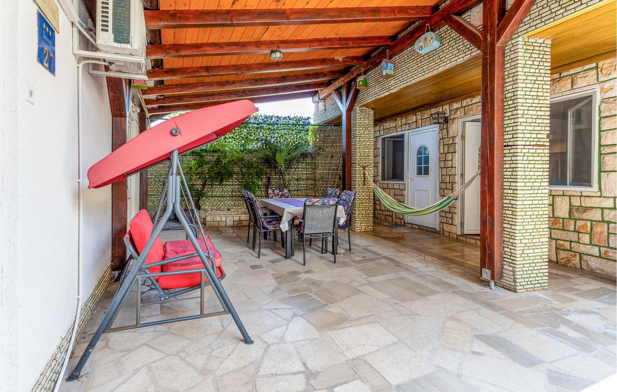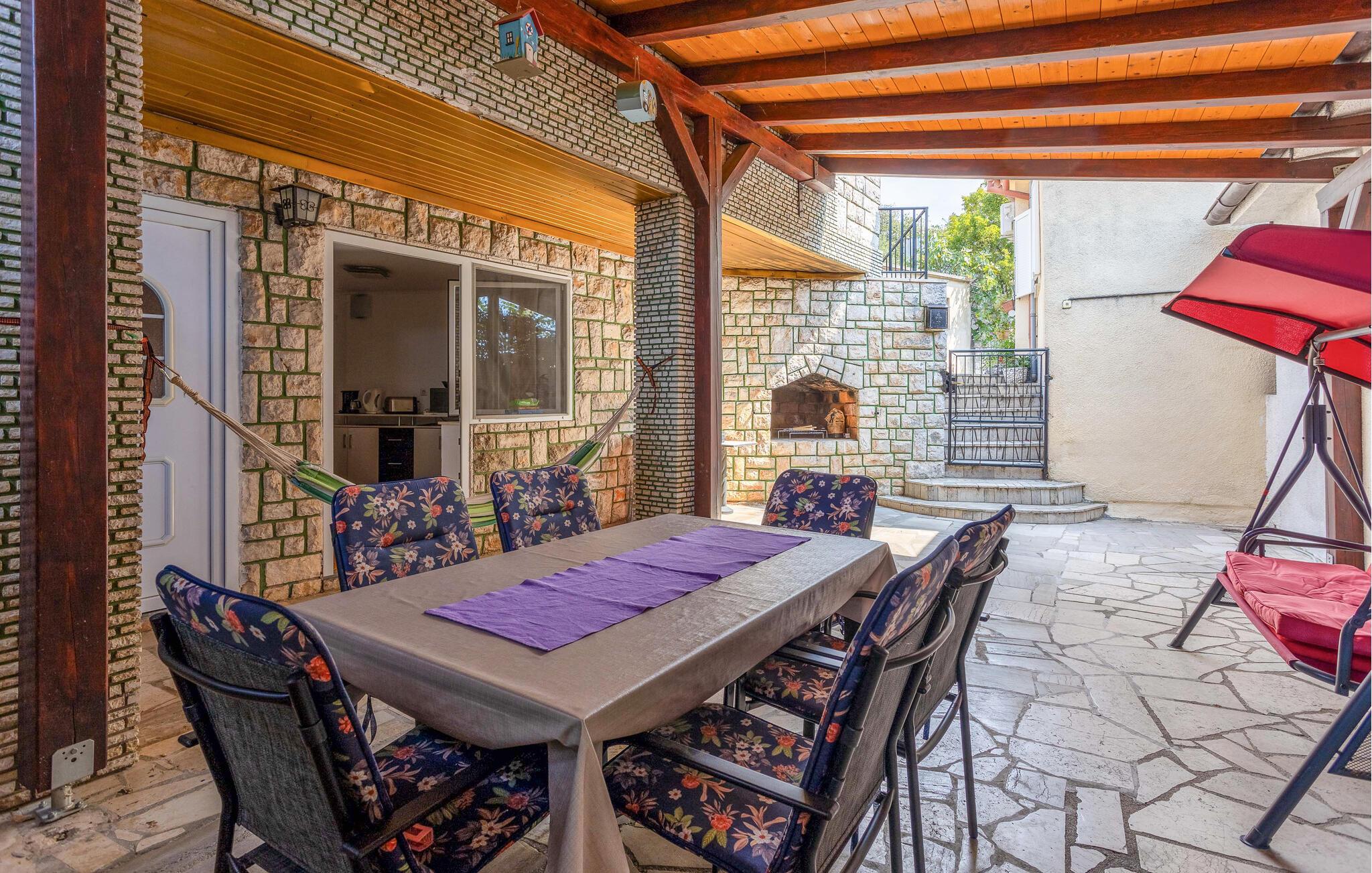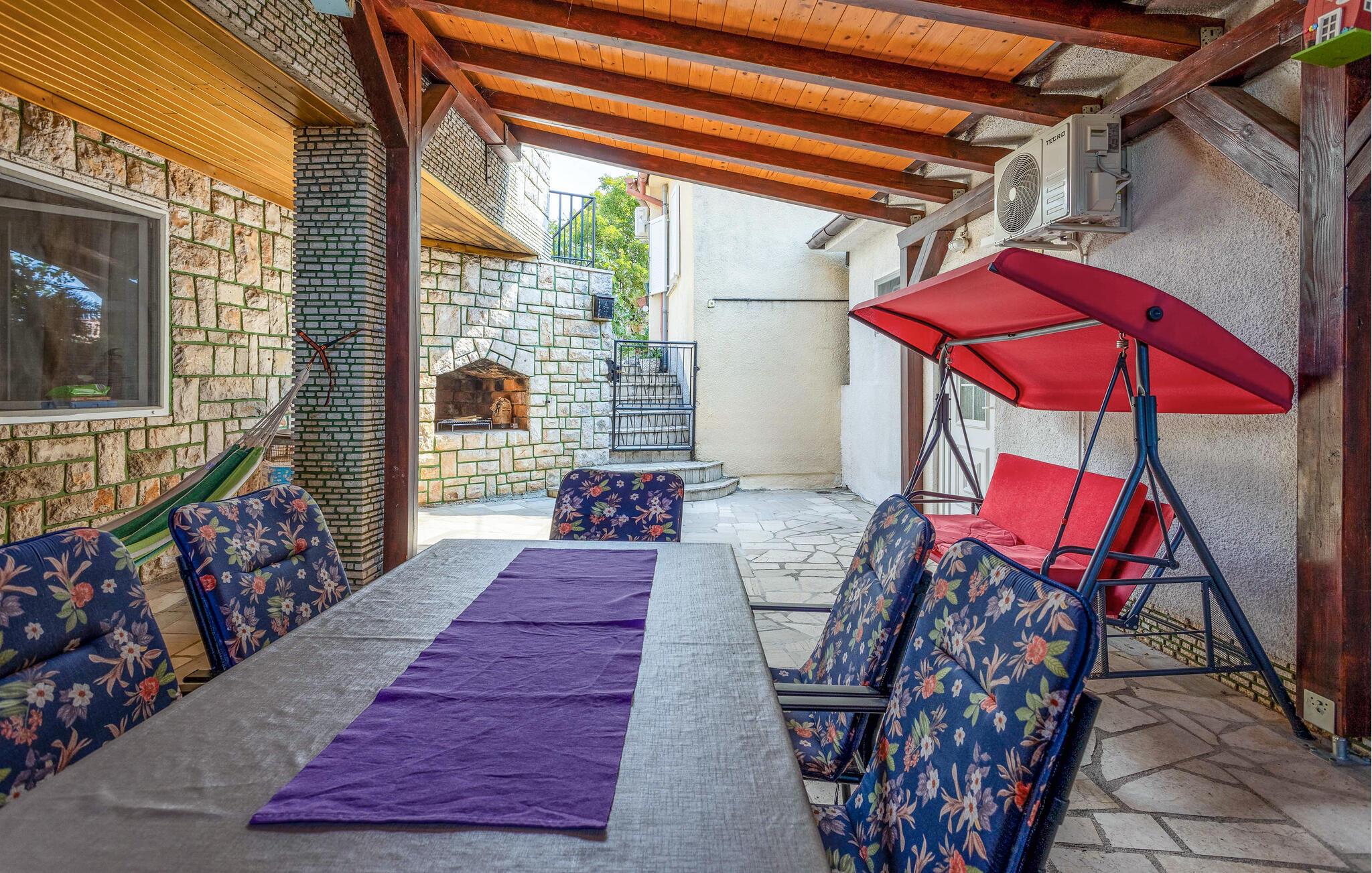 In Novi Vinodolski, in der Nähe des berühmten Crikvenica, gibt es diese einfach eingerichtete Ferienwohnung. Die Wohnung steht im Erdgeschoss und besteht aus zwei Teilen, die durch eine überdachte, großzügige und eingezäunte Terrasse verbunden sind. In einem Haus sind Schlafzimmer und Badezimmer untergebracht und in dem anderen befinden sich eine Küche und das Wohnzimmer. Zur Verfügung steht auch ein Steingrill. Von der Terrasse beim Schlafzimmerbereich bietet sich schöner Blick auf das Meer und die Stadt. In der Nähe gibt es viele Einrichtungen, die Spaß und aktiven Urlaub garantieren. Die Gegend ist sehr interessant, es gibt viel zu entdecken.