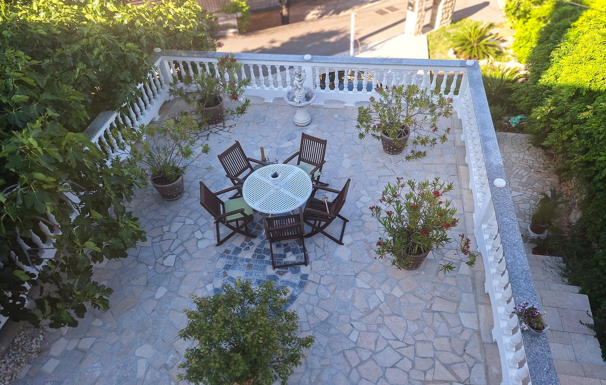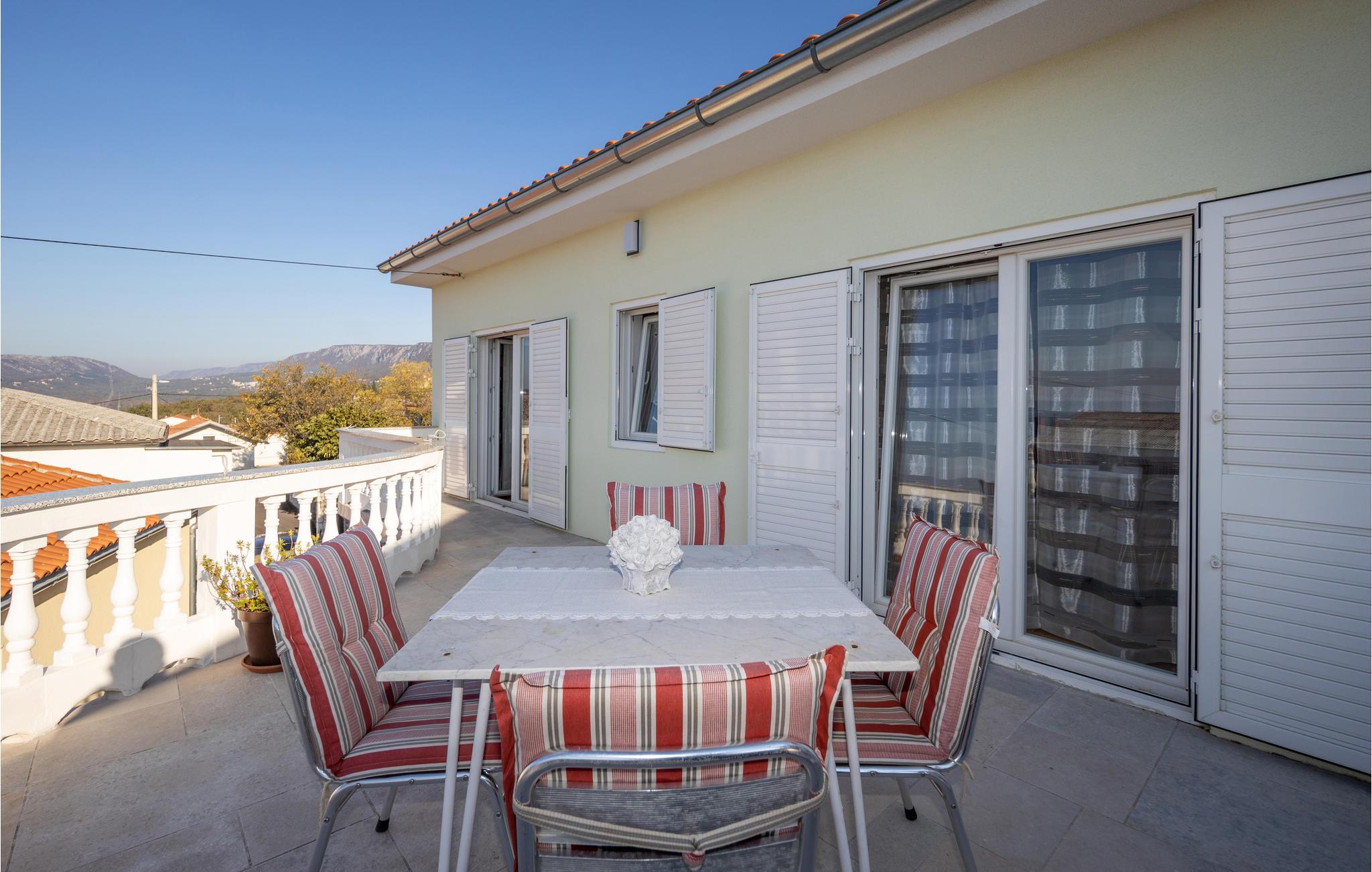 Eine Außentreppe verbindet die beiden Etagen. Von der oberen Etage haben Sie einen schönen Blick auf das Meer, die Landschaft und die Stadt Novi Vinodolski.