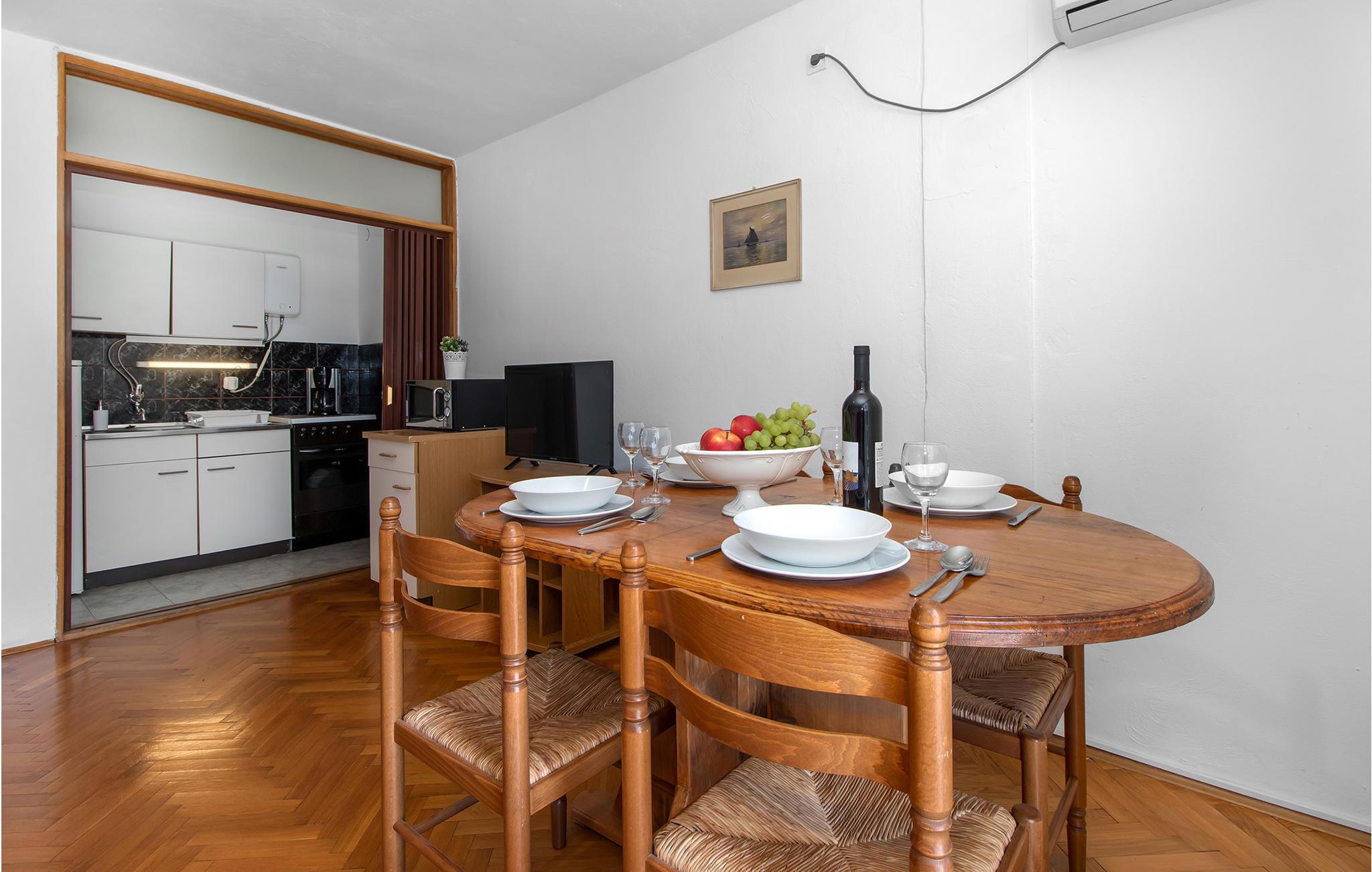 Willkommen in diesem bestens eingerichteten Apartment im 1. Stock eines Familien-Doppelhauses. Nachdem Sie Ihr Auto bequem auf dem Grundstück geparkt haben, betreten Sie Ihre eigenen vier Wände und lassen sich direkt vom fabelhaftem Blick über die ganze Bucht bis zur Insel Krk überzeugen. Hier genießen Sie Ihren Morgenkaffee vor herrlicher Szenerie, und können in aller Ruhe Pläne schmieden, was Sie mit Ihrer Urlaubszeit anfangen möchten. Die Einrichtung ist bequem und komfortabel, ideal für eine kleine Familien mit Kindern.