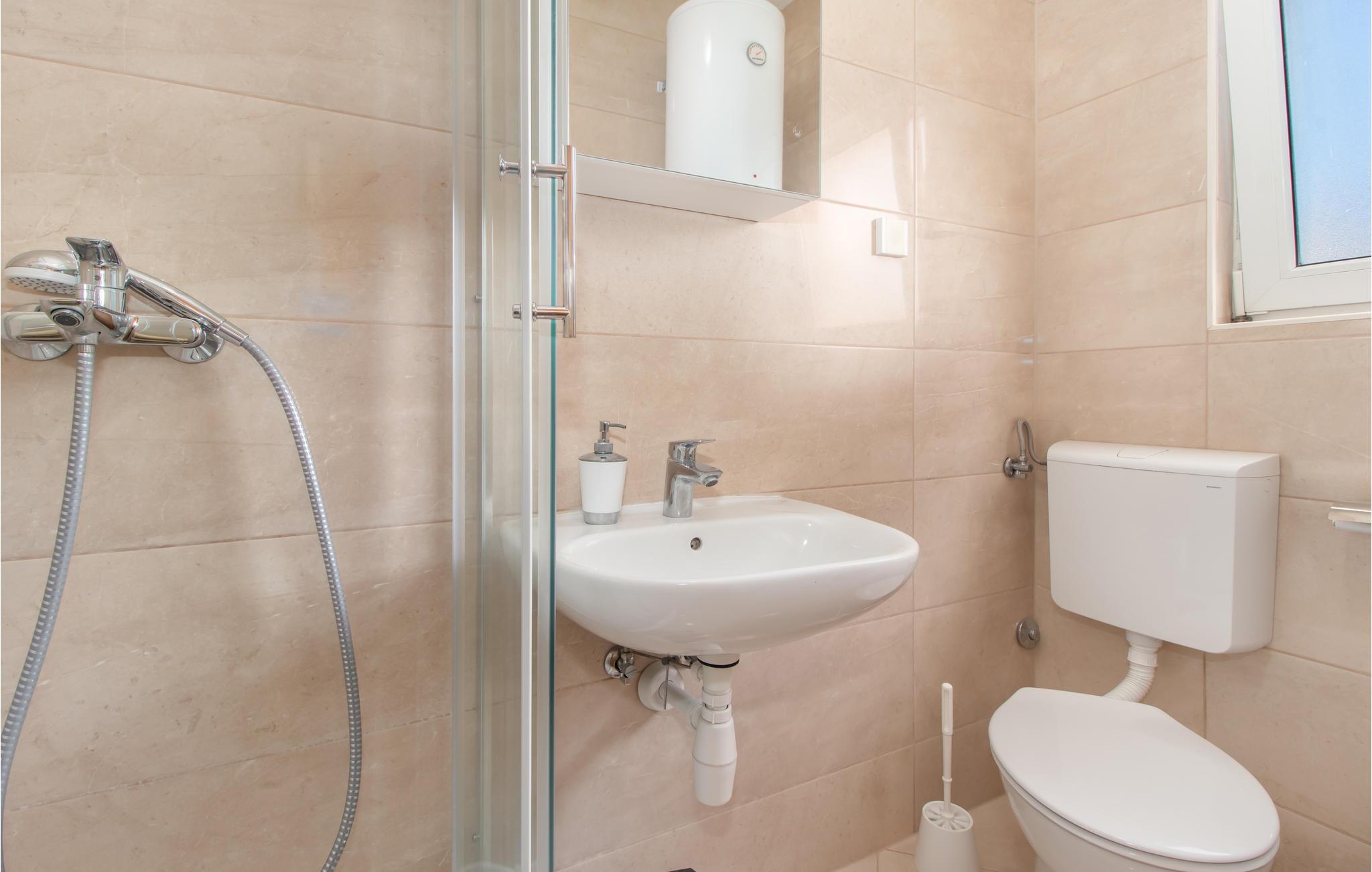 - WC mit warmem und kaltem Wasser, Dusche