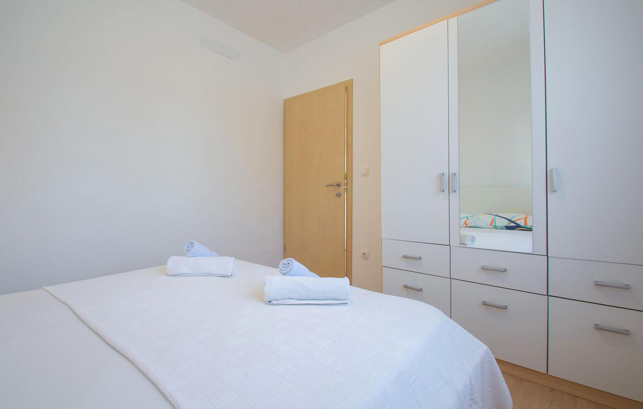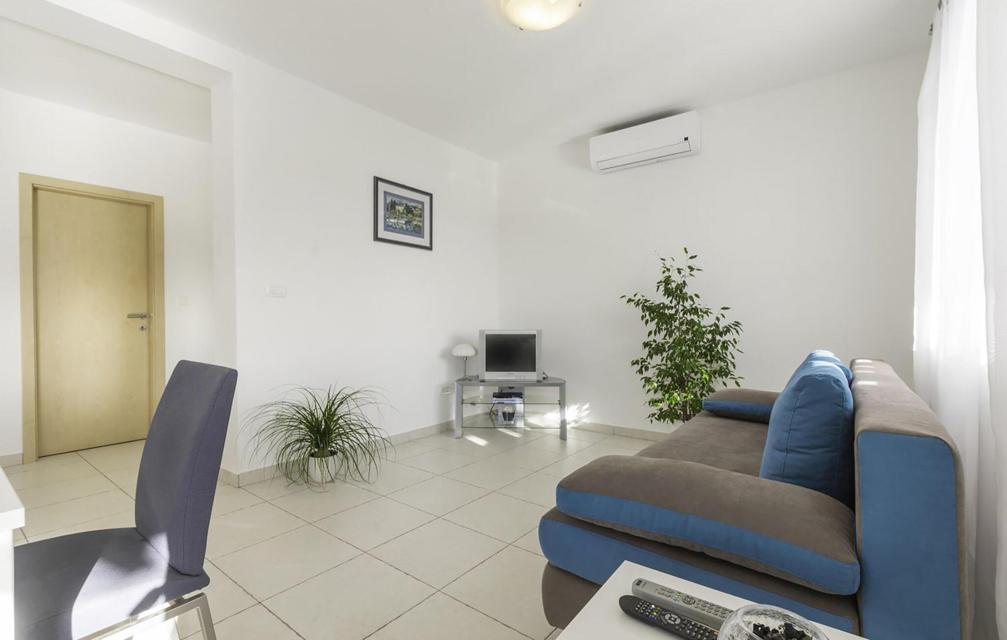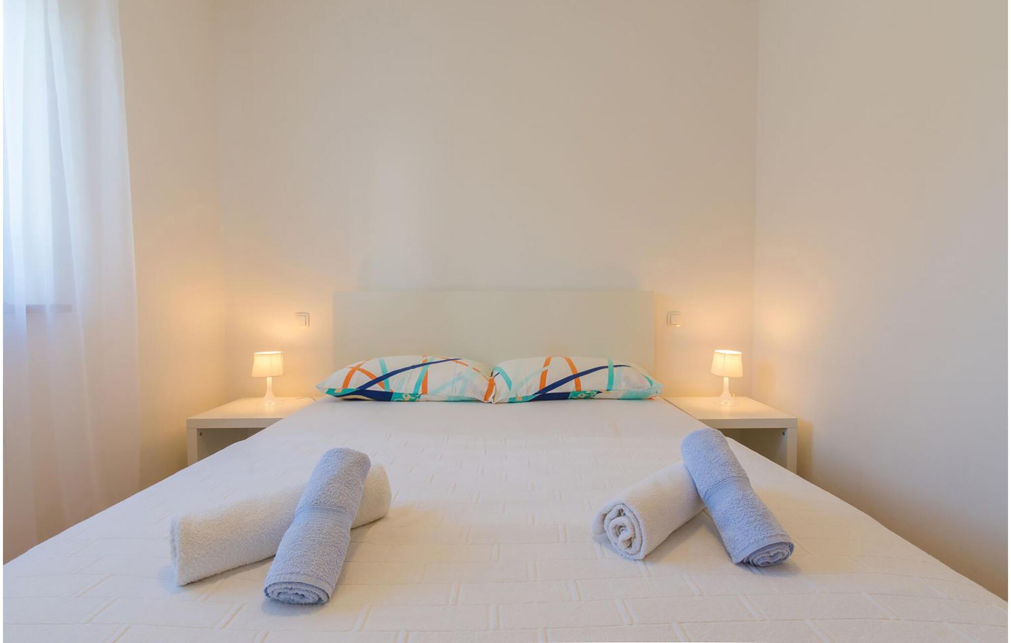 Diese helle Ferienwohnung begrüßt Sie mit einer modernen Wohnatmosphäre und liegt nur einen kurzen Spaziergang vom Strand entfernt. Freuen Sie sich auf entspannte Mahlzeiten am einladenden Esstisch, während die angenehme Meeresbrise durch die Räume zieht. Gönnen Sie sich nach einem langen Tag in der Sonne erholsame Siestas oder streamen Sie Ihre Lieblingsserie.