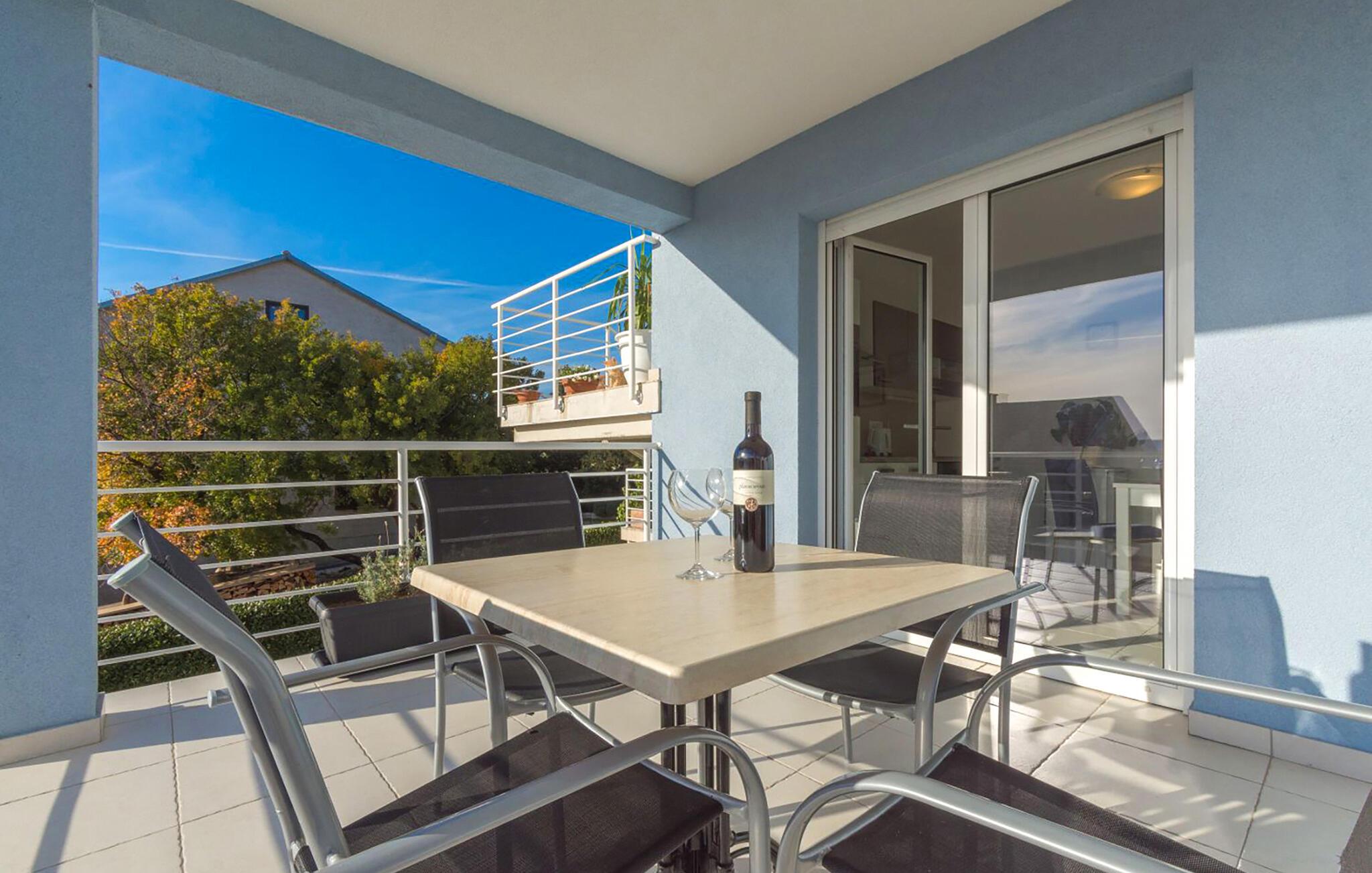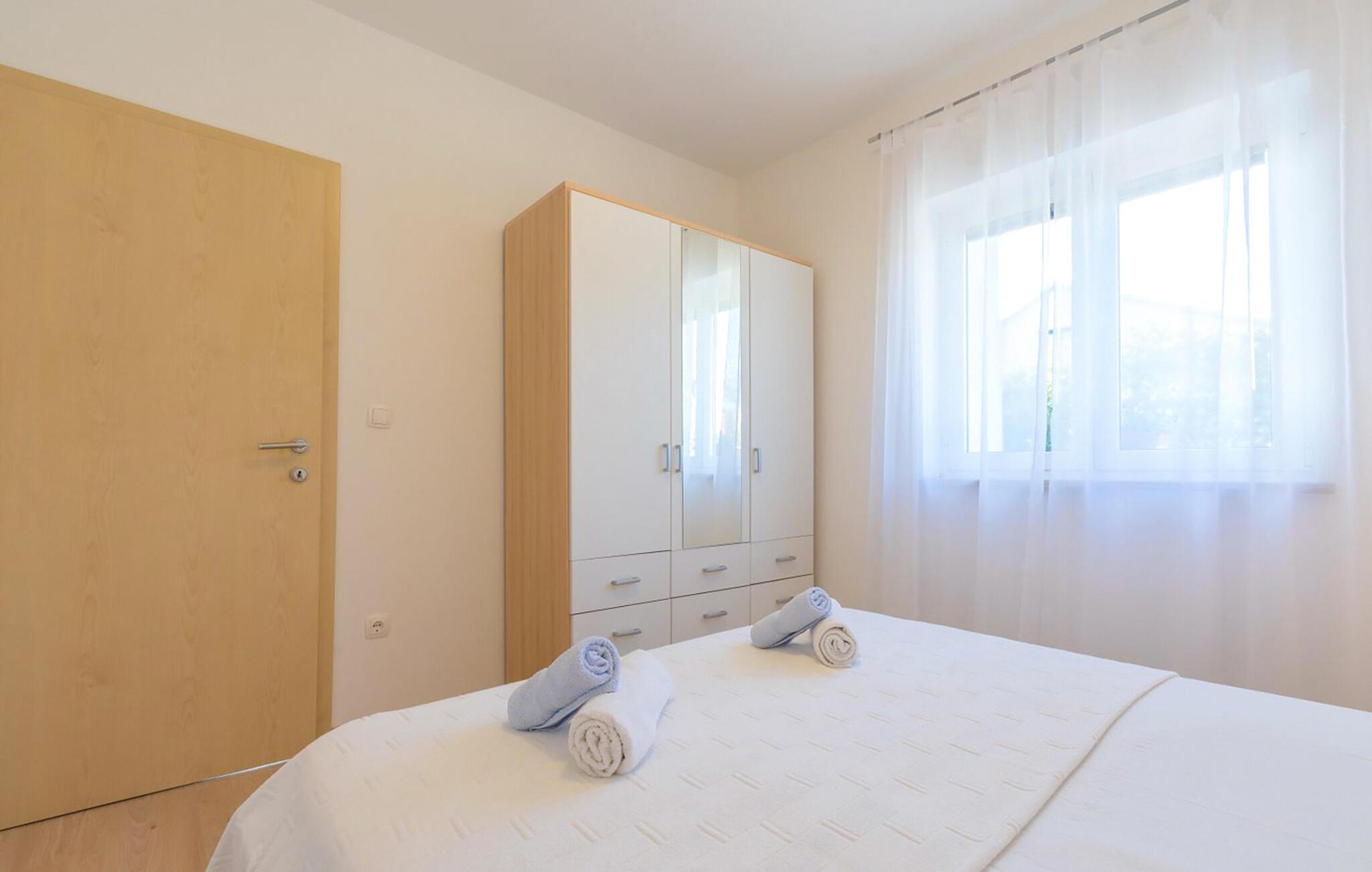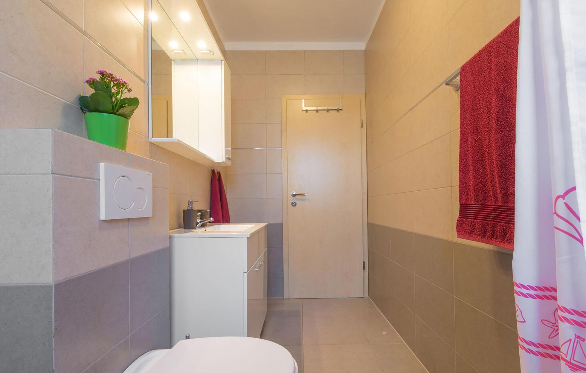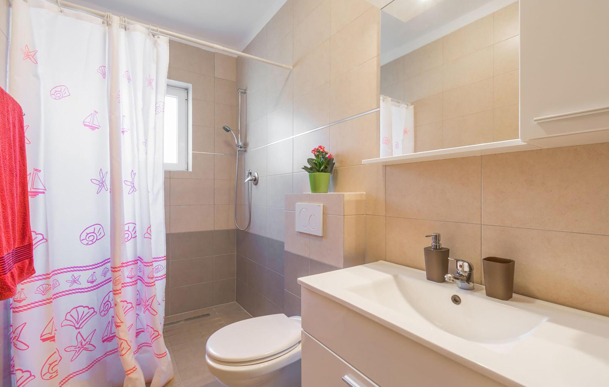 Diese helle Ferienwohnung begrüßt Sie mit einer modernen Wohnatmosphäre und liegt nur einen kurzen Spaziergang vom Strand entfernt. Freuen Sie sich auf entspannte Mahlzeiten am einladenden Esstisch, während die angenehme Meeresbrise durch die Räume zieht. Gönnen Sie sich nach einem langen Tag in der Sonne erholsame Siestas oder streamen Sie Ihre Lieblingsserie.