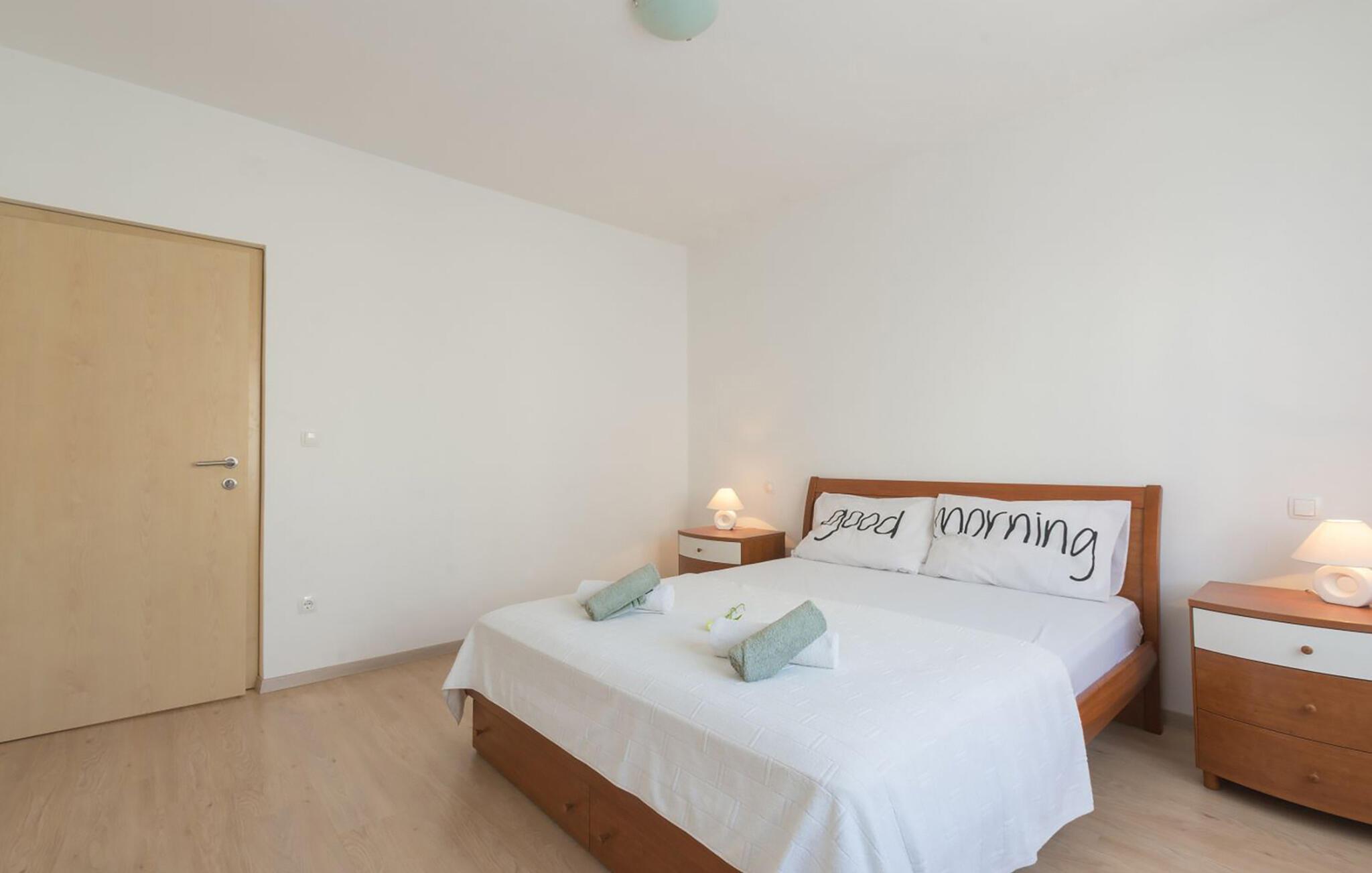 Diese helle Ferienwohnung begrüßt Sie mit einer frischen und einladenden Wohnatmosphäre und liegt nur einen kurzen Spaziergang vom Strand entfernt. Lassen Sie während erholsamer Siestas und harmonischer Mahlzeiten die angenehme Meeresbrise durch die Räume ziehen. Gönnen Sie sich nach einem langen Tag in der Sonne eine Pause oder streamen Sie Ihre Lieblingsserie.