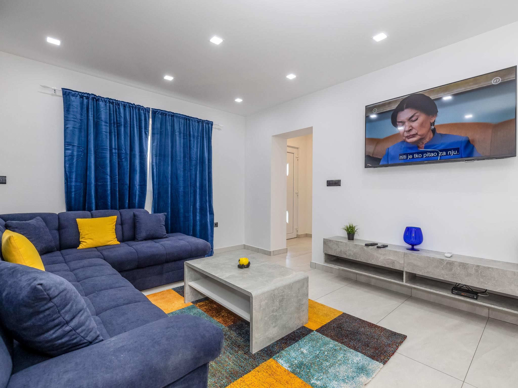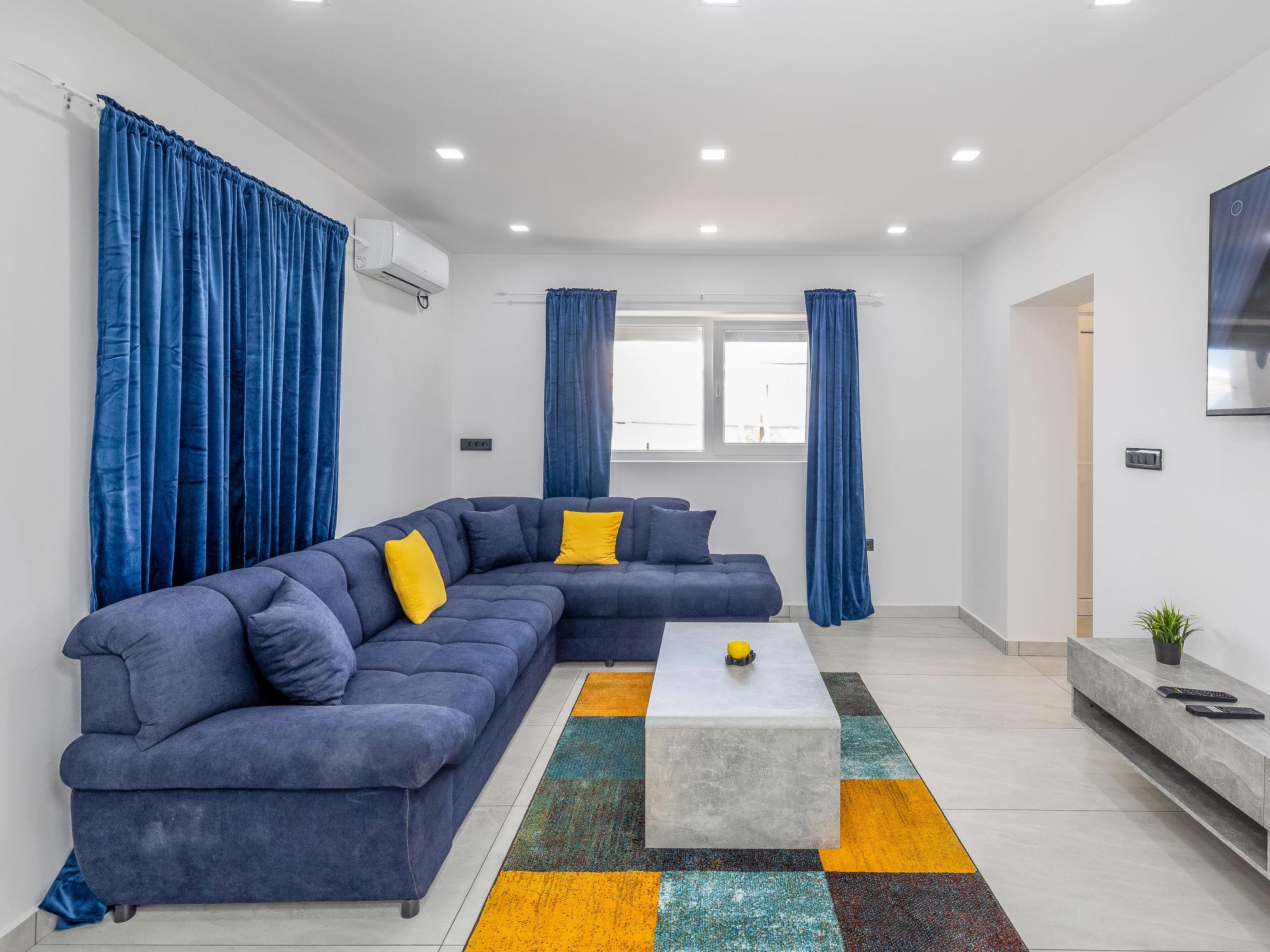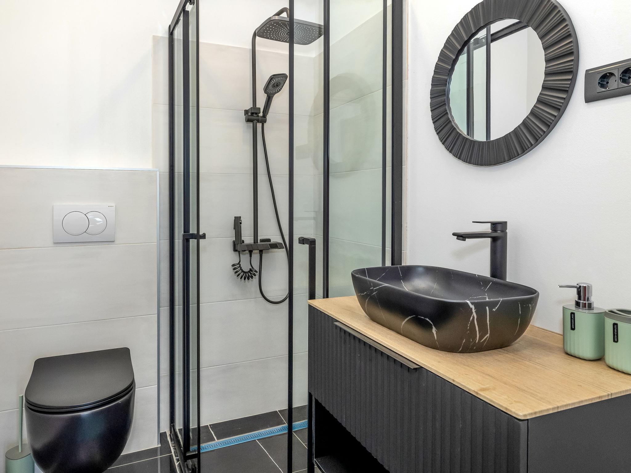 2-room apartment 54 m2, on the ground floor, south-west facing position. Fully renovated in 2024: living/dining room with 1 double sofabed (160 cm, length 200 cm), cable TV and air conditioning. Exit to the terrace. 1 room with 1 double bed (2 x 80 cm, length 200 cm). Open kitchen (4 hot plates, dishwasher, toaster, kettle, freezer). Shower/WC. Forced-air heating. Heating available only from 01.10. to 01.05. Terrace 40 m2. Terrace furniture. Beautiful view of the sea. Facilities: Internet (WiFi, free). Parking at the house.