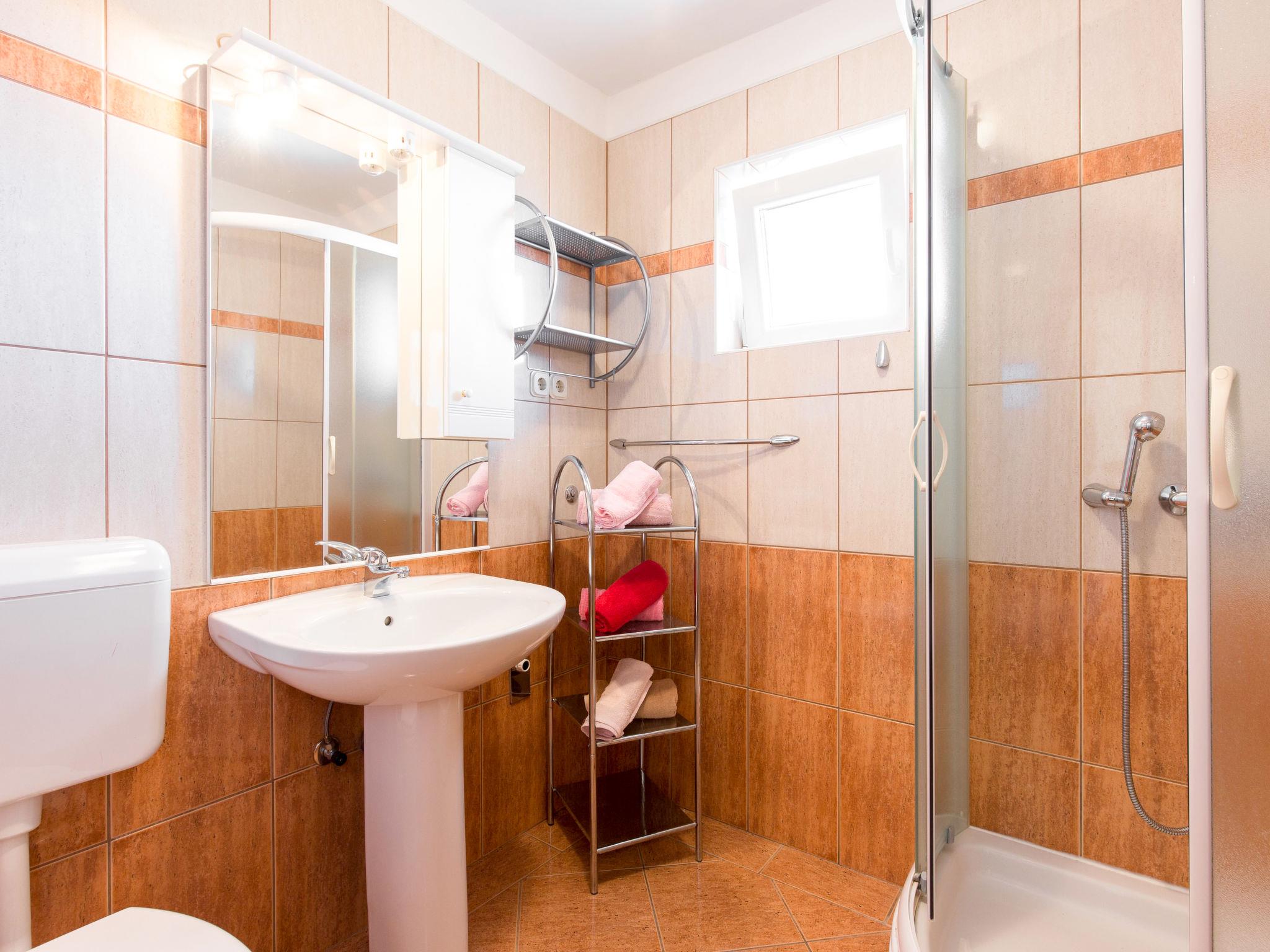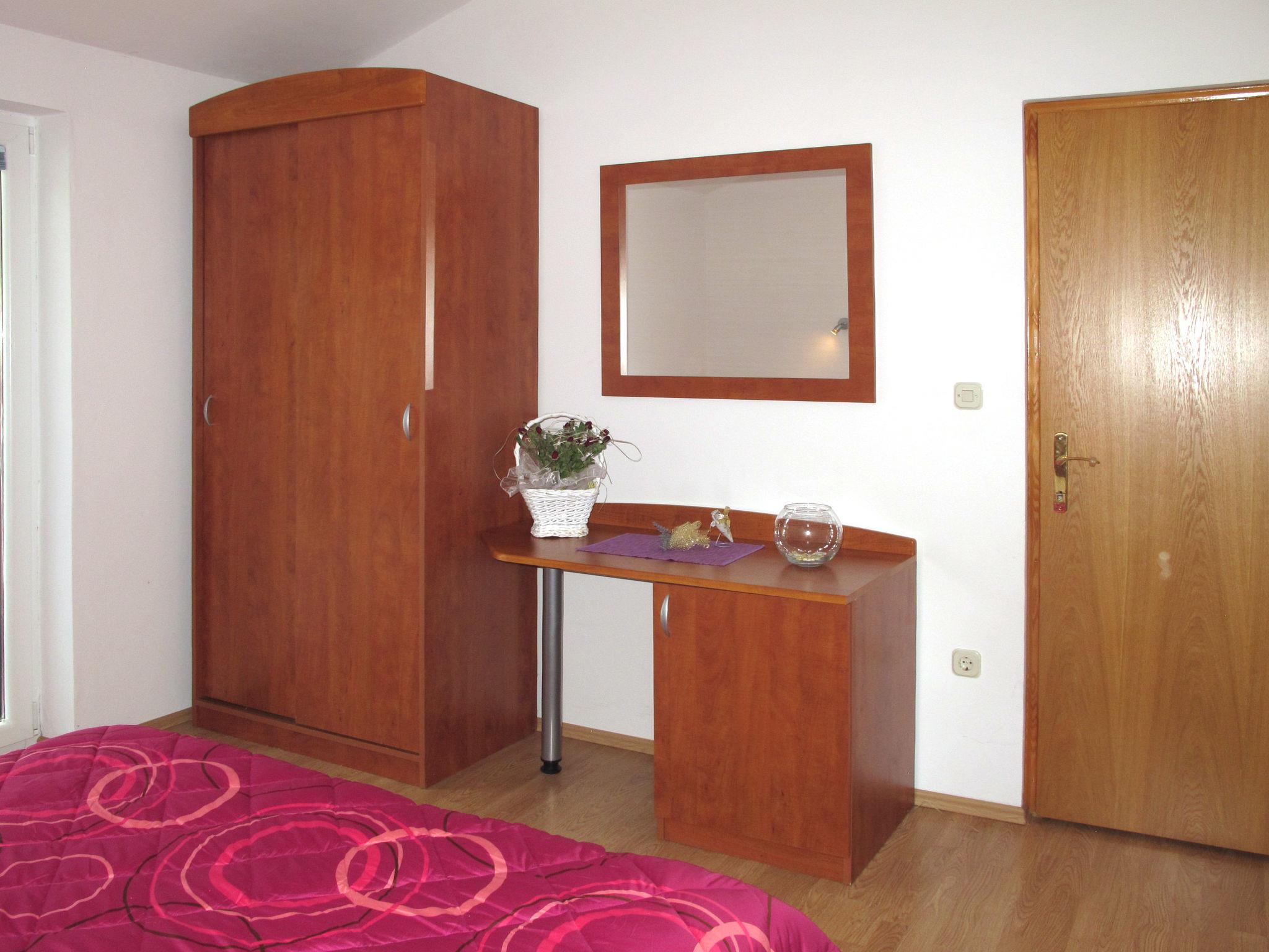 "Valentina", 3-room apartment 60 m2 on 2nd floor. Living/dining room with satellite TV and air conditioning. Exit to the balcony. 1 room with 1 double bed (2 x 90 cm, length 200 cm). Exit to the terrace. 1 room with 1 double bed (2 x 80 cm, length 200 cm). Exit to the balcony. Open kitchen (2 hot plates, toaster, kettle, microwave, electric coffee machine). Shower/WC. Air-conditioning (extra). No heating option. Balcony 6 m2, balcony 4 m2, terrace 25 m2. Terrace furniture, balcony furniture, barbecue, deck chairs (2). View of the sea. Facilities: Internet (WiFi, free). Please note: non-smoking house.