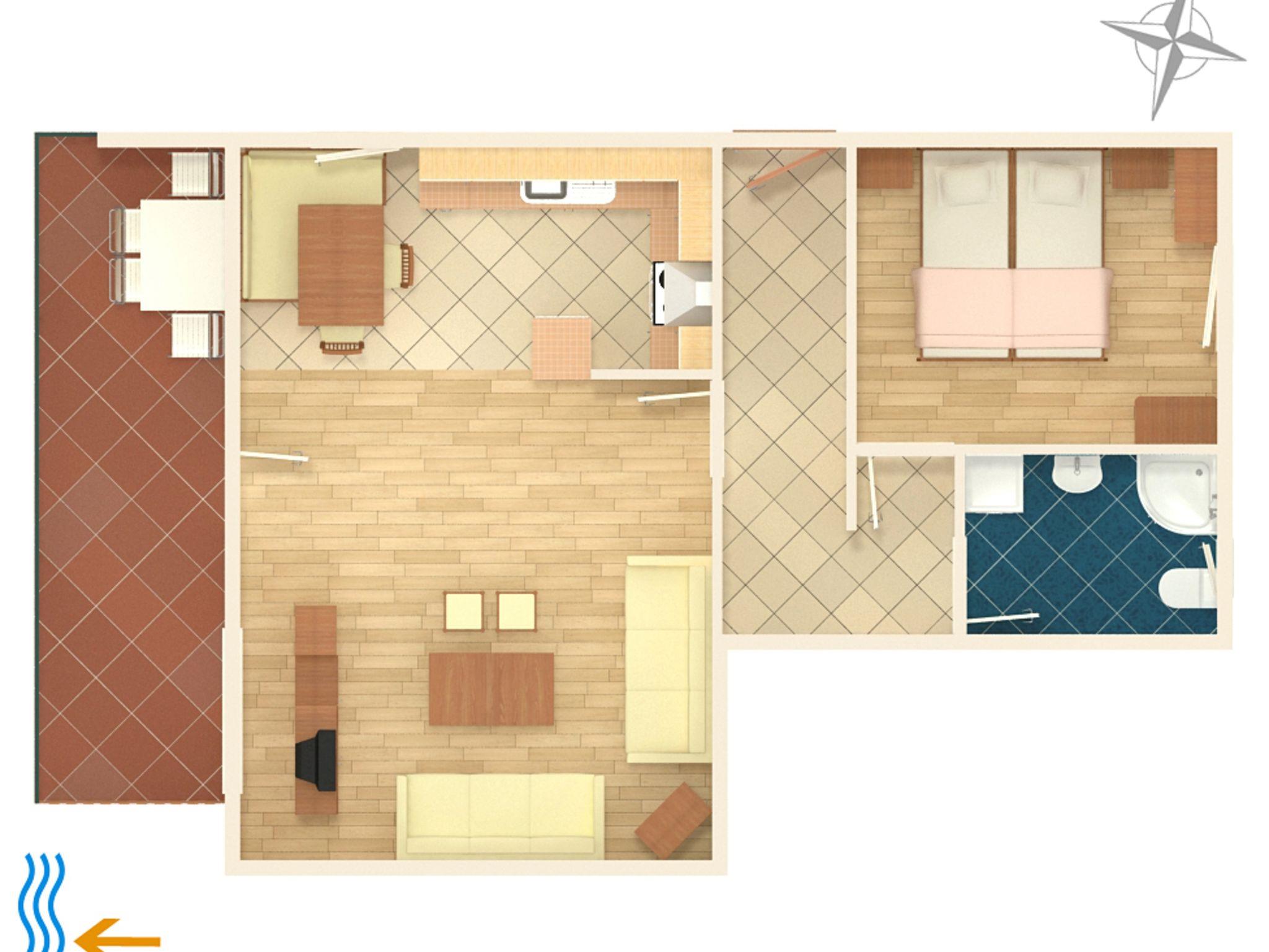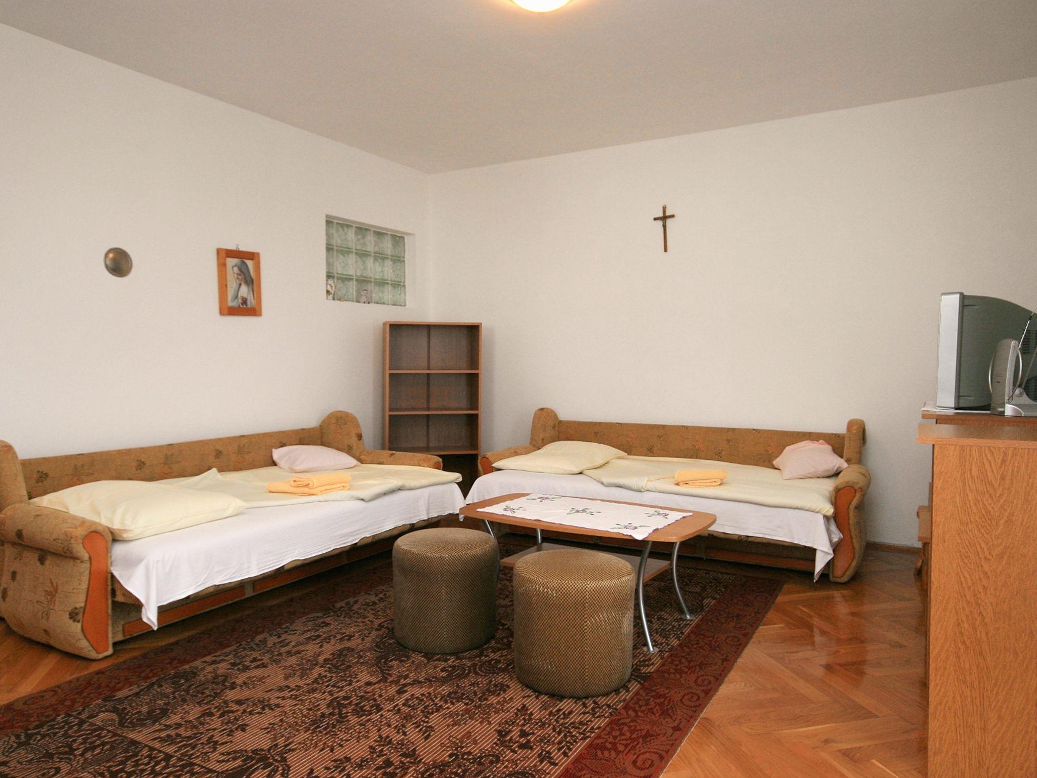 Ferienwohnung bietet Platz für 4 Gäste. Die Betten sind in Schlafzimmern, die es 1 gibt, und in Wohnzimmer, innerhalb einer Gesamtfläche von 49m2, angeordnet. Die Gäste haben einen eigenen Balkon zur Verfügung, auf der sie in warmen Sommernächten genießen können. Das Apartment bietet Meerblick. Es ist erlaubt, Speisen auf dem Gemeinschafts-Grill vorzubereiten. IM PREIS INBEGRIFFEN: Kurtaxe, Endreinigung, Klimatisierung, Parkplatz, Internet, Kinderbett, Bügeleisen, Föhn, tragbarer Grill. VERBINDLICHE ZUSÄTZLICHE KOSTEN: Aufzahlung für Kurzaufenthalte (prozentualer Zuschlag pro Nächtigungsanzahl: 30% - 1, 20% - 2, 10% - 3). Die Verfügbarkeit zusätzlicher Dienstleistungen in Ihrem reservierten Termin und die Preise derselben (falls nicht aufgeführt) müssen im Voraus überprüft werden. Zusätzliche Dienstleistungen die in der Zahlungsaufforderung nicht aufgeführt sind werden direkt beim Vermieter bezahlt, angenommen der Gast nutzt auch diese. Ermäßigung auf den Grundpreis: Gratistag 14=13 (bei einem Aufenthalt von 14 Tagen oder mehr erhalten Sie einen Gratistag für den Aufenthalt bis 31.12.26).