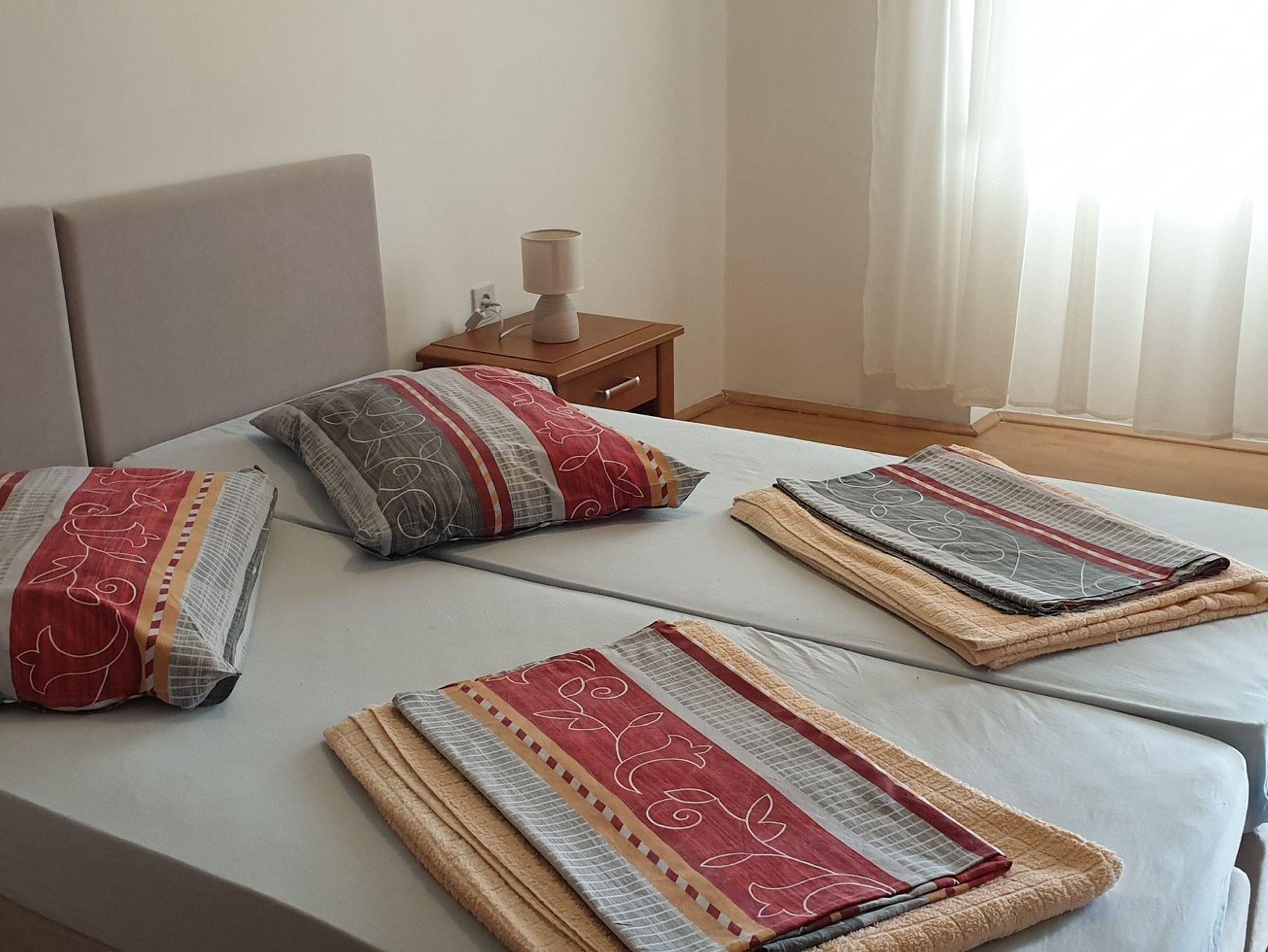 Ferienwohnung bietet Platz für 4 Gäste. Die Betten sind in Schlafzimmern, die es 2 gibt, innerhalb einer Gesamtfläche von 62m2, angeordnet. Die Gäste haben eine eigene Terrasse zur Verfügung, auf der sie in warmen Sommernächten genießen können. Das Apartment bietet Meerblick. Es ist erlaubt, Speisen auf dem Gemeinschafts-Grill vorzubereiten. In der Unterkunftseinheit besteht die Möglichkeit des Mitbringens von Haustieren gegen Aufpreis. IM PREIS INBEGRIFFEN: Kurtaxe, Endreinigung, Klimatisierung, Parkplatz, Internet, tragbarer Grill. VERBINDLICHE ZUSÄTZLICHE KOSTEN: Aufzahlung für Kurzaufenthalte (prozentualer Zuschlag pro Nächtigungsanzahl: 30% - 1, 20% - 2, 10% - 3). UNVERBINDLICHE ZUSÄTZLICHE KOSTEN: Haustiere (5,00 € pro Nacht). Die Verfügbarkeit zusätzlicher Dienstleistungen in Ihrem reservierten Termin und die Preise derselben (falls nicht aufgeführt) müssen im Voraus überprüft werden. Zusätzliche Dienstleistungen die in der Zahlungsaufforderung nicht aufgeführt sind werden direkt beim Vermieter bezahlt, angenommen der Gast nutzt auch diese.