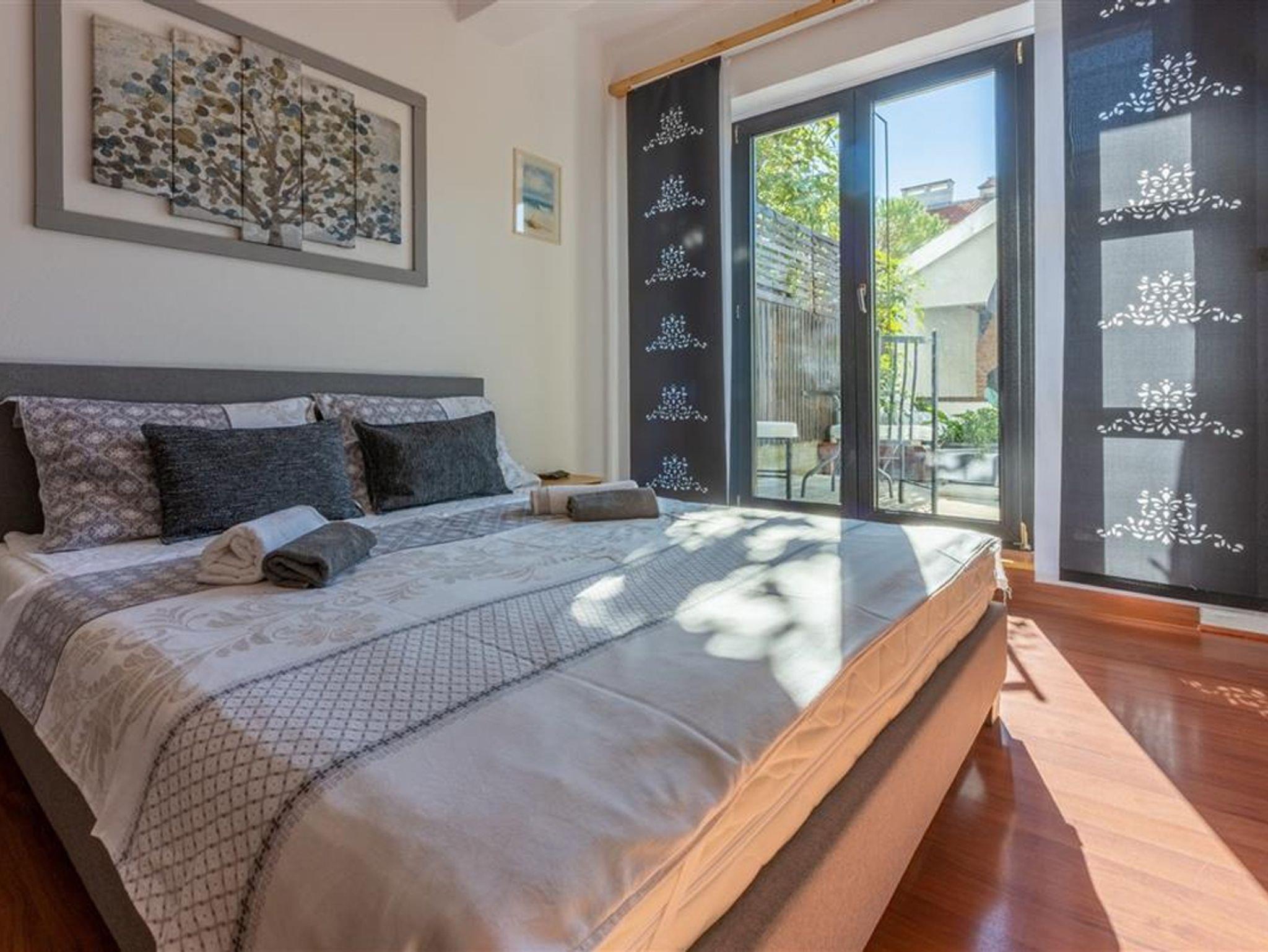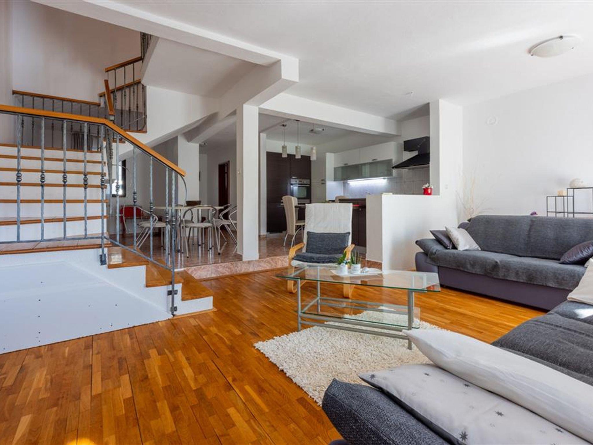 Haus bietet Platz für 12 Gäste. Die Betten sind in Schlafzimmern, die es 5 gibt, und in Wohnzimmer, innerhalb einer Gesamtfläche von 177m2, angeordnet. Die Gäste haben eine eigene Terrasse zur Verfügung, auf der sie in warmen Sommernächten genießen können. Das Haus bietet Meerblick. Für vollen Genuss und Entspannung gibt es einen privaten Grill für Gäste dieser Unterkunft. In der Unterkunftseinheit besteht die Möglichkeit des Mitbringens von Haustieren gegen Aufpreis. IM PREIS INBEGRIFFEN: Kurtaxe, Endreinigung, Parkplatz, Internet, Bügelbrett, Föhn. UNVERBINDLICHE ZUSÄTZLICHE KOSTEN: Klimatisierung (15,00 € pro Nacht), Haustiere (5,00 € pro Nacht). Die Verfügbarkeit zusätzlicher Dienstleistungen in Ihrem reservierten Termin und die Preise derselben (falls nicht aufgeführt) müssen im Voraus überprüft werden. Zusätzliche Dienstleistungen die in der Zahlungsaufforderung nicht aufgeführt sind werden direkt beim Vermieter bezahlt, angenommen der Gast nutzt auch diese.