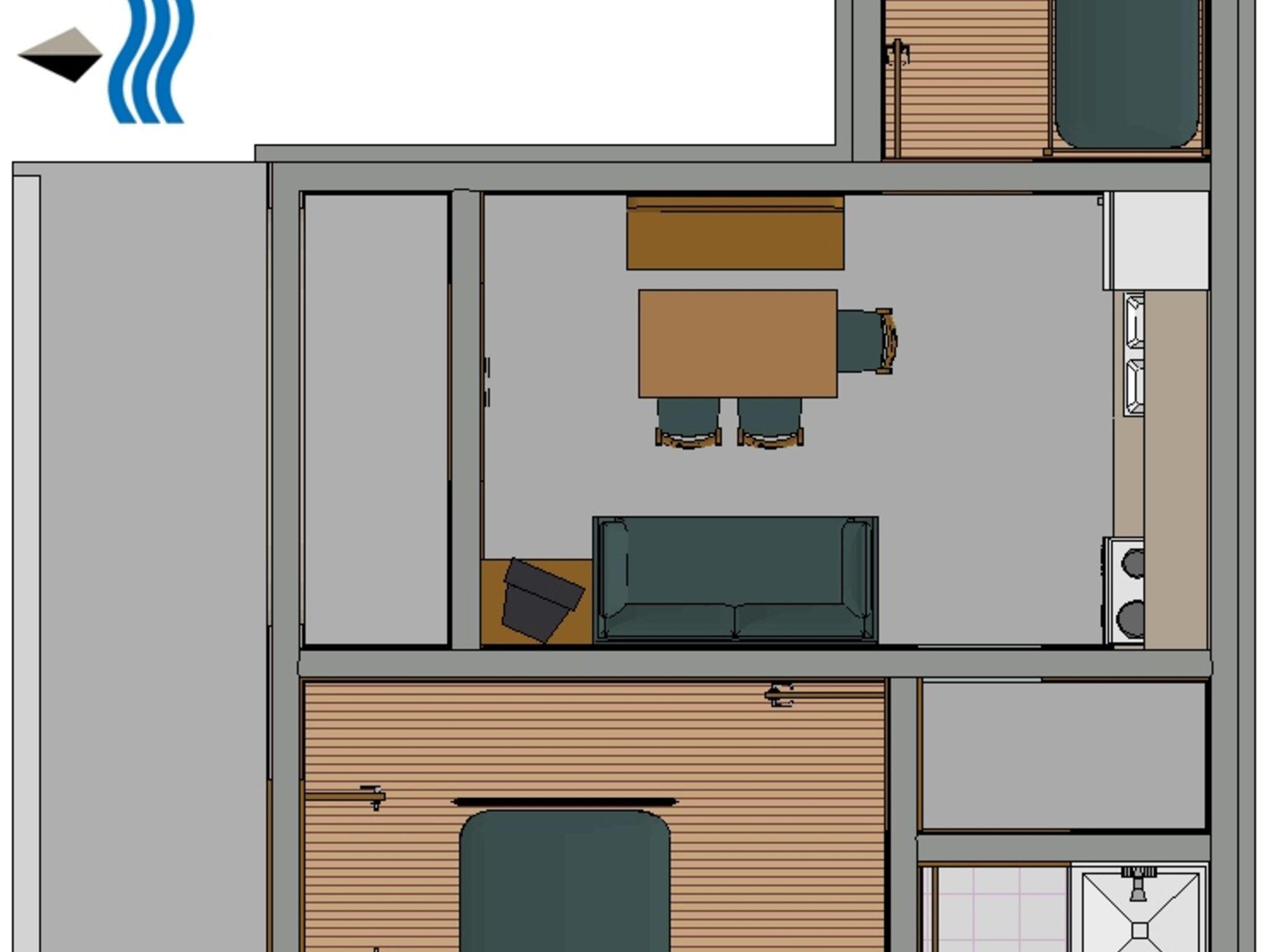 Ferienwohnung bietet Platz für 6 Gäste. Die Betten sind in Schlafzimmern, die es 2 gibt, und in Esszimmer, innerhalb einer Gesamtfläche von 36m2, angeordnet. Die Gäste haben eine eigene Terrasse zur Verfügung, auf der sie in warmen Sommernächten genießen können. Es ist erlaubt, Speisen auf dem Gemeinschafts-Grill vorzubereiten. In der Unterkunftseinheit besteht die Möglichkeit des Mitbringens von Haustieren gegen Aufpreis. IM PREIS INBEGRIFFEN: Kurtaxe, Endreinigung, Parkplatz, Internet, Bügeleisen, Bügelbrett, Föhn. VERBINDLICHE ZUSÄTZLICHE KOSTEN: Aufzahlung für Kurzaufenthalte (prozentualer Zuschlag pro Nächtigungsanzahl: 30% - 1, 20% - 2, 10% - 3). UNVERBINDLICHE ZUSÄTZLICHE KOSTEN: Klimatisierung (10,00 € pro Nacht), Wäschewaschen (10,00 € Waschen), Haustiere (15,00 € pro Nacht). Die Verfügbarkeit zusätzlicher Dienstleistungen in Ihrem reservierten Termin und die Preise derselben (falls nicht aufgeführt) müssen im Voraus überprüft werden. Zusätzliche Dienstleistungen die in der Zahlungsaufforderung nicht aufgeführt sind werden direkt beim Vermieter bezahlt, angenommen der Gast nutzt auch diese. Ermäßigung auf den Grundpreis: Gratistag 21=19 (bei einem Aufenthalt von 21 Tagen oder mehr erhalten Sie 2 Gratistage für den Aufenthalt bis 31.12.26).