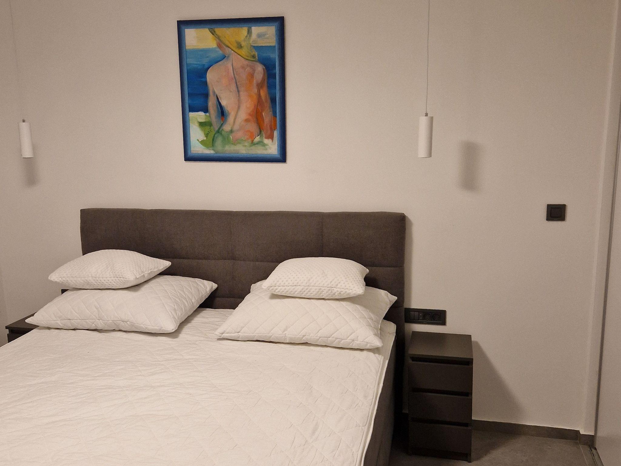 Ferienwohnung bietet Platz für 4 Gäste. Die Betten sind in Schlafzimmern, die es 2 gibt, innerhalb einer Gesamtfläche von 88m2, angeordnet. Die Gäste haben eine eigene Terrasse zur Verfügung, auf der sie in warmen Sommernächten genießen können. Das Apartment bietet Meerblick. Es ist erlaubt, Speisen auf dem Gemeinschafts-Grill vorzubereiten. IM PREIS INBEGRIFFEN: Kurtaxe, Endreinigung, Klimatisierung, Parkplatz, Internet, Kinderbett, Bügeleisen, Bügelbrett, Föhn, tragbarer Grill. Die Verfügbarkeit zusätzlicher Dienstleistungen in Ihrem reservierten Termin und die Preise derselben (falls nicht aufgeführt) müssen im Voraus überprüft werden. Zusätzliche Dienstleistungen die in der Zahlungsaufforderung nicht aufgeführt sind werden direkt beim Vermieter bezahlt, angenommen der Gast nutzt auch diese.