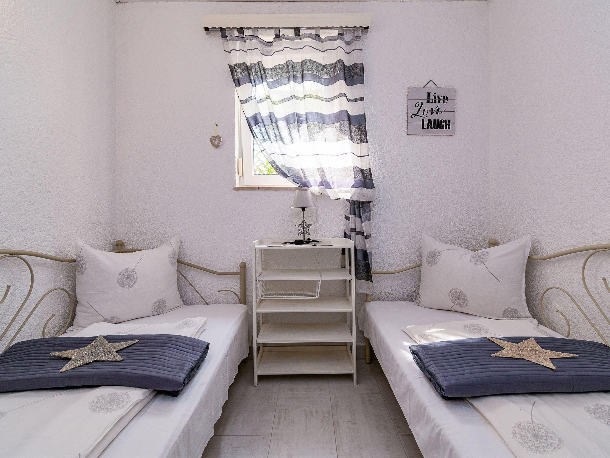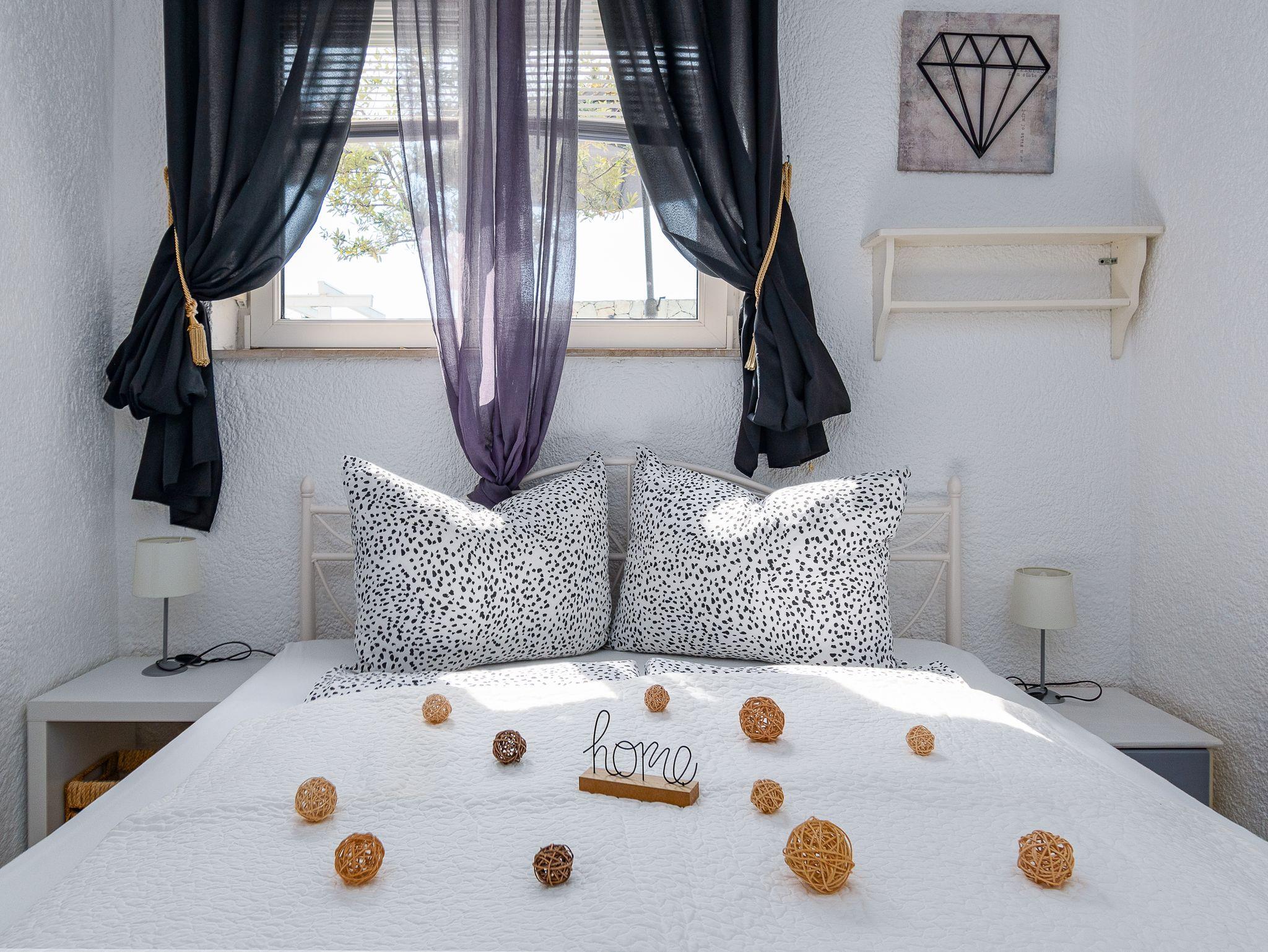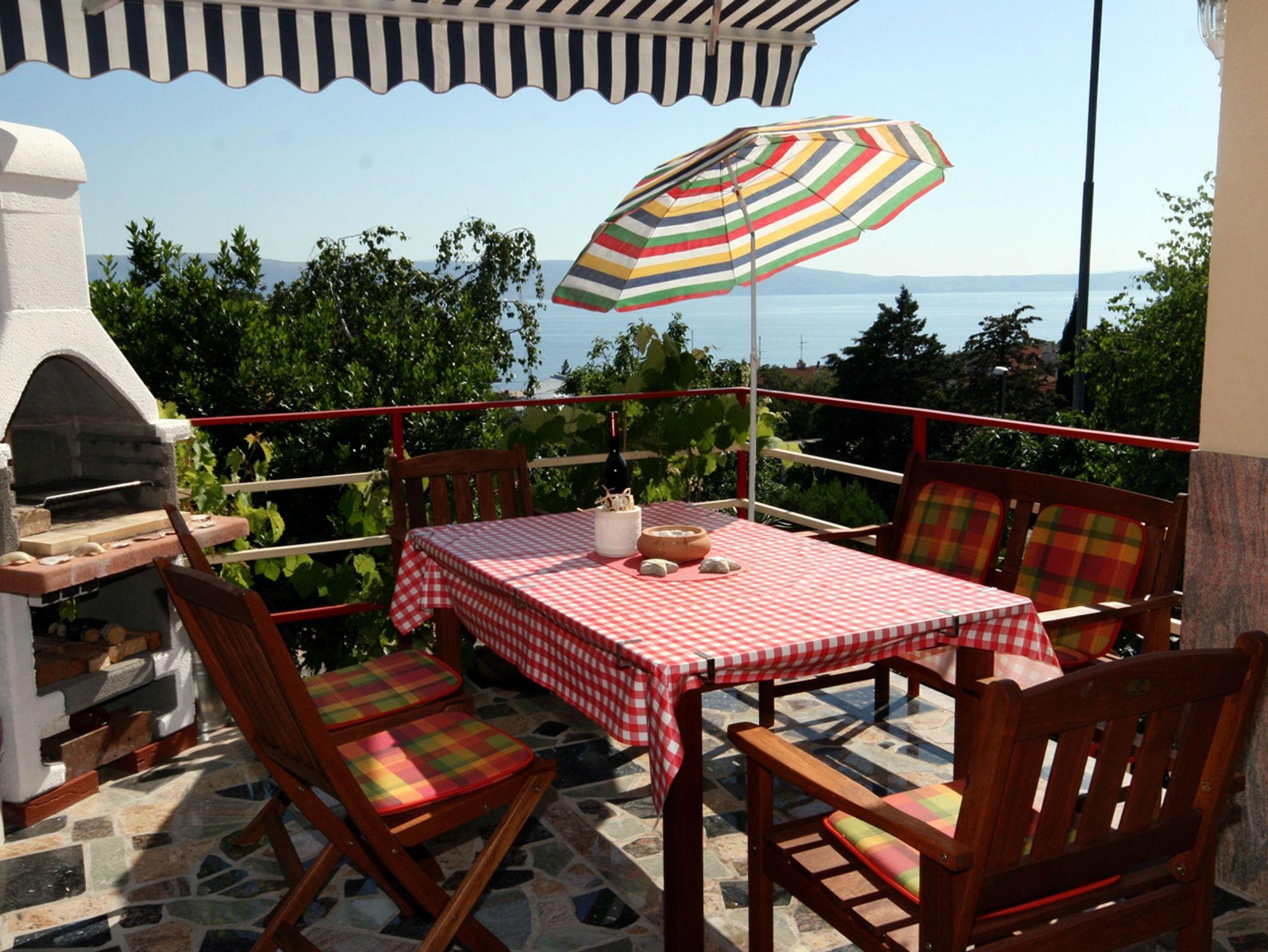 Ferienwohnung bietet Platz für 5 Gäste. Die Betten sind in Schlafzimmern, die es 2 gibt, und in Esszimmer, innerhalb einer Gesamtfläche von 49m2, angeordnet. Die Gäste haben eine eigene Terrasse zur Verfügung, auf der sie in warmen Sommernächten genießen können. Das Apartment bietet Meerblick. Für vollen Genuss und Entspannung gibt es einen privaten Grill für Gäste dieser Unterkunft. Während ihres Aufenthalts können Gäste das gemeinsam zur Nutzung stehende Schwimmbad benutzen. Durch die Terrasse der gebuchten Unterkunftseinheit gehen auch andere Gäste oder Vermieter. Unterkunftseinheit hat Räume, die von dem Rest der Einheit abgetrennt werden. IM PREIS INBEGRIFFEN: Kurtaxe, Endreinigung, Klimatisierung, Pool, Parkplatz, Internet. Die Verfügbarkeit zusätzlicher Dienstleistungen in Ihrem reservierten Termin und die Preise derselben (falls nicht aufgeführt) müssen im Voraus überprüft werden. Zusätzliche Dienstleistungen die in der Zahlungsaufforderung nicht aufgeführt sind werden direkt beim Vermieter bezahlt, angenommen der Gast nutzt auch diese.