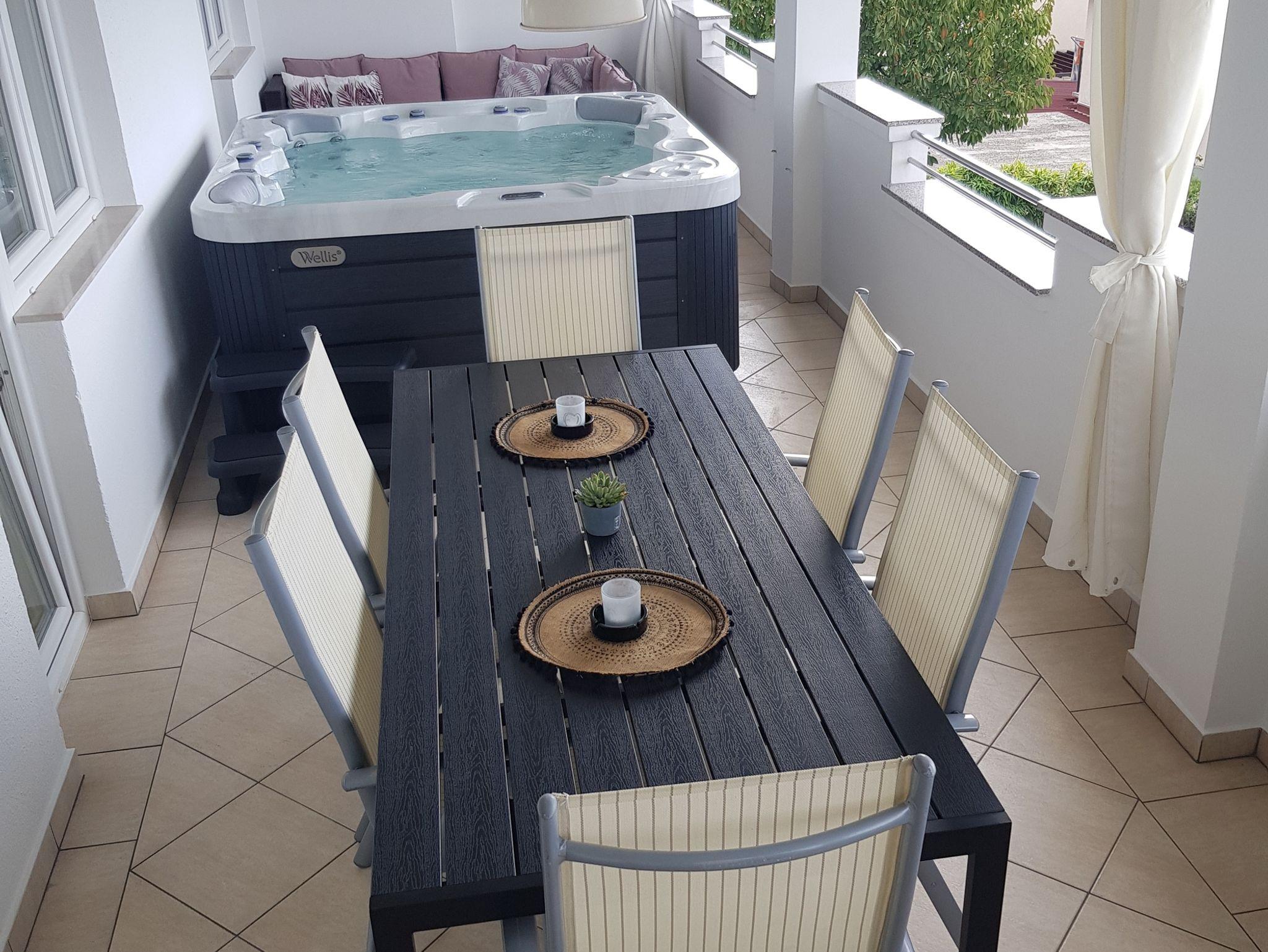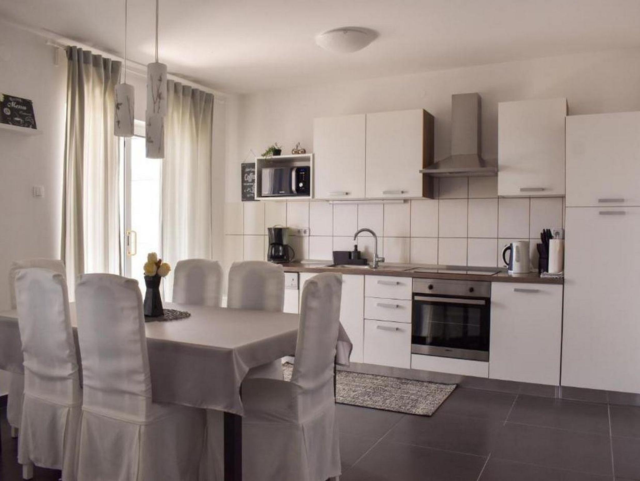 Ferienwohnung bietet Platz für 4 Gäste. Die Betten sind in Schlafzimmern, die es 2 gibt, innerhalb einer Gesamtfläche von 75m2, angeordnet. Die Gäste haben eine eigene Terrasse zur Verfügung, auf der sie in warmen Sommernächten genießen können. Das Apartment bietet Meerblick. Es ist erlaubt, Speisen auf dem Gemeinschafts-Grill vorzubereiten. IM PREIS INBEGRIFFEN: Kurtaxe, Endreinigung, Parkplatz, Internet, Wäschewaschen, Kinderbett, Bügeleisen, Bügelbrett, Föhn. VERBINDLICHE ZUSÄTZLICHE KOSTEN: Aufzahlung für Kurzaufenthalte (prozentualer Zuschlag pro Nächtigungsanzahl: 30% - 1, 20% - 2, 10% - 3). UNVERBINDLICHE ZUSÄTZLICHE KOSTEN: Klimatisierung (21,00 € pro Nacht). Die Verfügbarkeit zusätzlicher Dienstleistungen in Ihrem reservierten Termin und die Preise derselben (falls nicht aufgeführt) müssen im Voraus überprüft werden. Zusätzliche Dienstleistungen die in der Zahlungsaufforderung nicht aufgeführt sind werden direkt beim Vermieter bezahlt, angenommen der Gast nutzt auch diese.