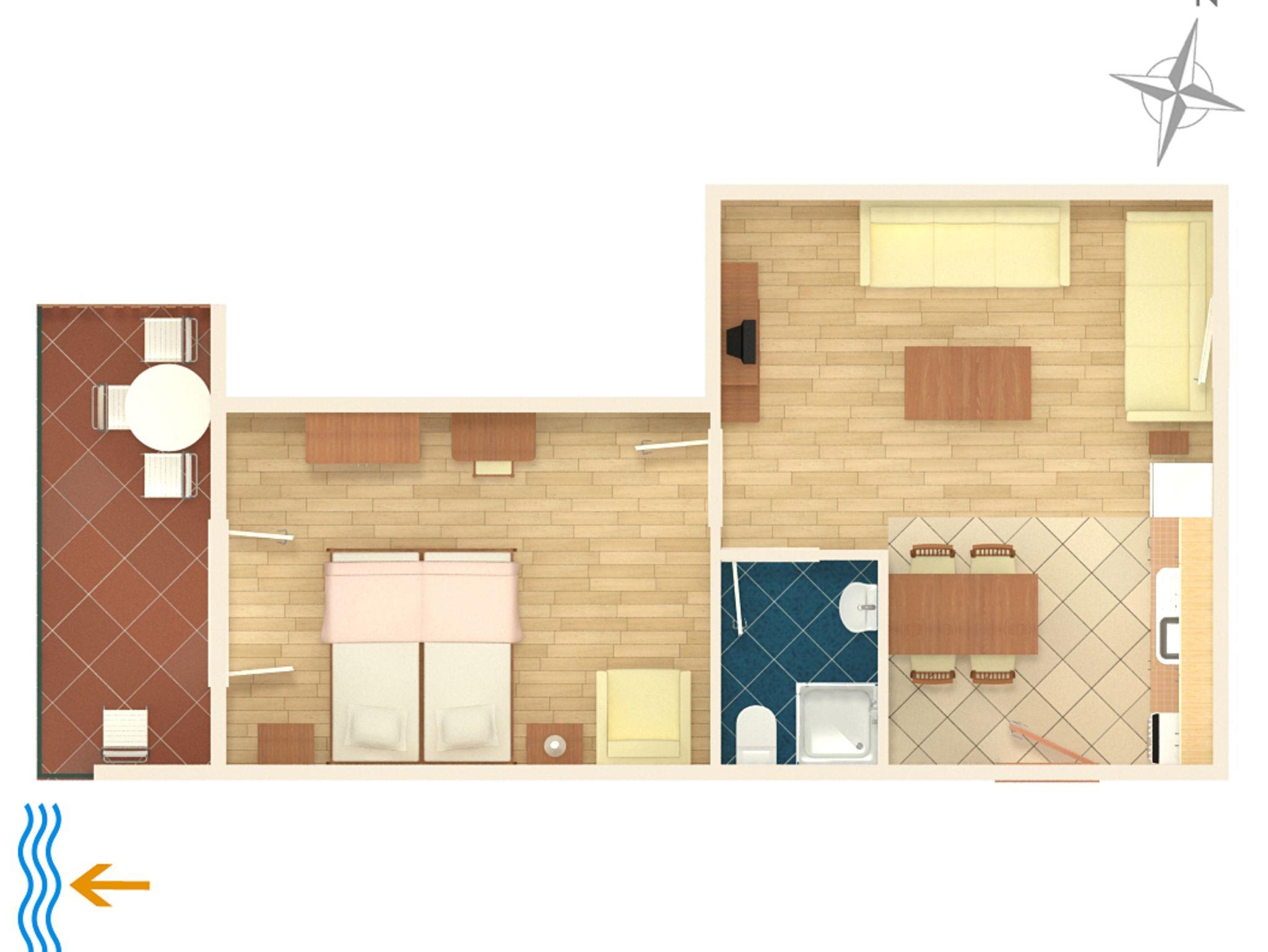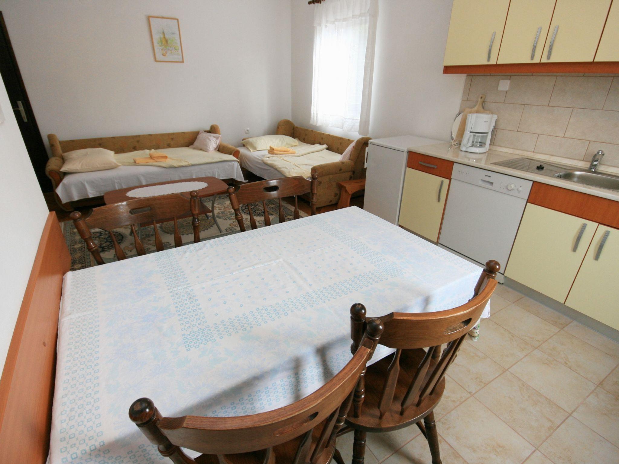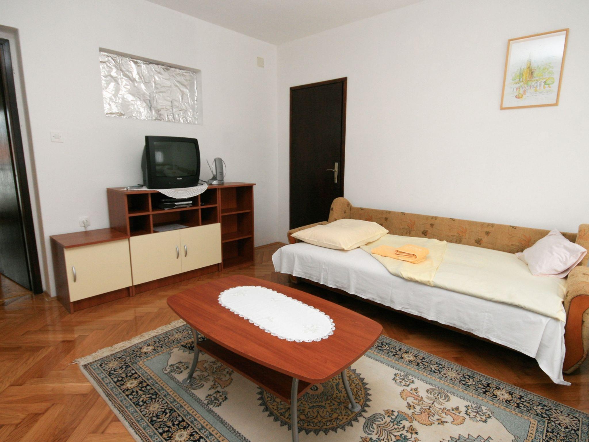 Ferienwohnung bietet Platz für 4 Gäste. Die Betten sind in Schlafzimmern, die es 1 gibt, und in Wohnzimmer, innerhalb einer Gesamtfläche von 40m2, angeordnet. Die Gäste haben einen eigenen Balkon zur Verfügung, auf der sie in warmen Sommernächten genießen können. Das Apartment bietet Meerblick. Es ist erlaubt, Speisen auf dem Gemeinschafts-Grill vorzubereiten. IM PREIS INBEGRIFFEN: Kurtaxe, Endreinigung, Klimatisierung, Parkplatz, Internet, Kinderbett, Bügeleisen, Föhn, tragbarer Grill. VERBINDLICHE ZUSÄTZLICHE KOSTEN: Aufzahlung für Kurzaufenthalte (prozentualer Zuschlag pro Nächtigungsanzahl: 30% - 1, 20% - 2, 10% - 3). Die Verfügbarkeit zusätzlicher Dienstleistungen in Ihrem reservierten Termin und die Preise derselben (falls nicht aufgeführt) müssen im Voraus überprüft werden. Zusätzliche Dienstleistungen die in der Zahlungsaufforderung nicht aufgeführt sind werden direkt beim Vermieter bezahlt, angenommen der Gast nutzt auch diese. Ermäßigung auf den Grundpreis: Gratistag 14=13 (bei einem Aufenthalt von 14 Tagen oder mehr erhalten Sie einen Gratistag für den Aufenthalt bis 31.12.26).