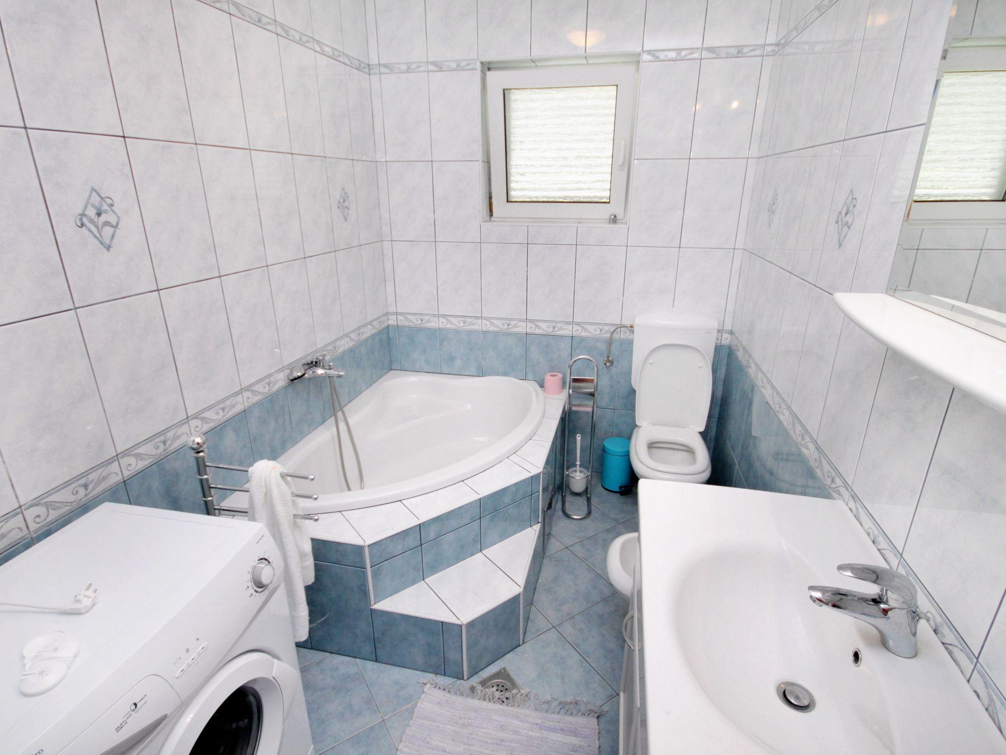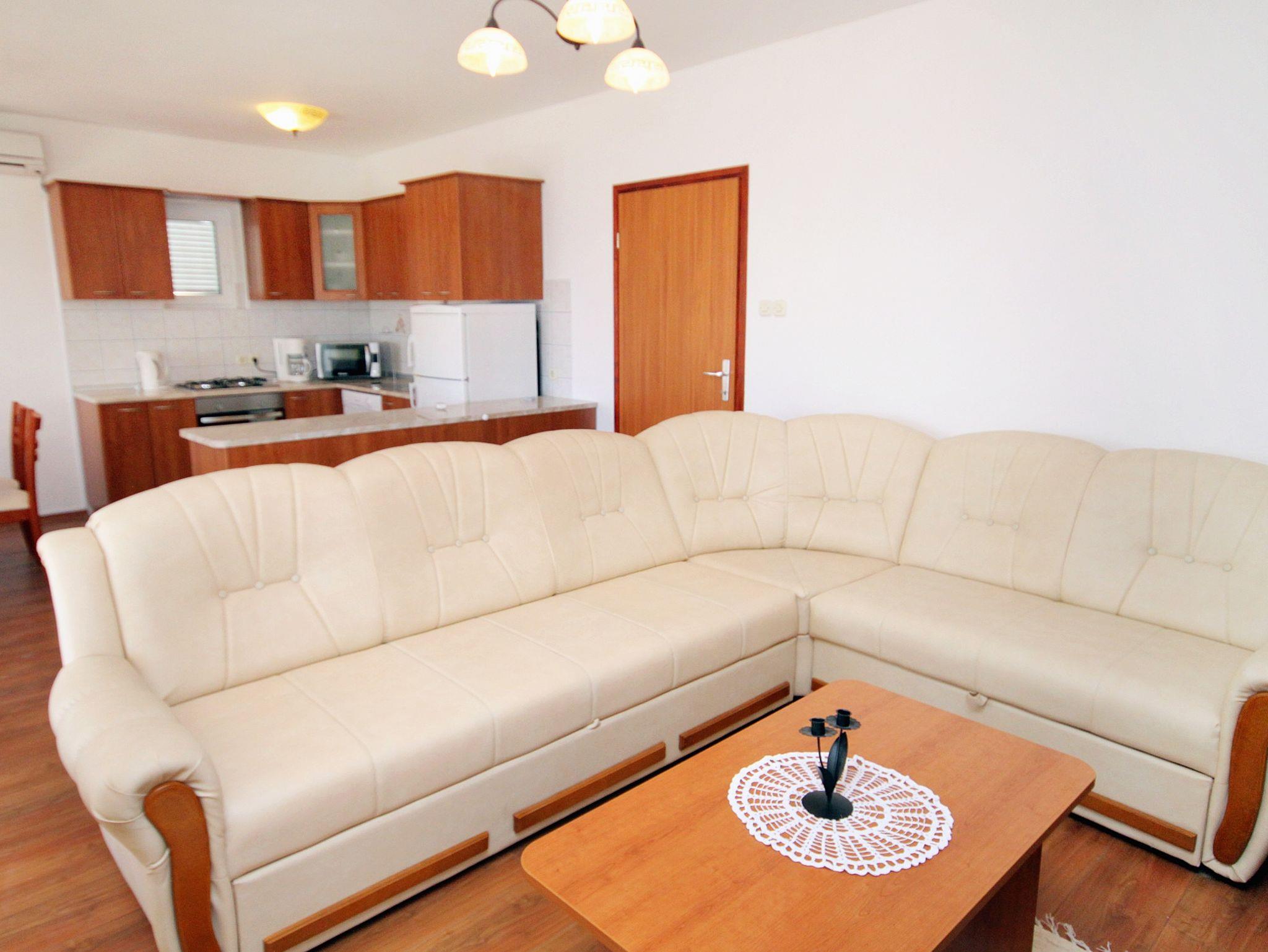 Ferienwohnung bietet Platz für 6 Gäste. Die Betten sind in Schlafzimmern, die es 2 gibt, und in Wohnzimmer, innerhalb einer Gesamtfläche von 69m2, angeordnet. Die Gäste haben eine eigene Terrasse zur Verfügung, auf der sie in warmen Sommernächten genießen können. Das Apartment bietet Meerblick. Es ist erlaubt, Speisen auf dem Gemeinschafts-Grill vorzubereiten. Während ihres Aufenthalts können Gäste das gemeinsam zur Nutzung stehende Schwimmbad benutzen. In der Unterkunftseinheit besteht die Möglichkeit des Mitbringens von Haustieren gegen Aufpreis. IM PREIS INBEGRIFFEN: Kurtaxe, Endreinigung, Klimatisierung, Pool, Parkplatz, Internet, Kinderbett, Bügeleisen, Bügelbrett, Föhn. VERBINDLICHE ZUSÄTZLICHE KOSTEN: Aufzahlung für Kurzaufenthalte (prozentualer Zuschlag pro Nächtigungsanzahl: 30% - 1, 20% - 2, 10% - 3). UNVERBINDLICHE ZUSÄTZLICHE KOSTEN: Haustiere (10,00 € pro Nacht). Die Verfügbarkeit zusätzlicher Dienstleistungen in Ihrem reservierten Termin und die Preise derselben (falls nicht aufgeführt) müssen im Voraus überprüft werden. Zusätzliche Dienstleistungen die in der Zahlungsaufforderung nicht aufgeführt sind werden direkt beim Vermieter bezahlt, angenommen der Gast nutzt auch diese.