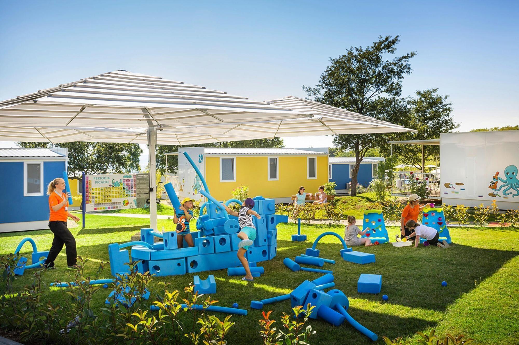 Car-free caravan park right by the sea and in the middle of an oak forest, surrounded by a few hectares of vineyards. A special feature of the site is an outdoor pool filled with seawater and an olive garden with 170 trees. Some of the mobile homes are located in the hilly part of the caravan park and are grouped around a barbecue area and a children's area in the style of former villages. Others form another, so-called Istrian village, which functions independently from the rest of the park. The exterior of these mobile homes is reminiscent of typical Istrian stone houses. Here the private vegetable garden completes the return to nature. You can help yourself to the naturally grown vegetables free of charge. You can also find more mobile homes lying under shady trees, near two newly built pools. There is also a separate relaxation zone with hanging loungers, a canopy and swings. The partly rocky, partly pebbly beach, with a wide range of water sports, stretches a few hundred meters along the caravan park. Highlights included: Usage-based energy costs, bed linen, towels, final cleaning, registration fee, WiFi. Activities nearby: Only 4 km away is the historic and Italian town of Novigrad. Also recommended is a trip to the Baredine Cave in Nova Vas and the nearby town of Porec. Aquapark Istralandia offers a lot of excitement for big and small visitors. The more than 80,000 square meter water world is located between Novigrad and Brtonigla, only about 9 km from the coast. Mobility : Not suitable for people with reduced mobility.