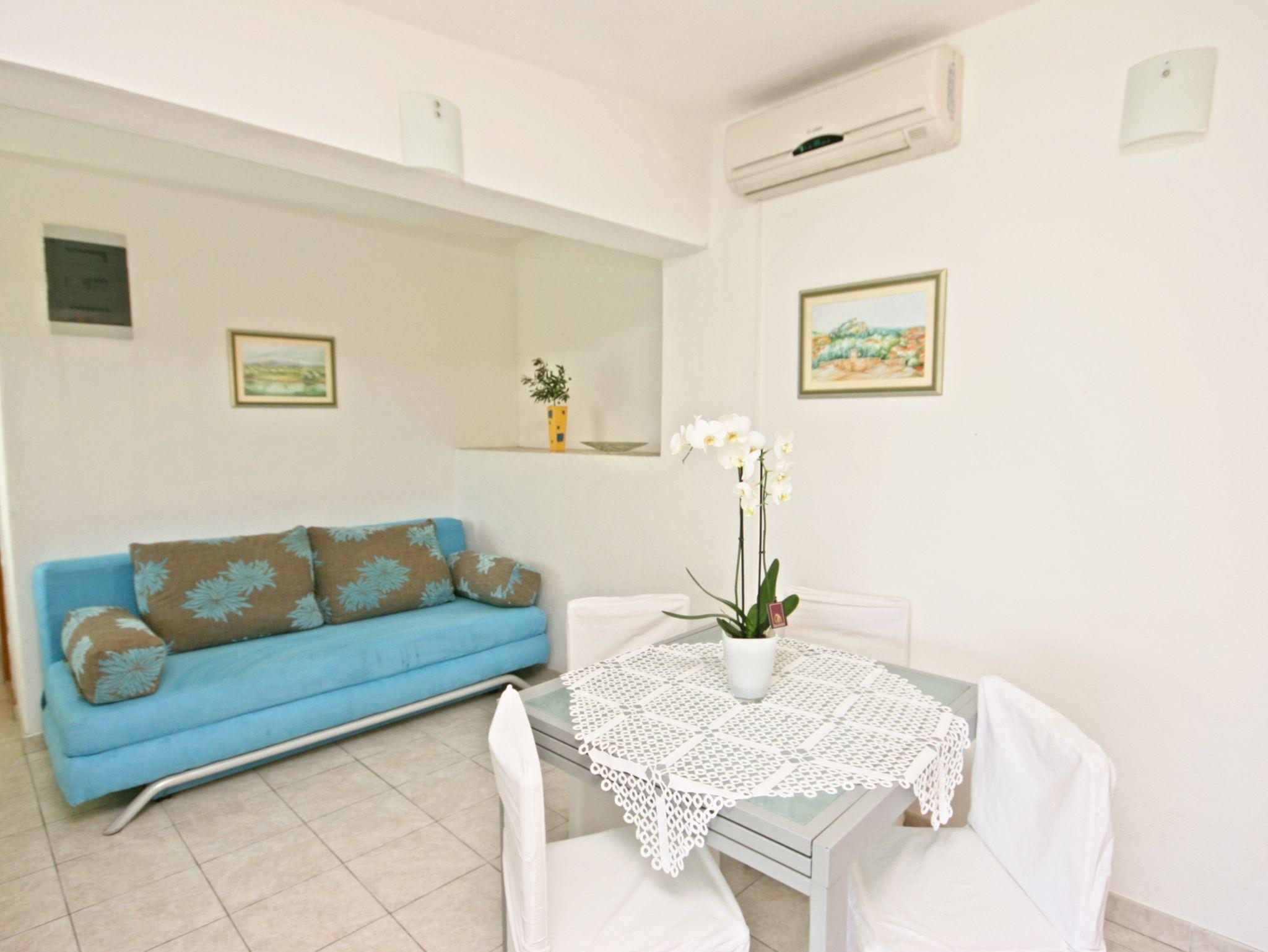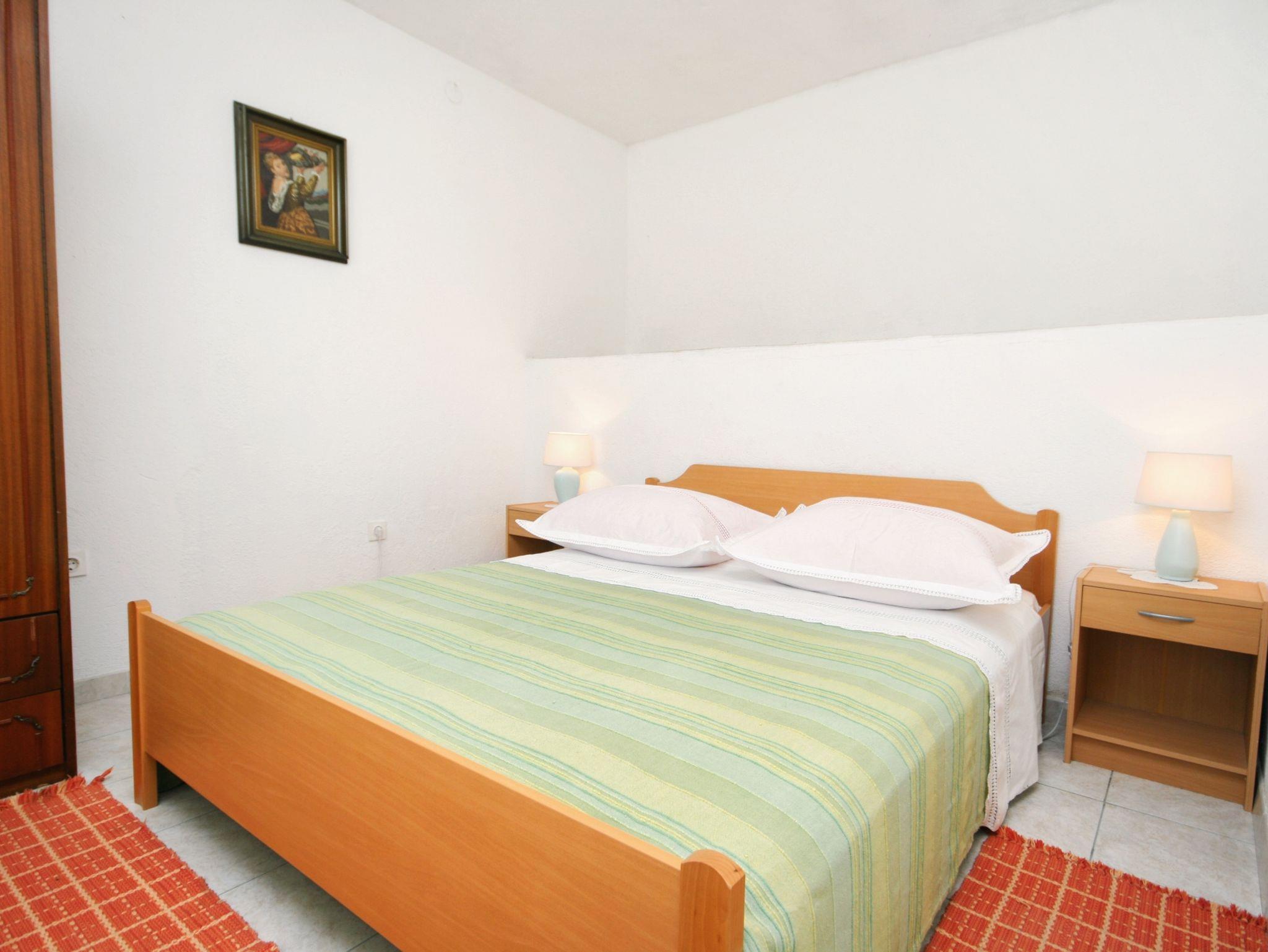 Ferienwohnung bietet Platz für 4 Gäste. Die Betten sind in Schlafzimmern, die es 1 gibt, und in Esszimmer, innerhalb einer Gesamtfläche von 35m2, angeordnet. Die Gäste haben eine eigene Terrasse zur Verfügung, auf der sie in warmen Sommernächten genießen können. Das Apartment bietet Meerblick. Für vollen Genuss und Entspannung gibt es einen privaten Grill für Gäste dieser Unterkunft. In der Unterkunftseinheit besteht die Möglichkeit des Mitbringens von Haustieren gegen Aufpreis. IM PREIS INBEGRIFFEN: Kurtaxe, Endreinigung, Parkplatz, Internet, Kinderbett, Föhn, tragbarer Grill. VERBINDLICHE ZUSÄTZLICHE KOSTEN: Aufzahlung für Kurzaufenthalte (prozentualer Zuschlag pro Nächtigungsanzahl: 30% - 1, 20% - 2, 10% - 3). UNVERBINDLICHE ZUSÄTZLICHE KOSTEN: Klimatisierung (5,00 € pro Nacht), Wäschewaschen (3,00 € Waschen), Bootsanlegeplatz (4,00 € pro Nacht), Haustiere (5,00 € pro Nacht). Die Verfügbarkeit zusätzlicher Dienstleistungen in Ihrem reservierten Termin und die Preise derselben (falls nicht aufgeführt) müssen im Voraus überprüft werden. Zusätzliche Dienstleistungen die in der Zahlungsaufforderung nicht aufgeführt sind werden direkt beim Vermieter bezahlt, angenommen der Gast nutzt auch diese. Ermäßigung auf den Grundpreis: Gratistag 14=13 (bei einem Aufenthalt von 14 Tagen oder mehr erhalten Sie einen Gratistag für den Aufenthalt bis 31.12.26).