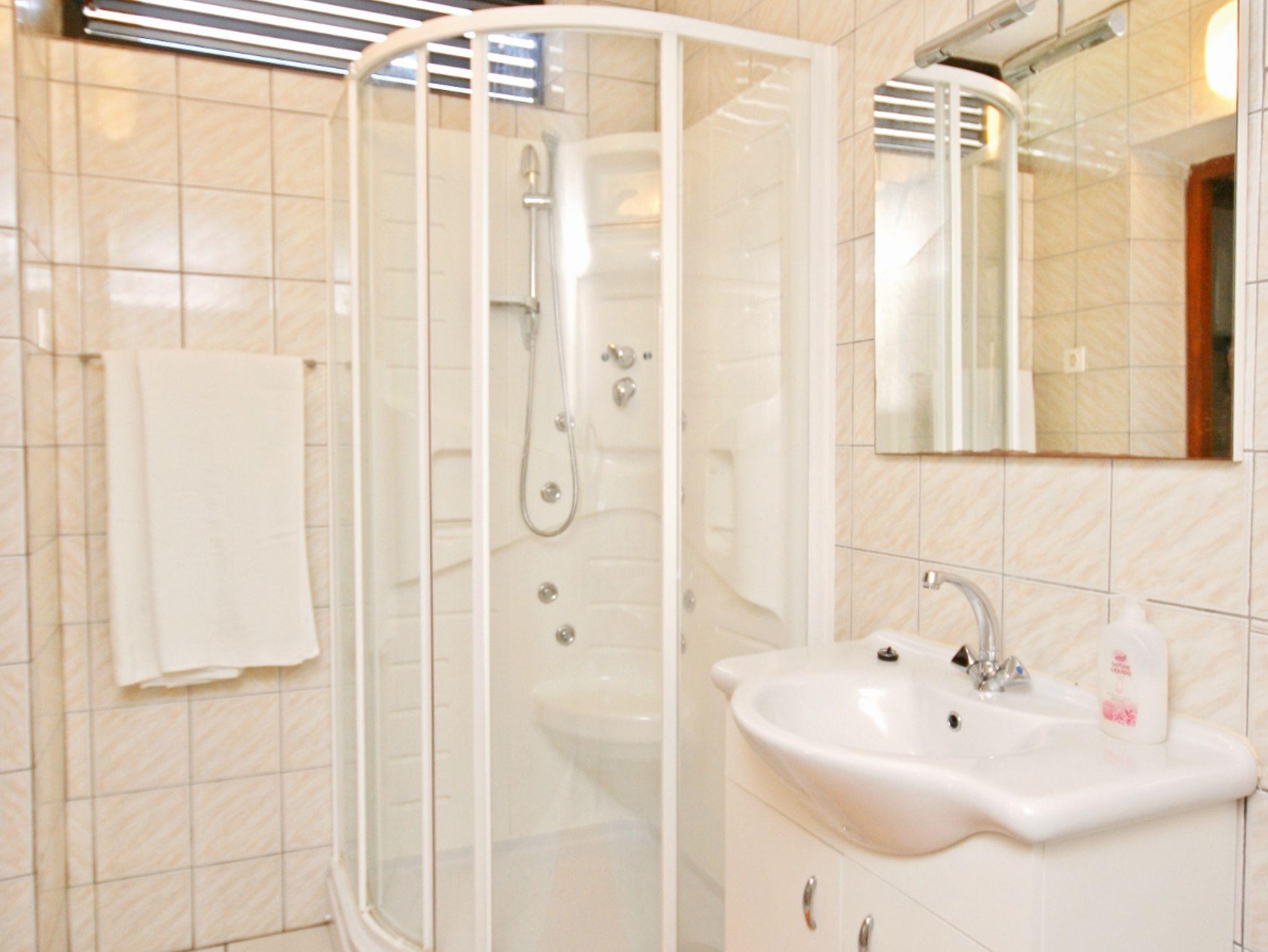 Ferienwohnung bietet Platz für 6 Gäste. Die Betten sind in Schlafzimmern, die es 3 gibt, innerhalb einer Gesamtfläche von 48m2, angeordnet. Die Gäste haben eine eigene Terrasse zur Verfügung, auf der sie in warmen Sommernächten genießen können. Das Apartment bietet Meerblick. Für vollen Genuss und Entspannung gibt es einen privaten Grill für Gäste dieser Unterkunft. In der Unterkunftseinheit besteht die Möglichkeit des Mitbringens von Haustieren gegen Aufpreis. IM PREIS INBEGRIFFEN: Kurtaxe, Endreinigung, Parkplatz, Internet, Kinderbett, Föhn, tragbarer Grill. VERBINDLICHE ZUSÄTZLICHE KOSTEN: Aufzahlung für Kurzaufenthalte (prozentualer Zuschlag pro Nächtigungsanzahl: 30% - 1, 20% - 2, 10% - 3). UNVERBINDLICHE ZUSÄTZLICHE KOSTEN: Klimatisierung (5,00 € pro Nacht), Wäschewaschen (3,00 € Waschen), Bootsanlegeplatz (4,00 € pro Nacht), Haustiere (5,00 € pro Nacht). Die Verfügbarkeit zusätzlicher Dienstleistungen in Ihrem reservierten Termin und die Preise derselben (falls nicht aufgeführt) müssen im Voraus überprüft werden. Zusätzliche Dienstleistungen die in der Zahlungsaufforderung nicht aufgeführt sind werden direkt beim Vermieter bezahlt, angenommen der Gast nutzt auch diese. Ermäßigung auf den Grundpreis: Gratistag 14=13 (bei einem Aufenthalt von 14 Tagen oder mehr erhalten Sie einen Gratistag für den Aufenthalt bis 31.12.26).