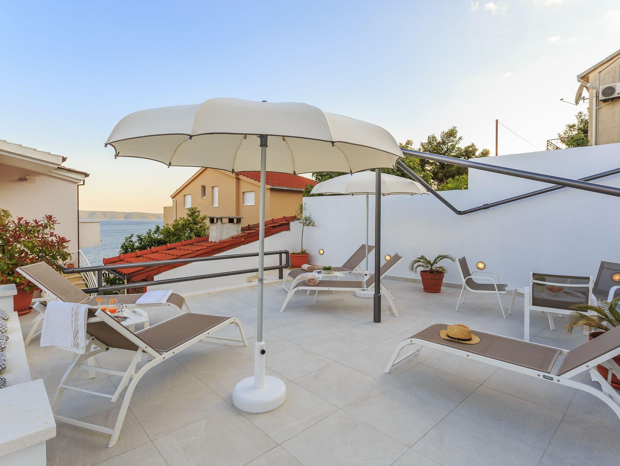 Ferienwohnungen am Meer mit Pool Rastici, Ciovo - 1084, 3-Zimmer-Ferienwohnung mit Terrasse und Meerblick Rastici, Ciovo A-1084-a