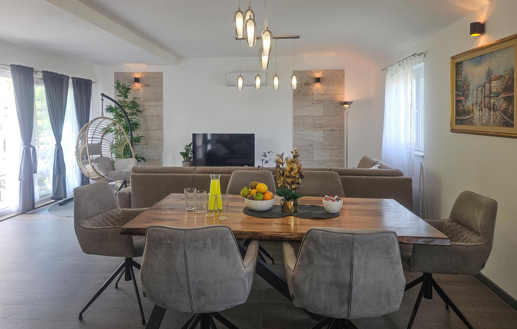 Etwas außerhalb der malerischen Kutlesa Bucht nahe Mimice gelegen, empfängt Sie Ihre Ferienwohnung in einer friedlichen und idyllischen Atmosphäre. Kommen Sie morgens in den gemütlichen Stühlen am Esstisch zum gemeinsamen Frühstück zusammen. Die Küche bietet Ihnen die Möglichkeit, auch später am Tag köstliche Mahlzeiten zuzubereiten. Verbringen Sie wertvolle Zeit mit Ihren Lieben auf dem gemütlichen Sofa im Wohnbereich. Und genießen Sie den atemberaubenden Blick auf die umliegende Landschaft auf der Terrasse mit den zahlreichen, bequemen Sitzgelegenheiten. Noch entspannter wird es im Whirlpool, ebenfalls mit einer sagenhaften Aussicht.