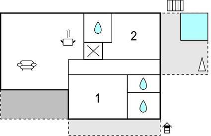 Badezimmer 5m2 (nr. 1) - WC. Warmes und kaltes Wasser. Dusche