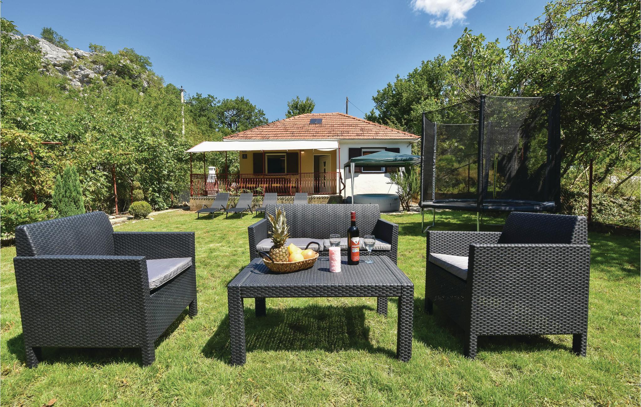 Dieses idyllische Ferienhaus befindet sich im Ort Blato na Cetini, nahe der Stadt Omiš. Genießen Sie das Zusammensein mit Ihren Liebsten im großen Garten mit Whirlpool und einem Trampolin für Kinder. Das schöne Haus ist von fast unberührter Natur umgeben und liegt nah am Fluss Cetina, in dem Sie schwimmen, Kajak fahren und raften können. Wenn Sie im Meer schwimmen möchten, erreichen Sie die Sandstrände von Omiš in ca. 15 km. Sportmöglichkeiten wie SUP, Surfen, Tauchen und Zipline-Fahren sind weitere Aktivitäten, die Sie in dieser Gegend ausprobieren können.