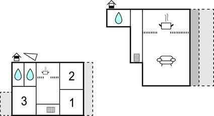 Badezimmer (nr. 2) - WC. Warmes und kaltes Wasser. Dusche