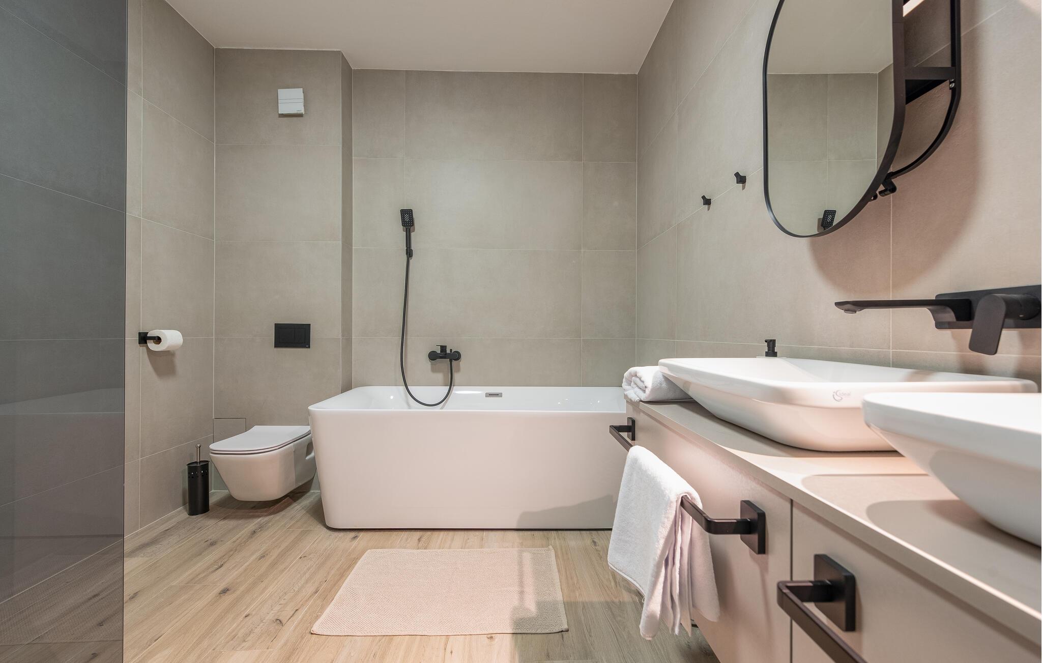 Badezimmer 9m2 (nr. 2) - WC. Warmes und kaltes Wasser. Handdusche und Badewanne